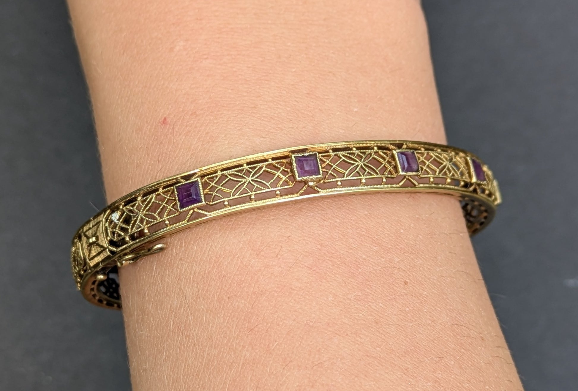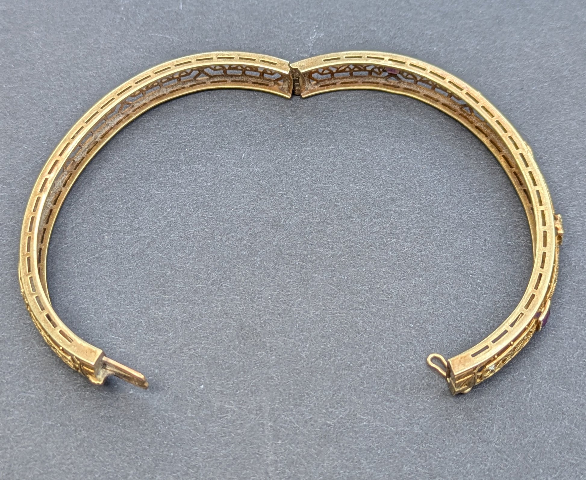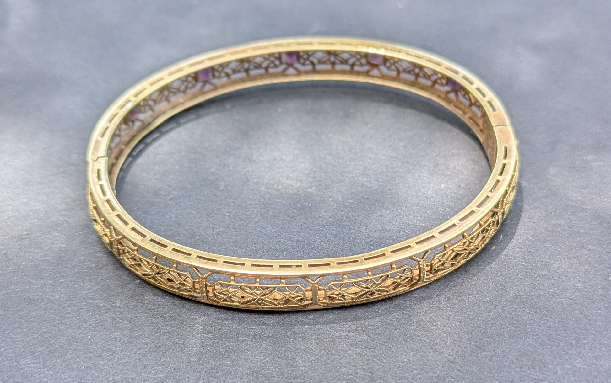 14k 1930's Filigree Bangle/ Bangle with Amethyst
