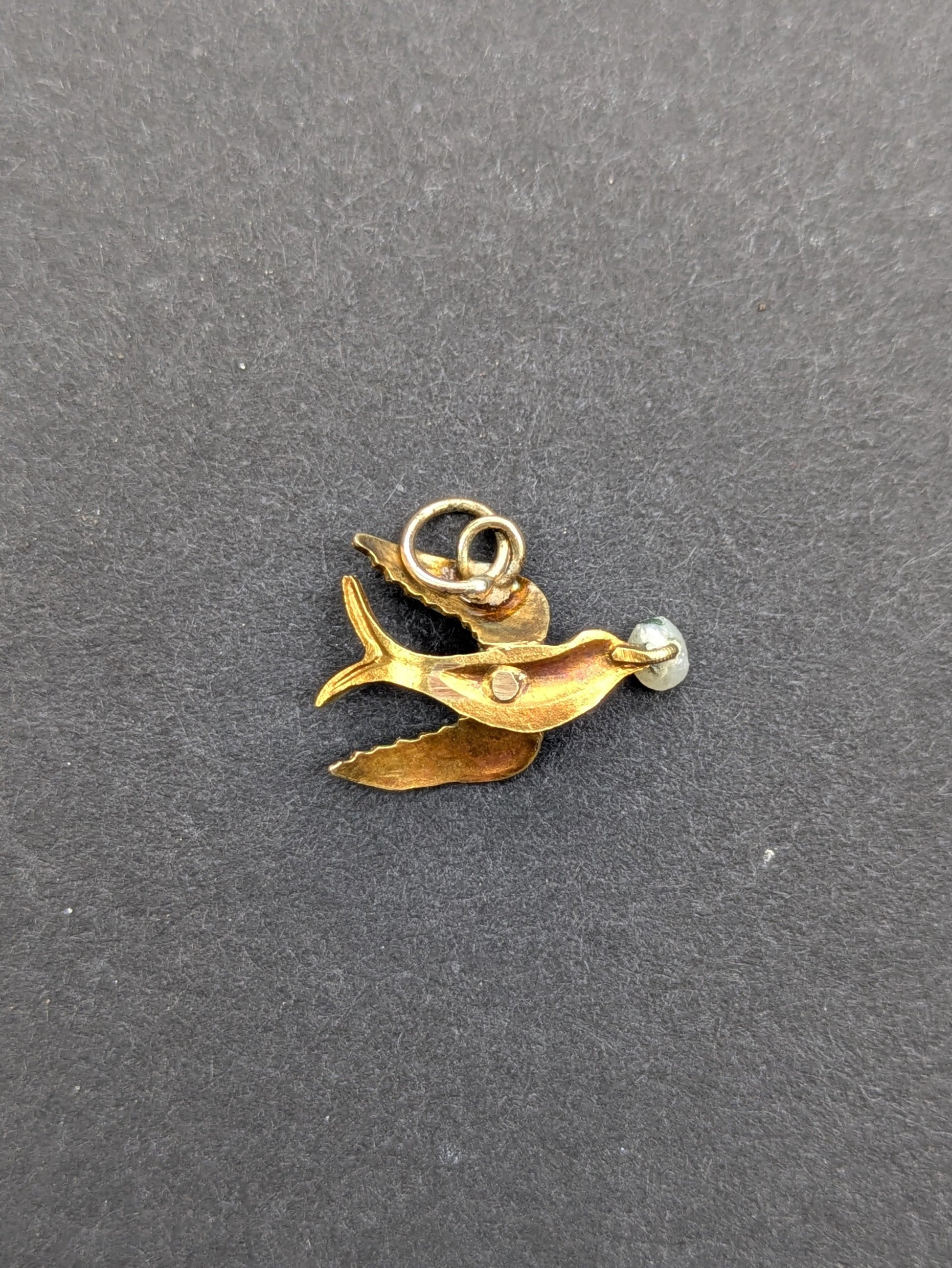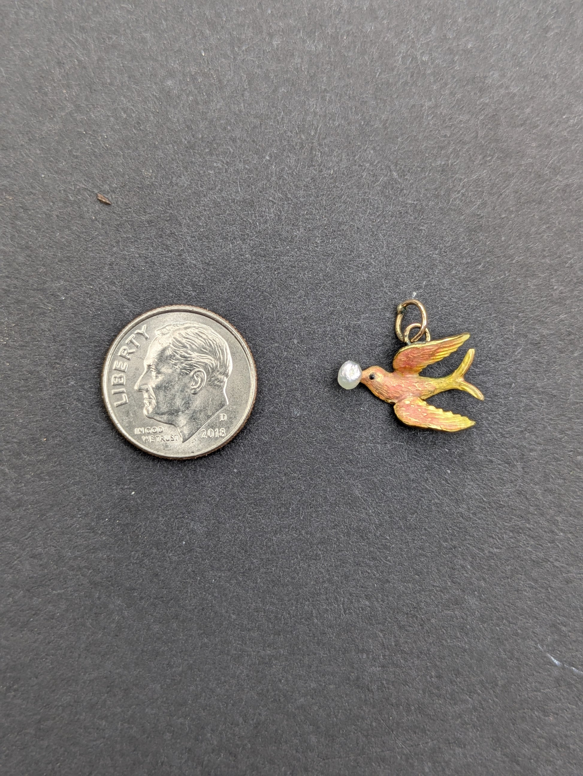 14k Art Nouveau Pink Enamel Swallow Charm with Pearl