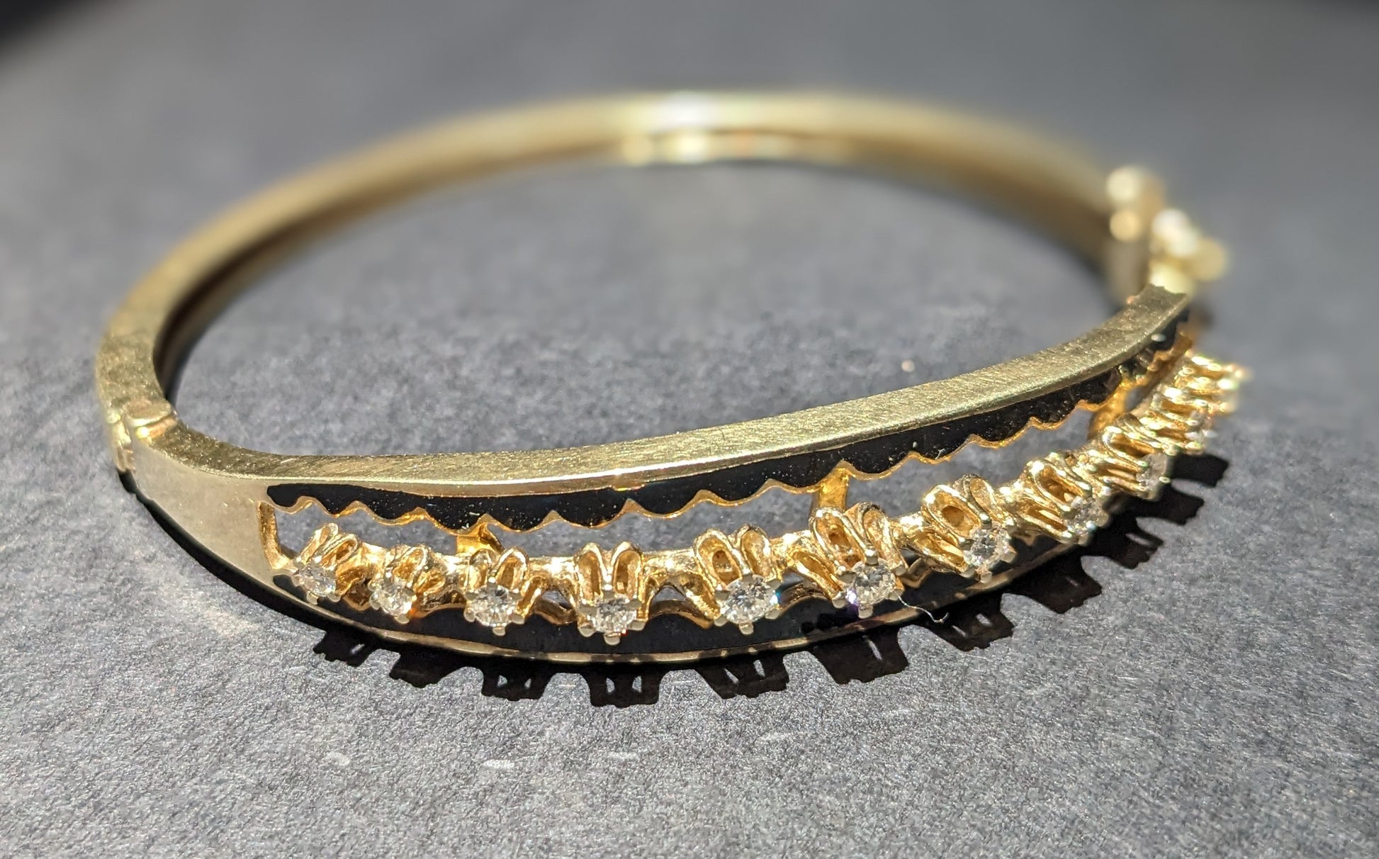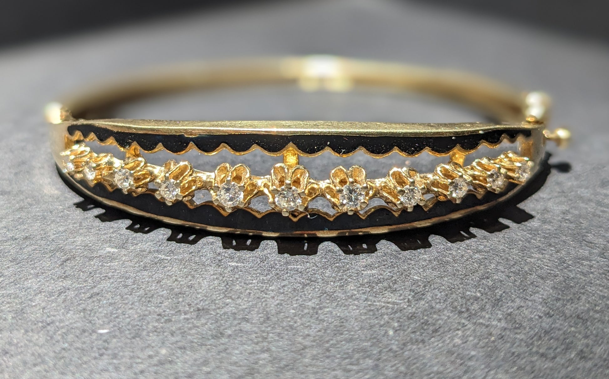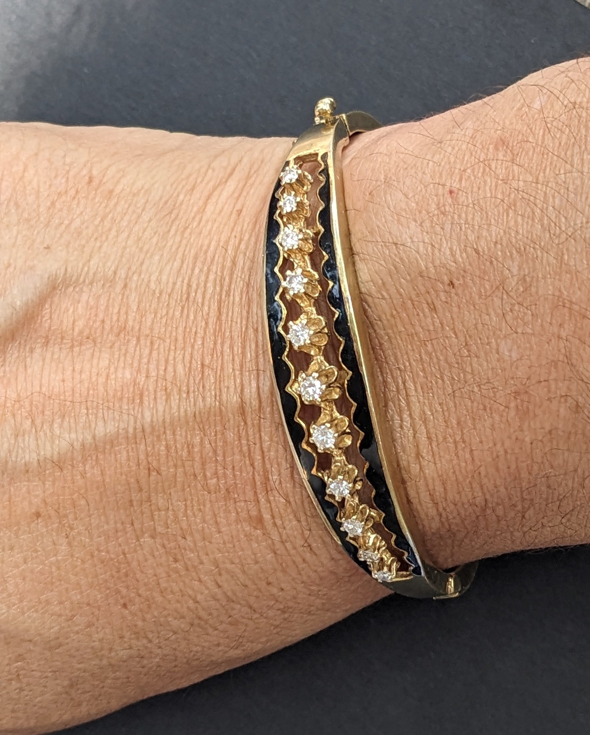 14k Gold Diamond and Black Enamel Bracelet