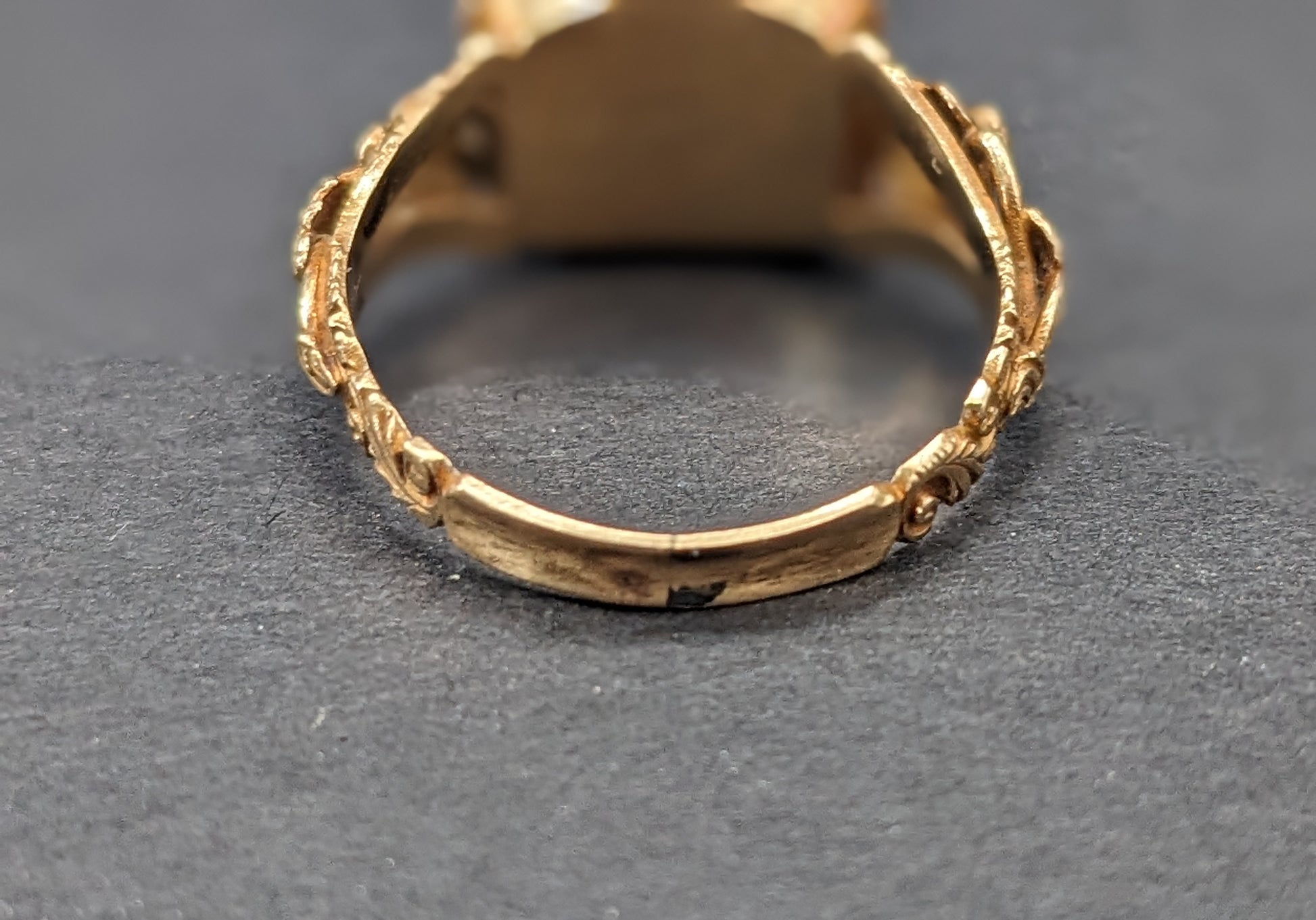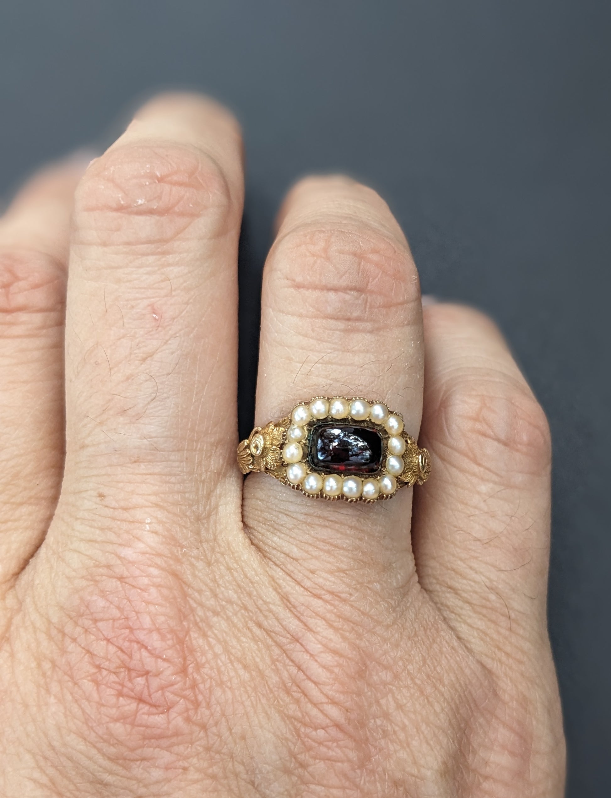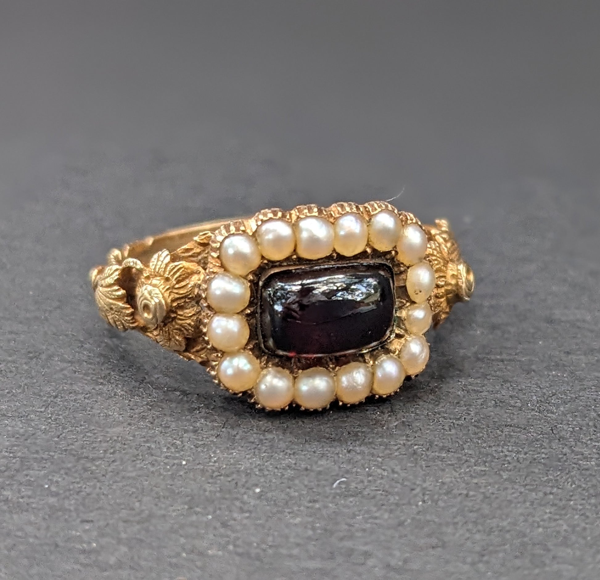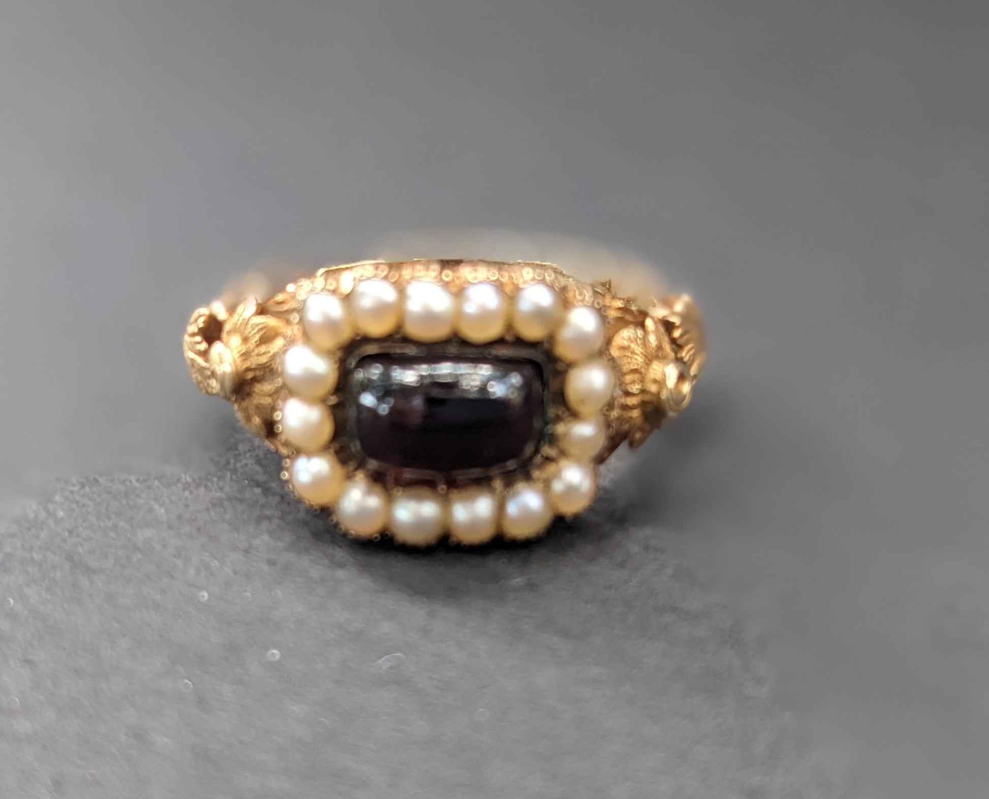 14k Gold, Garnet and Seed Mourning Ring