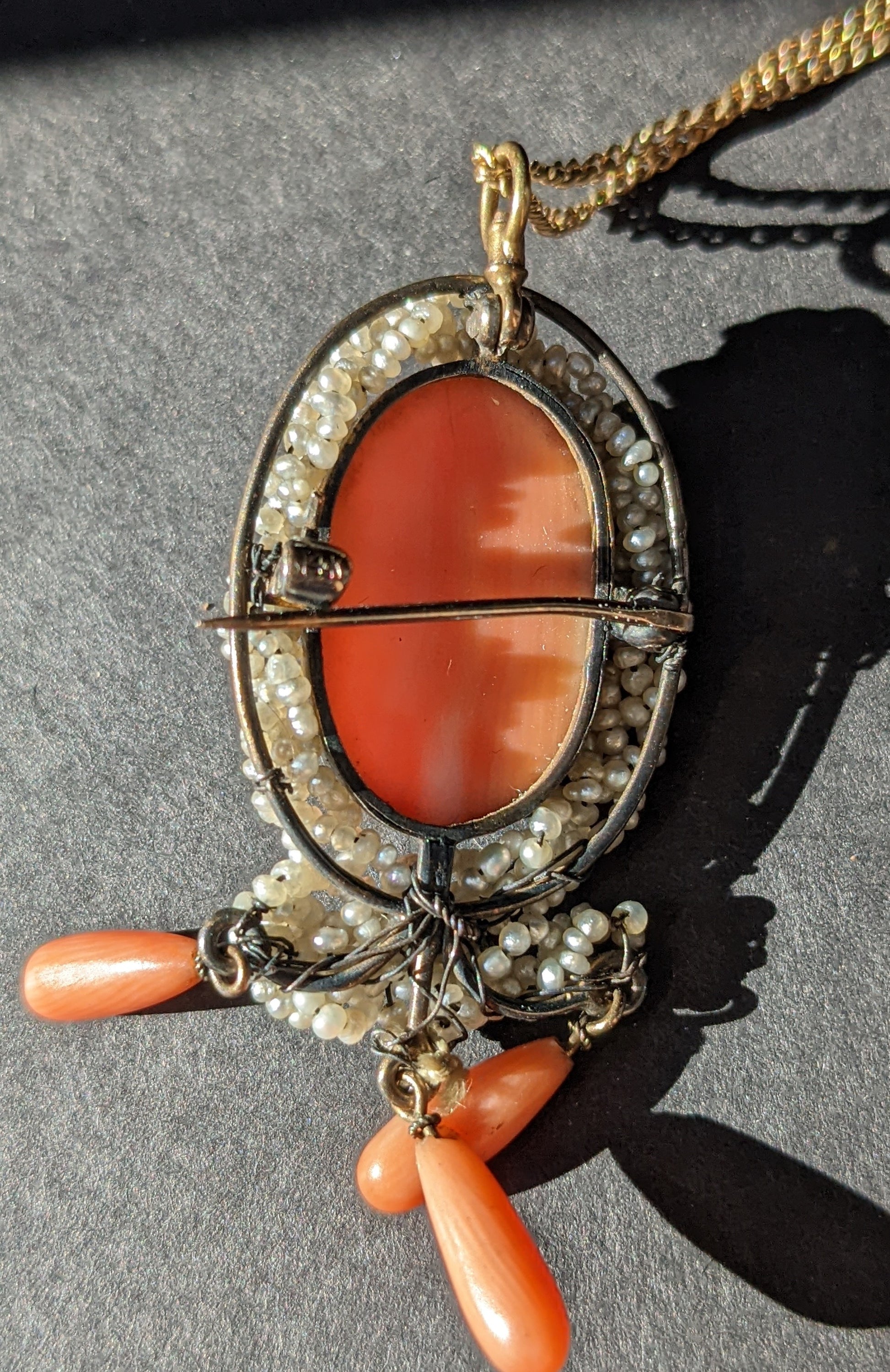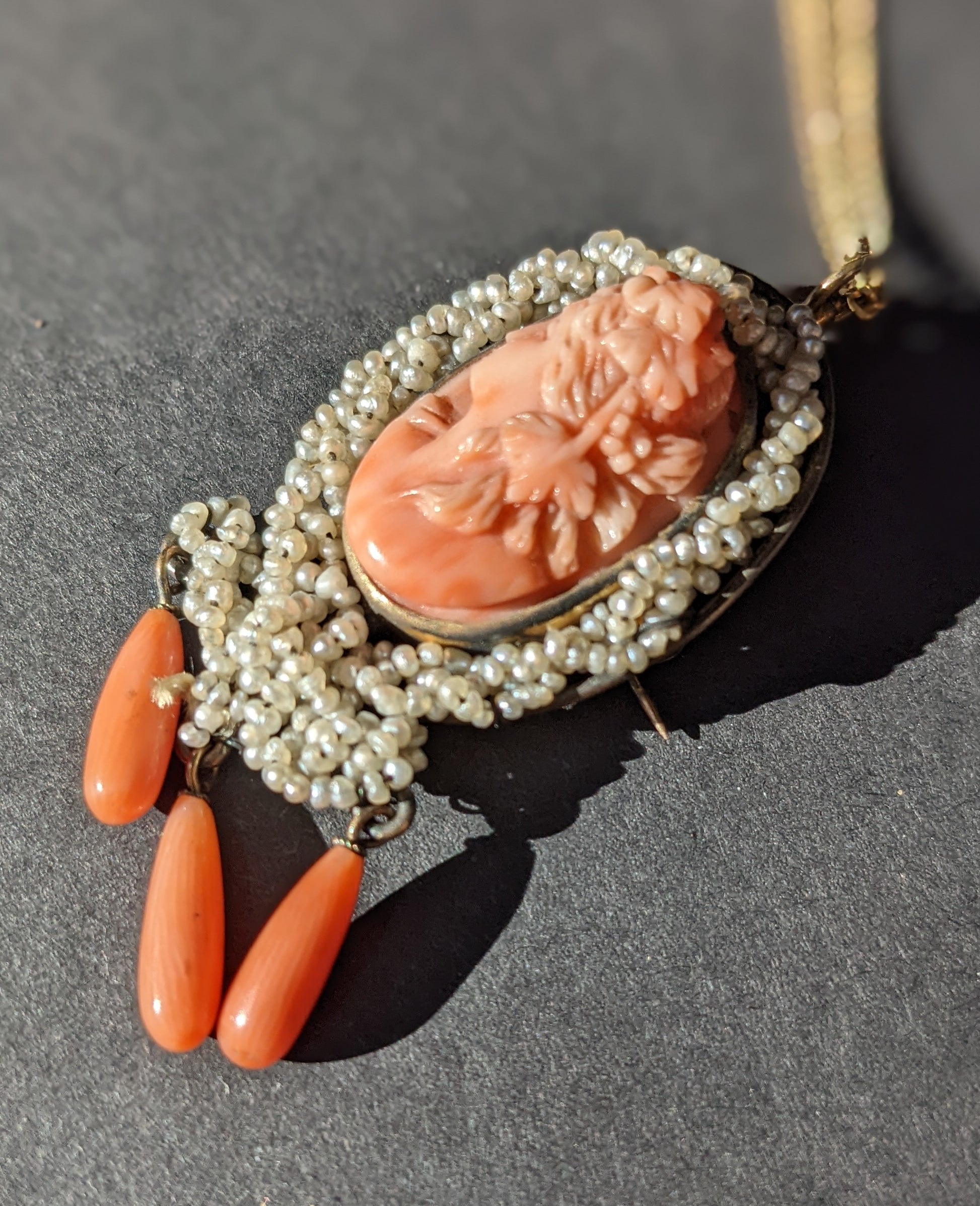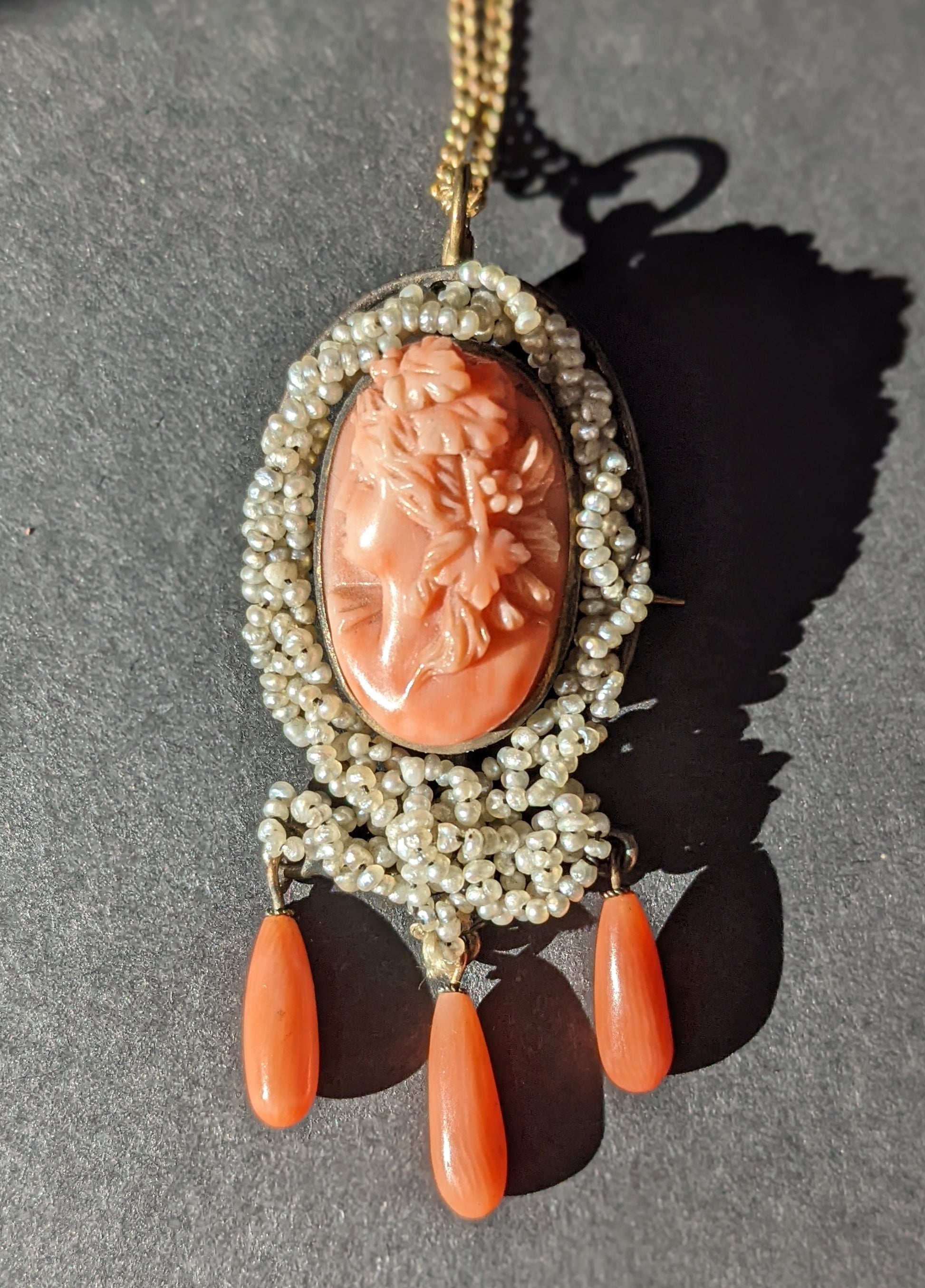 14k high relief coral cameo necklace