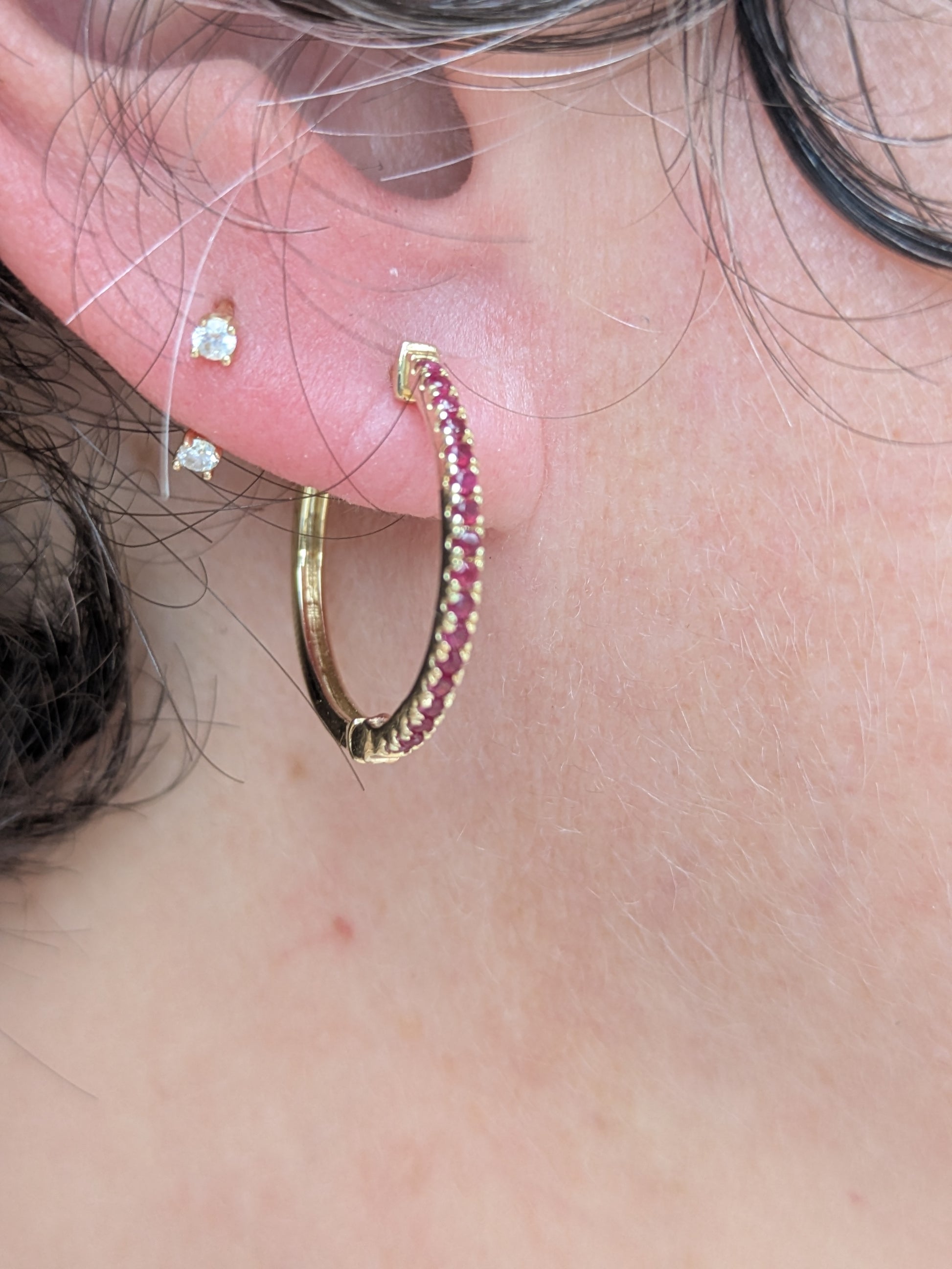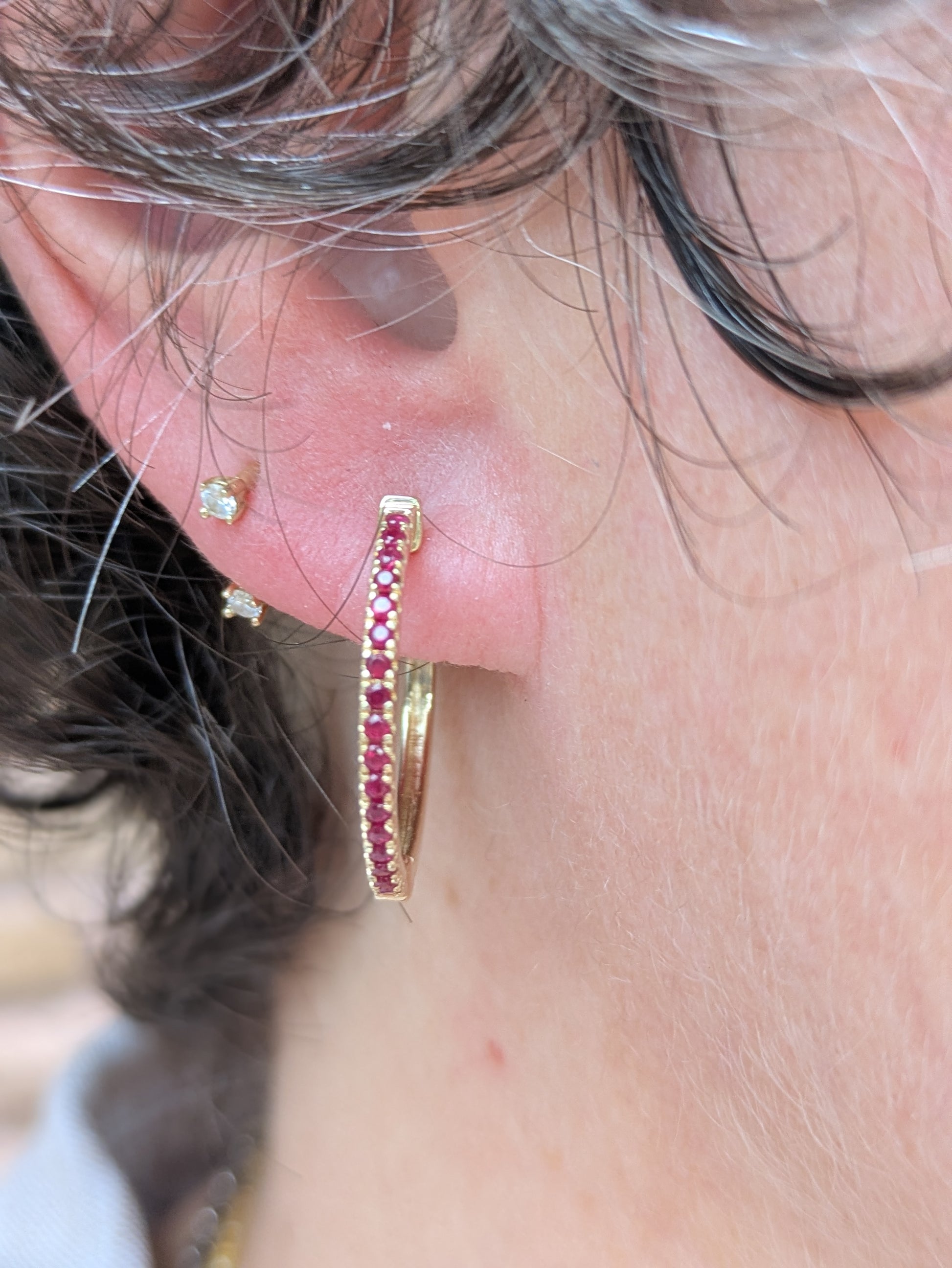 14k Ruby Hoop Earrings