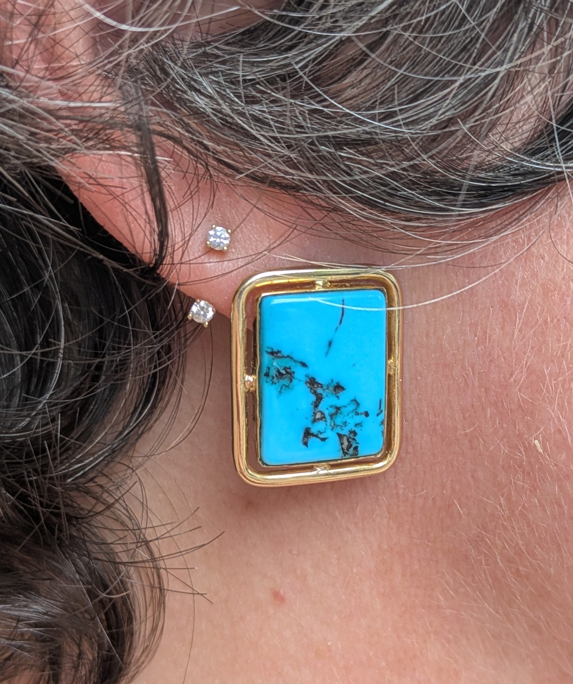 14k Turquoise Stud Earrings- Conversion from Cufflinks