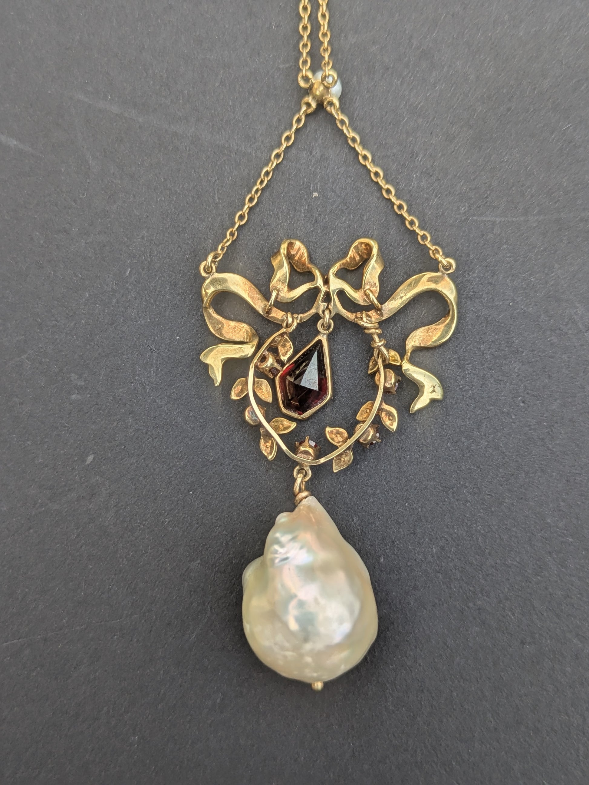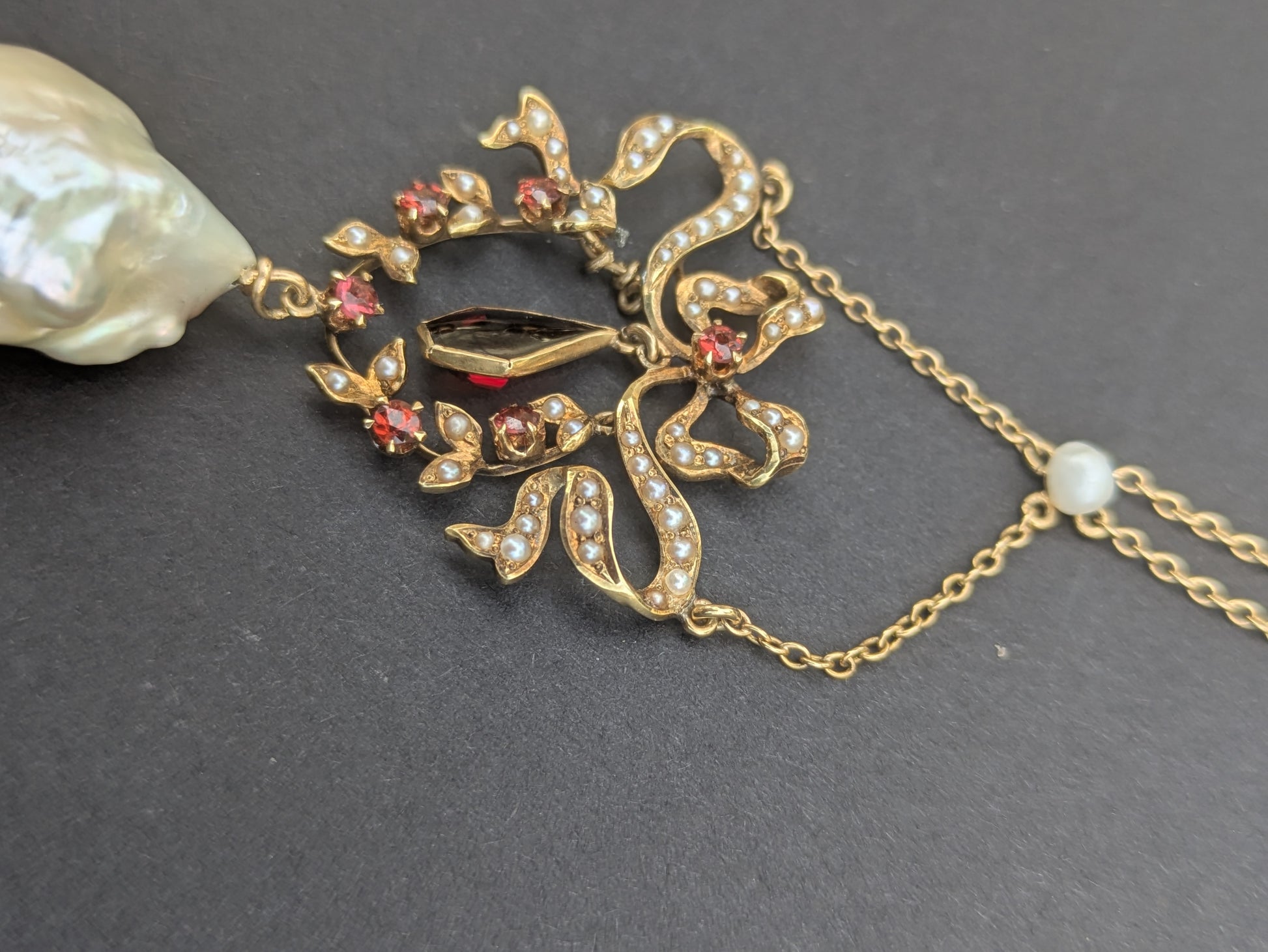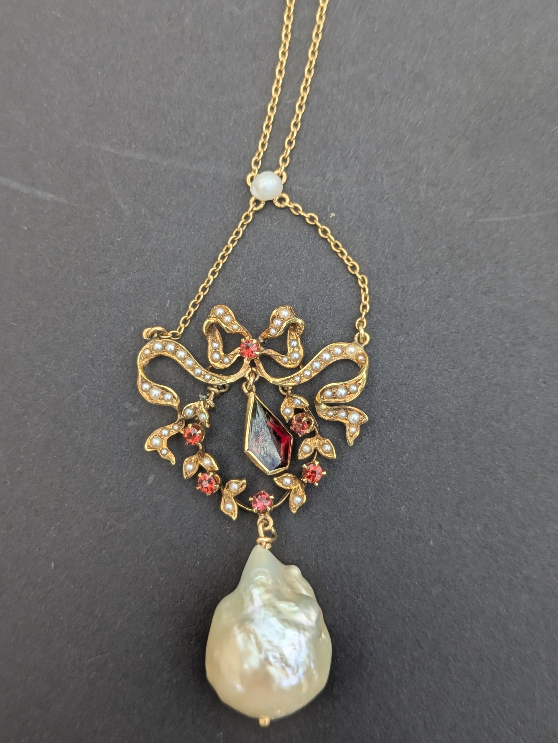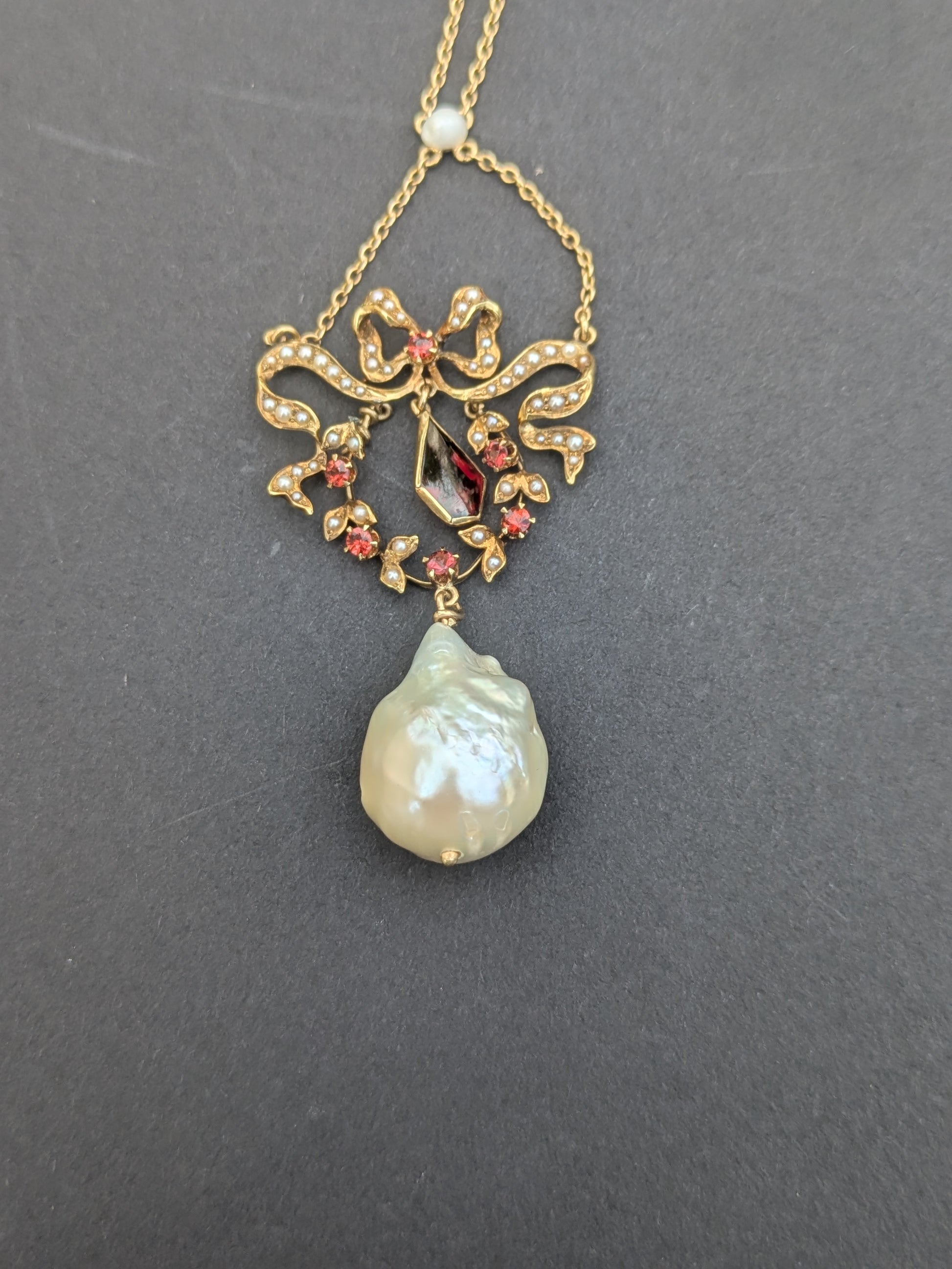 14k Victorian Pearl and Garnet Drop Necklace