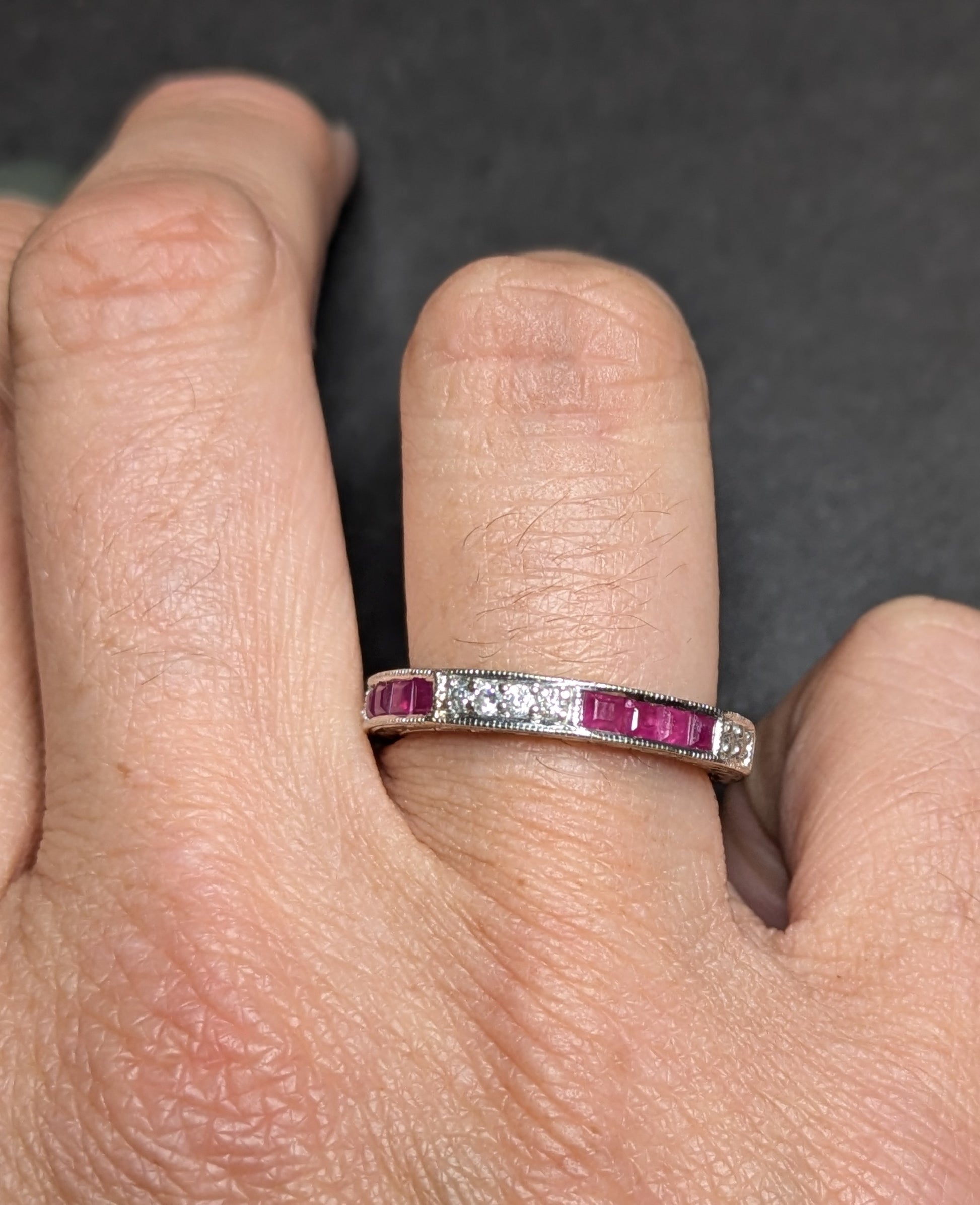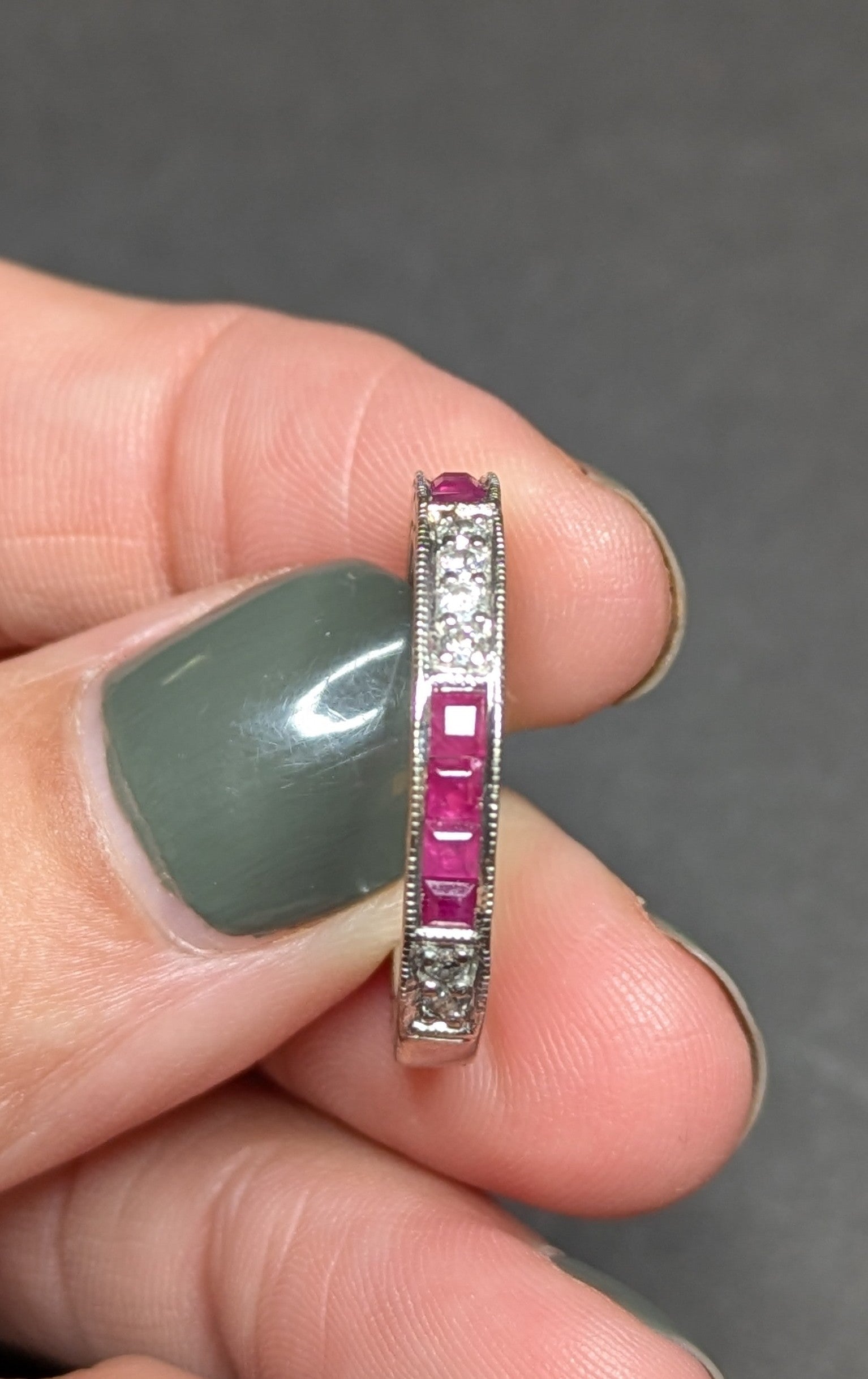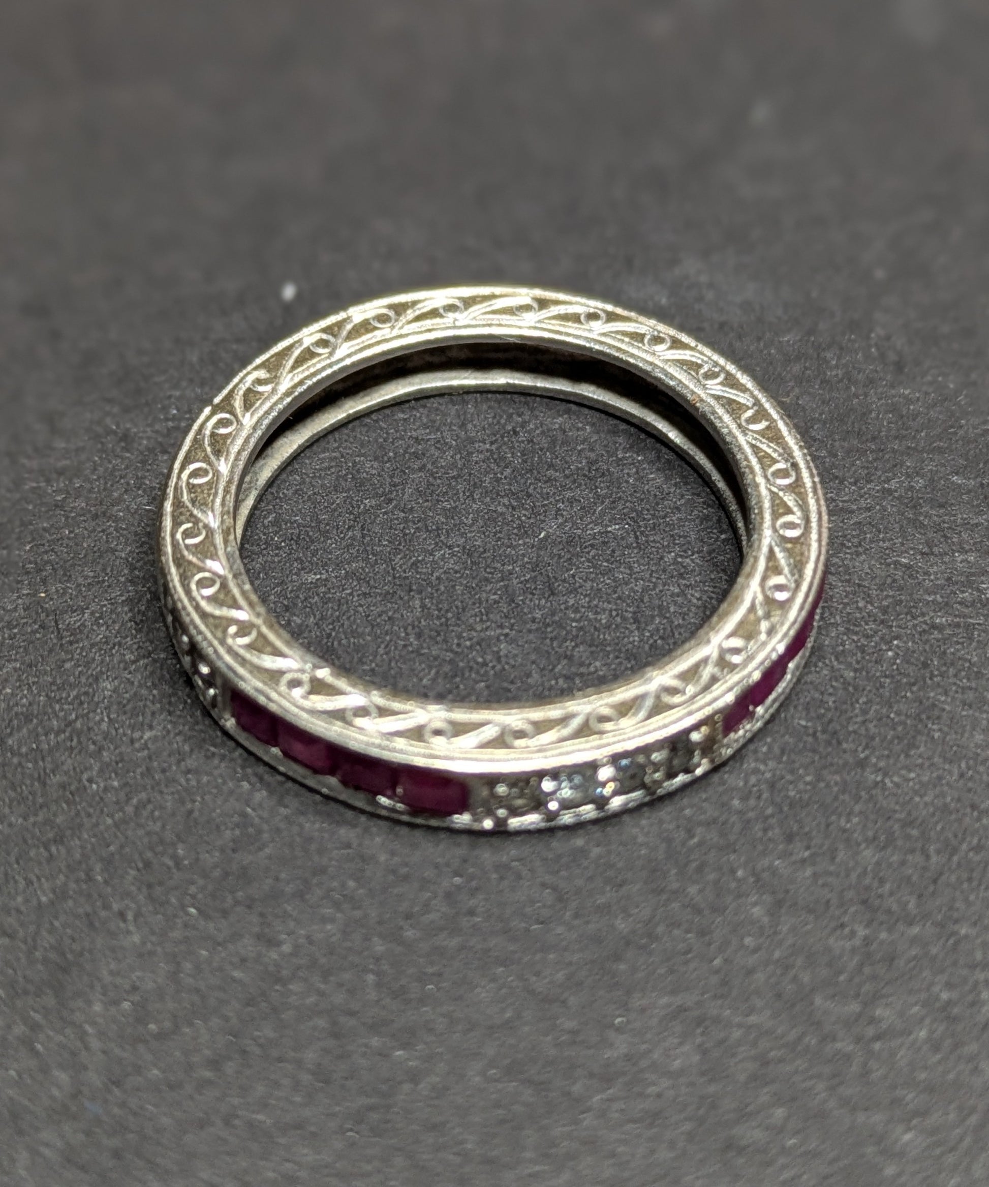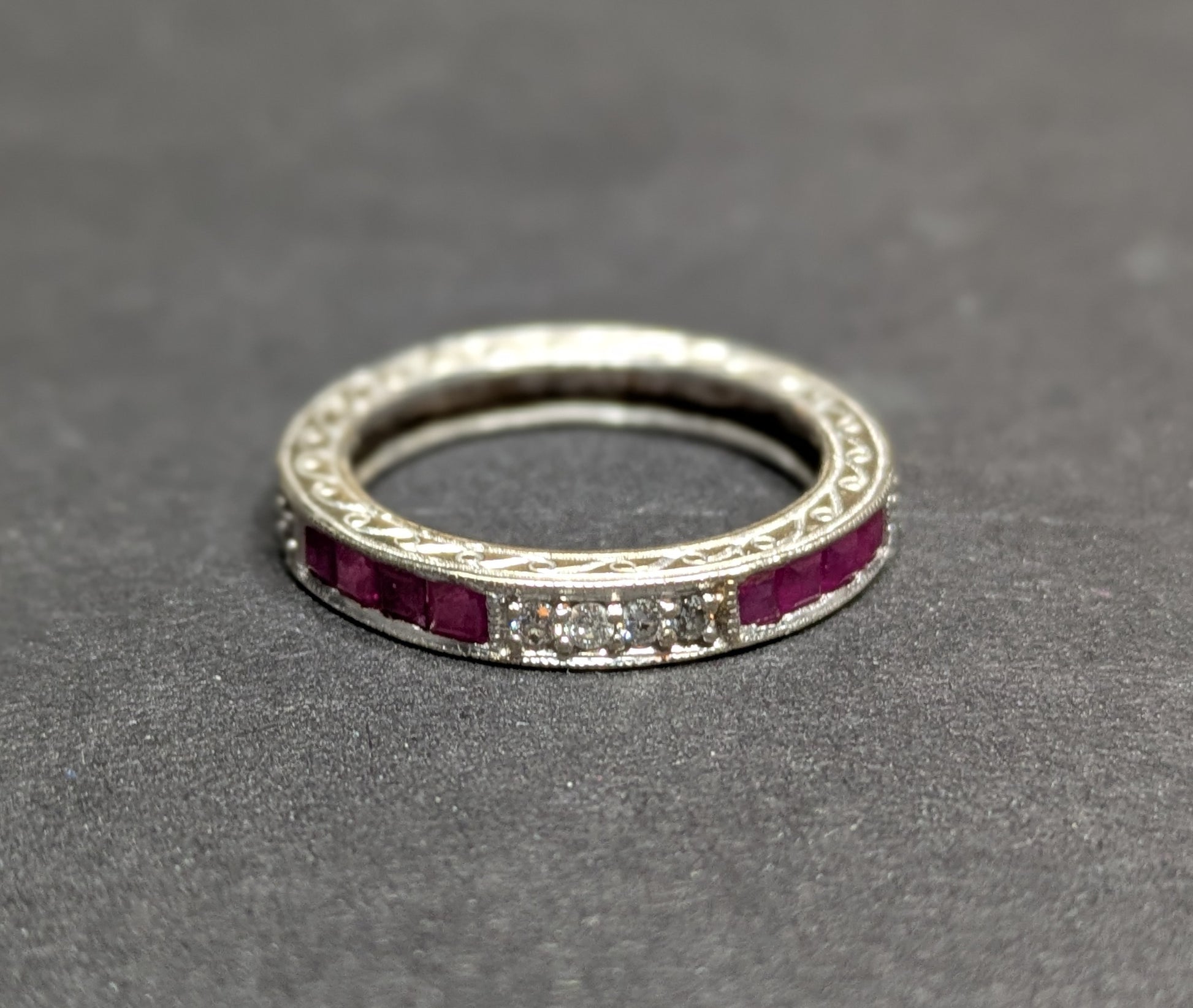 14k White Gold Diamond and French Cut Ruby Anniversary Band