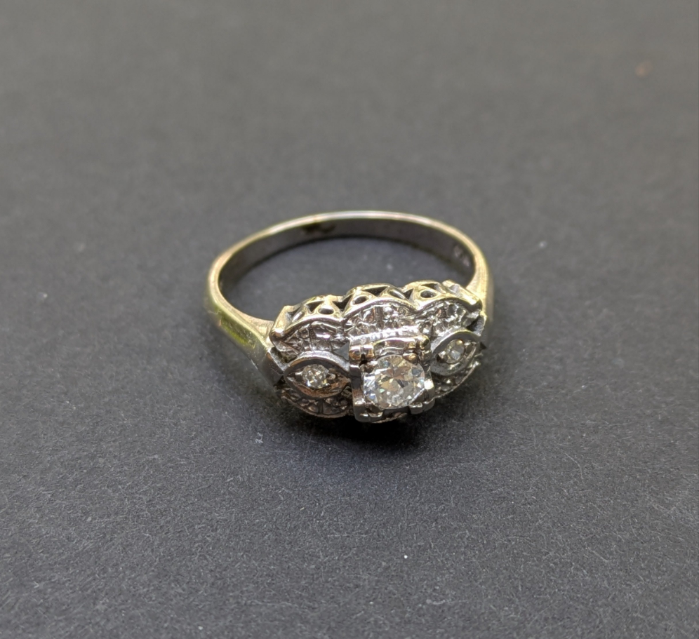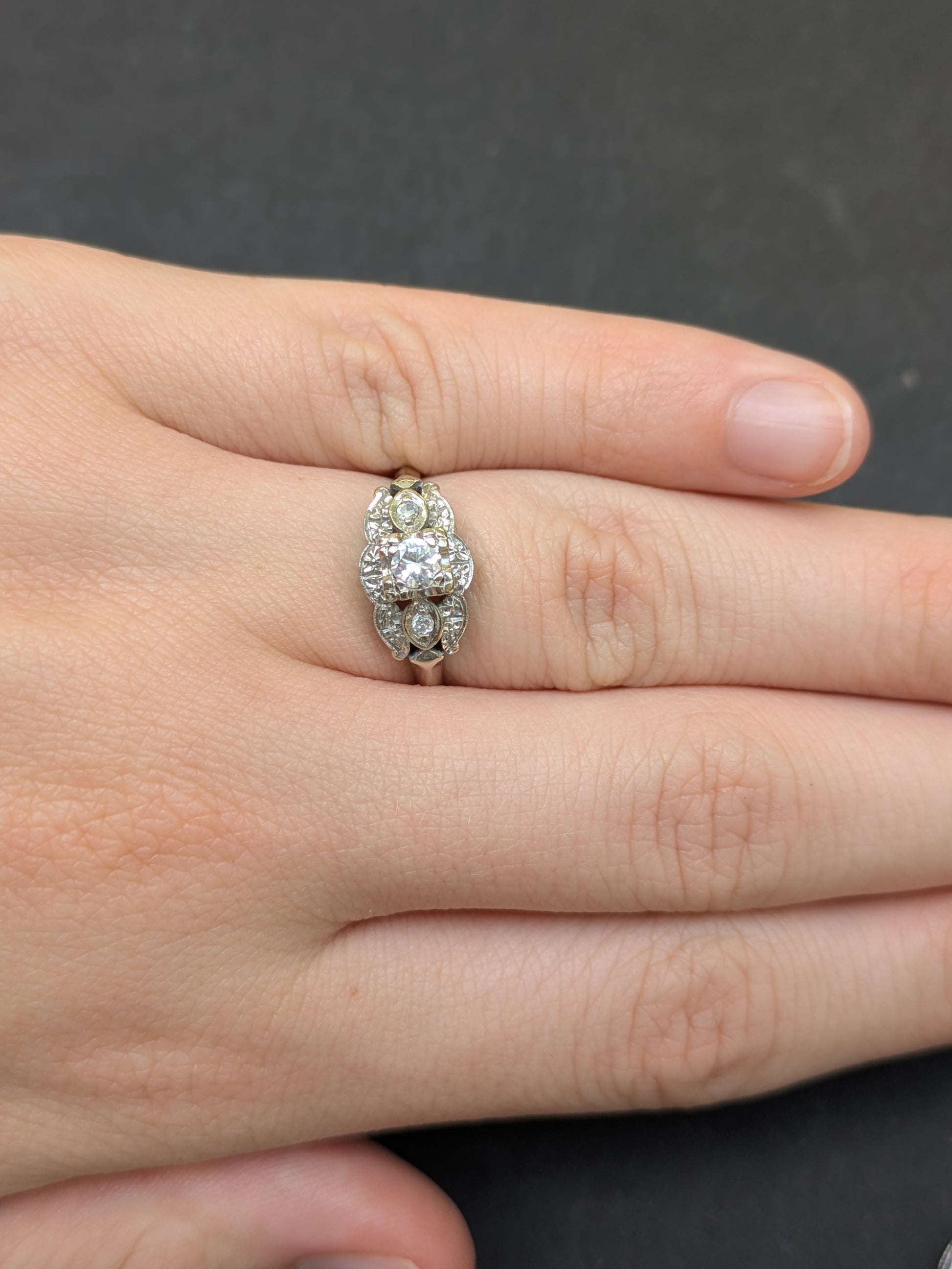 14k White Gold Diamond Ring European Cut Illusion Mounting