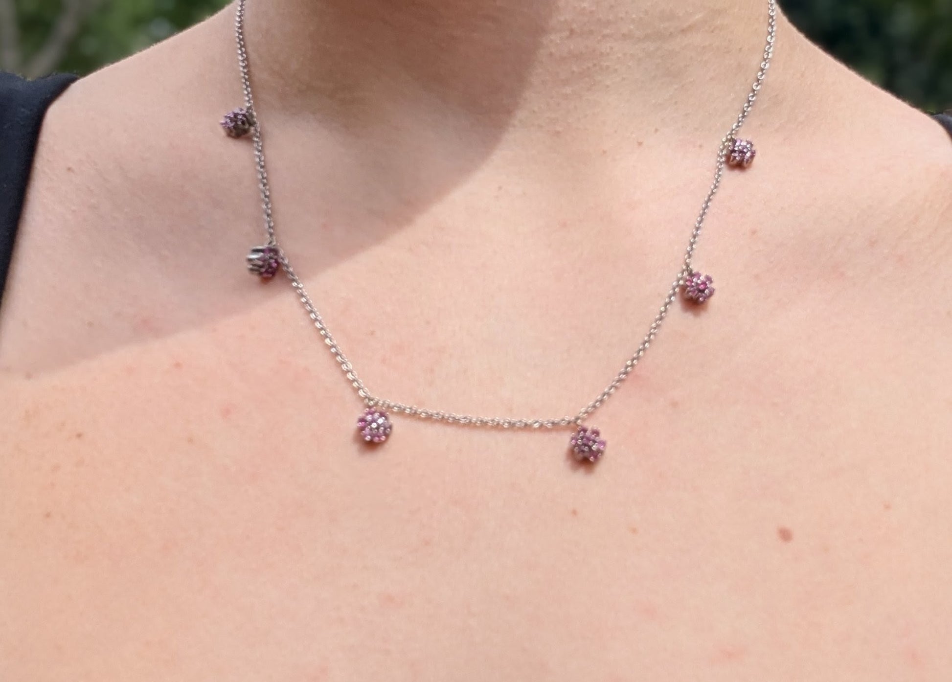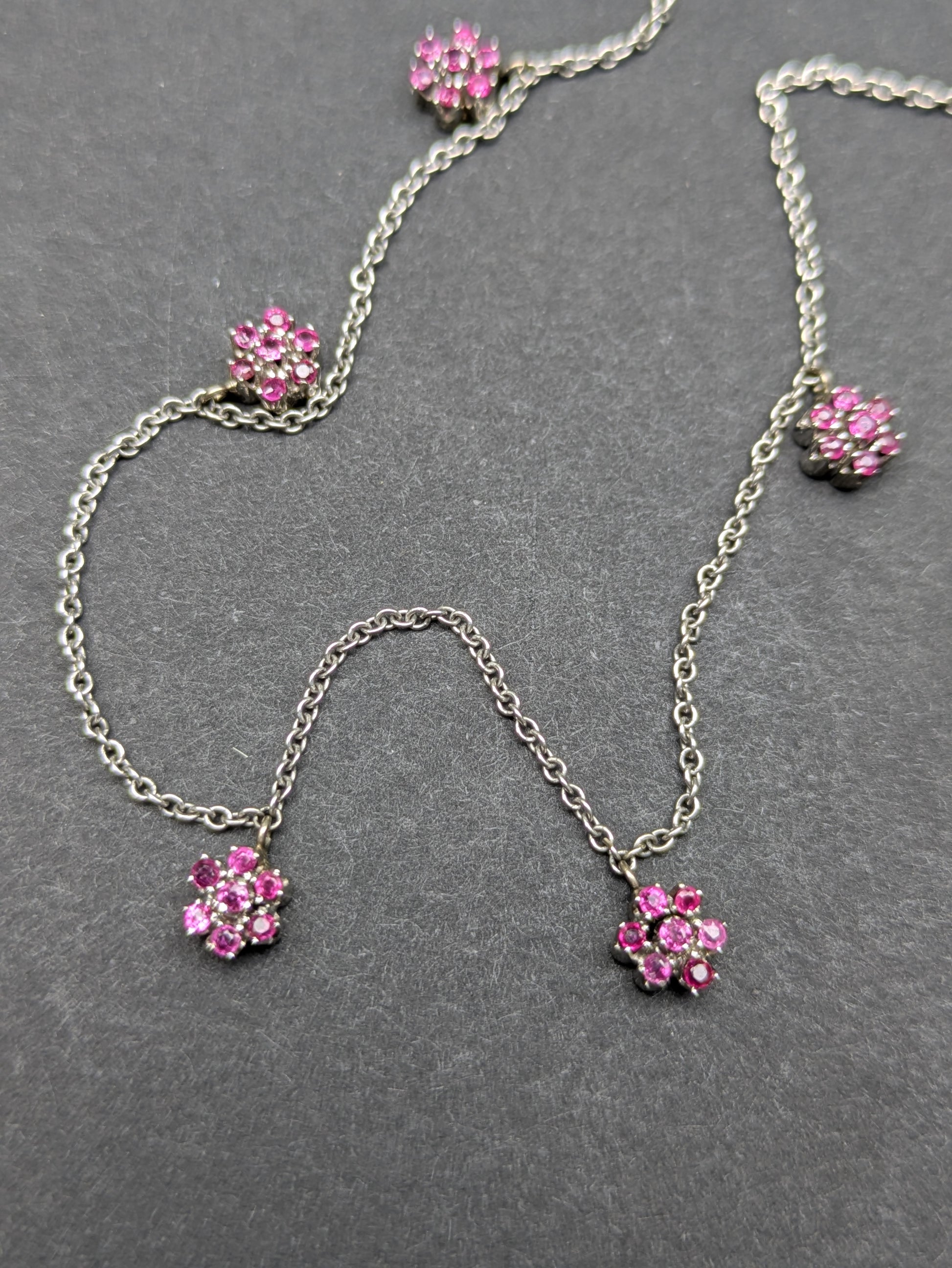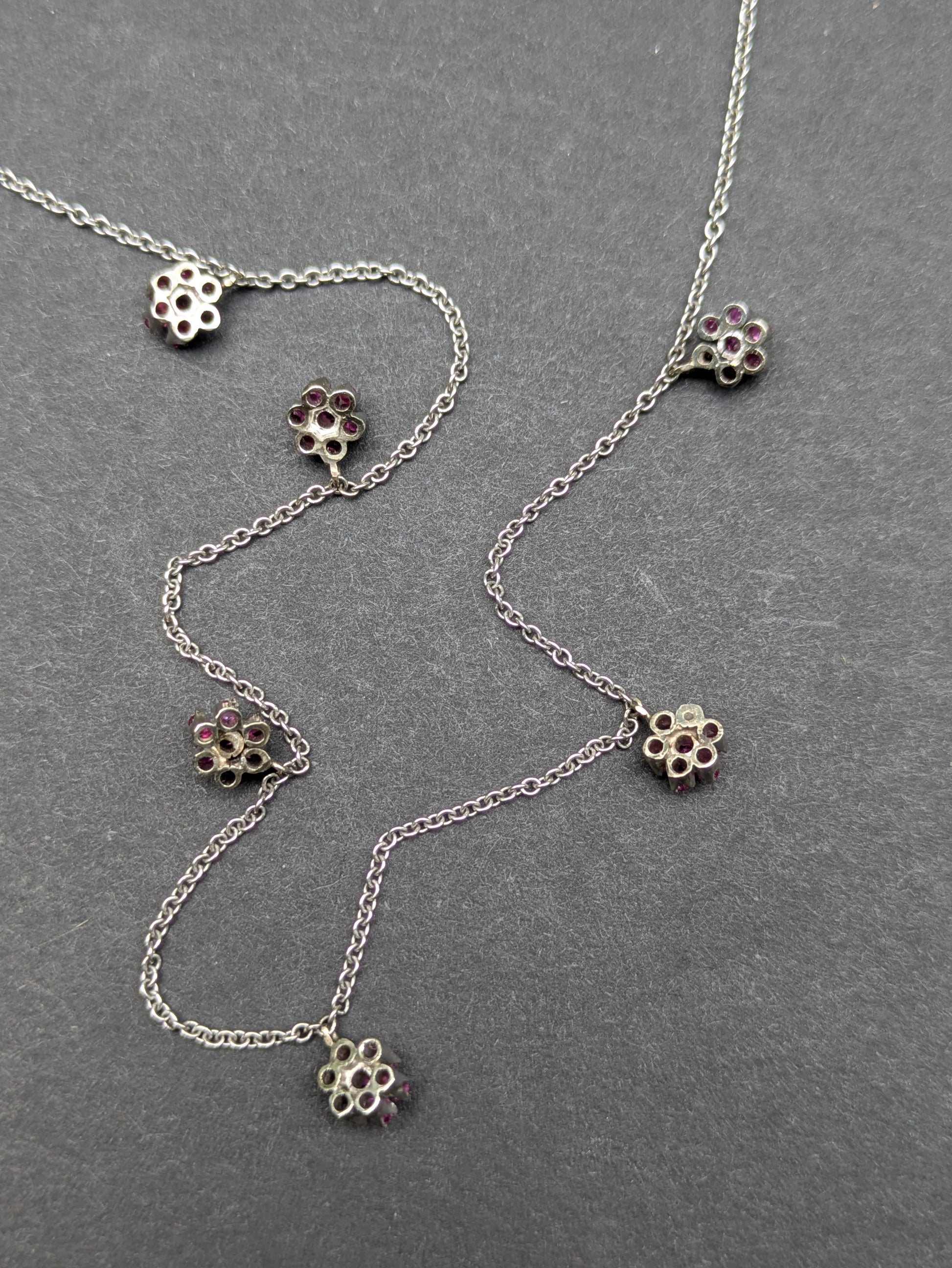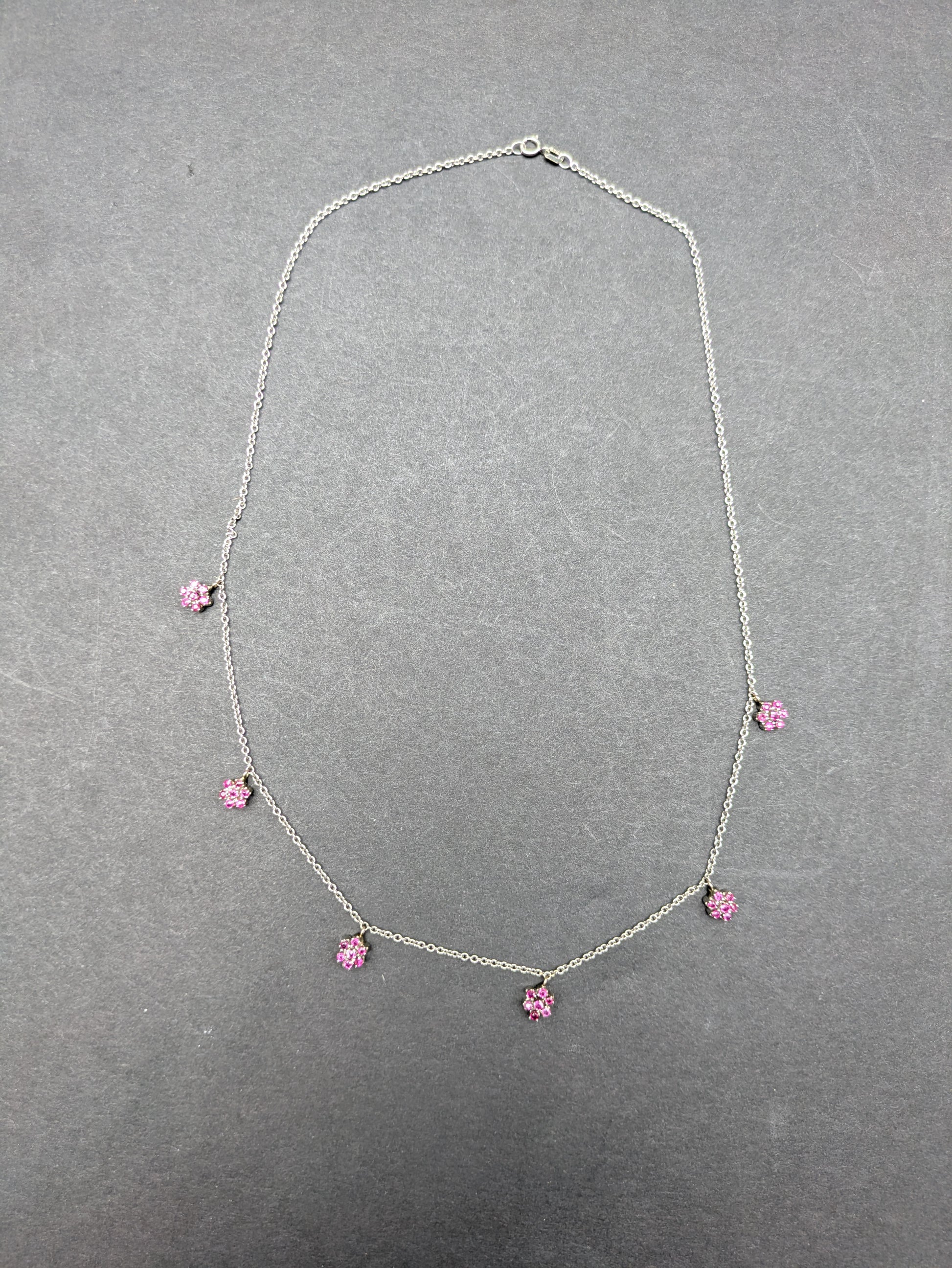 14k White Gold Ruby Flower Necklace Converted from Brooch