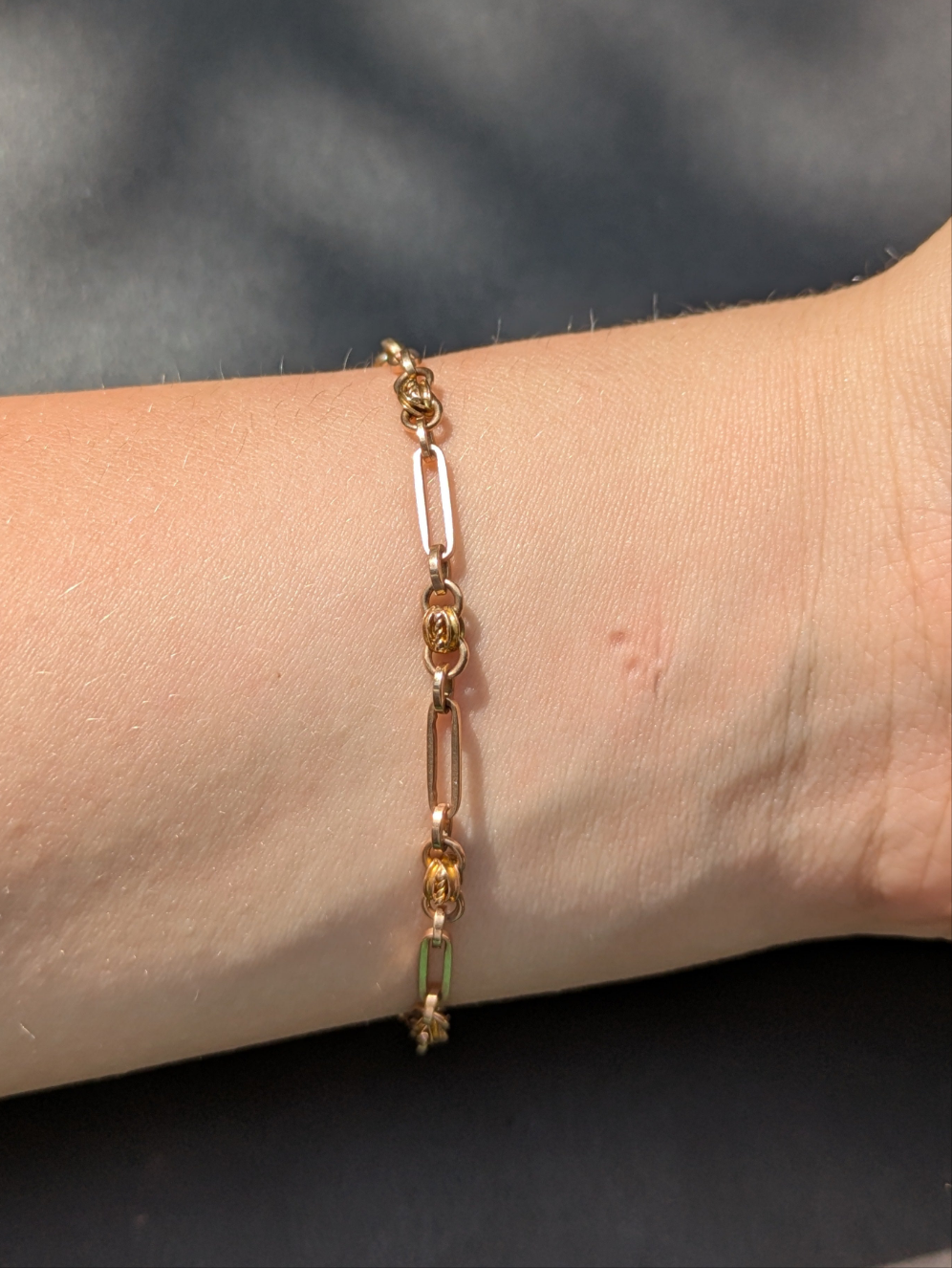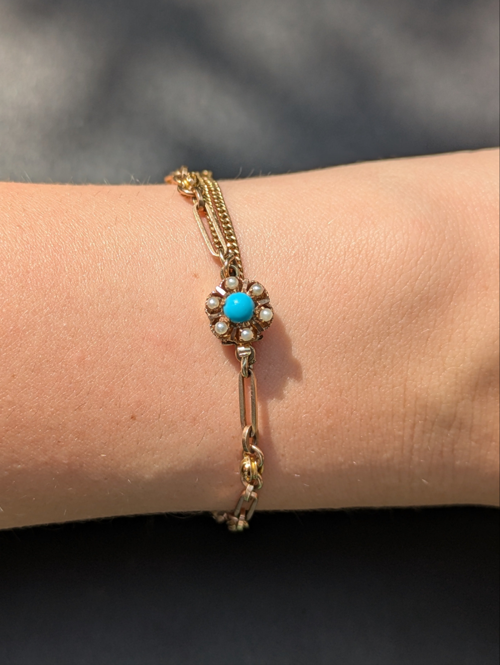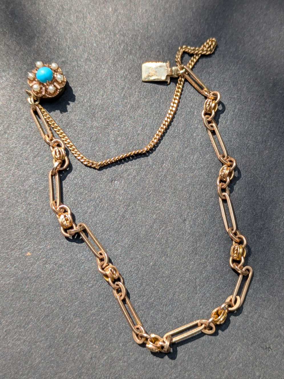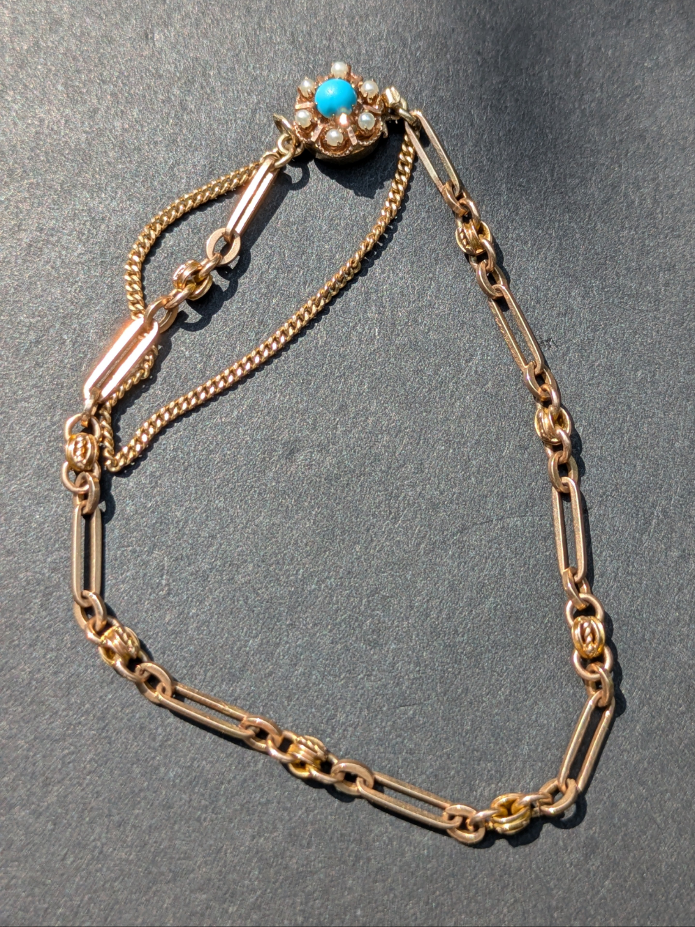 14kt 1930's American Bracelet with Turquoise and Pearl Clasp