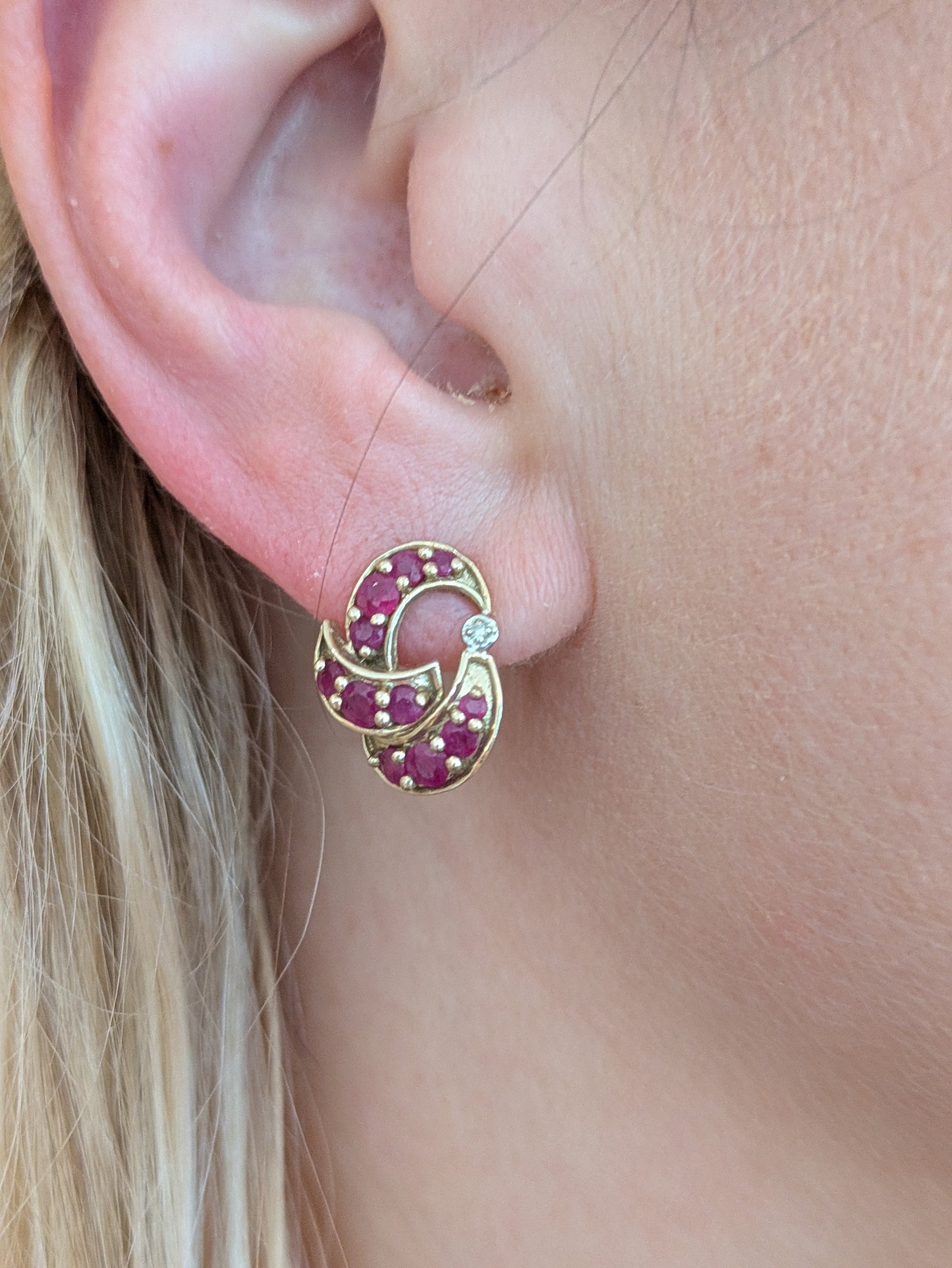 14kt 1950's Ruby and Diamond Swirl Earrings