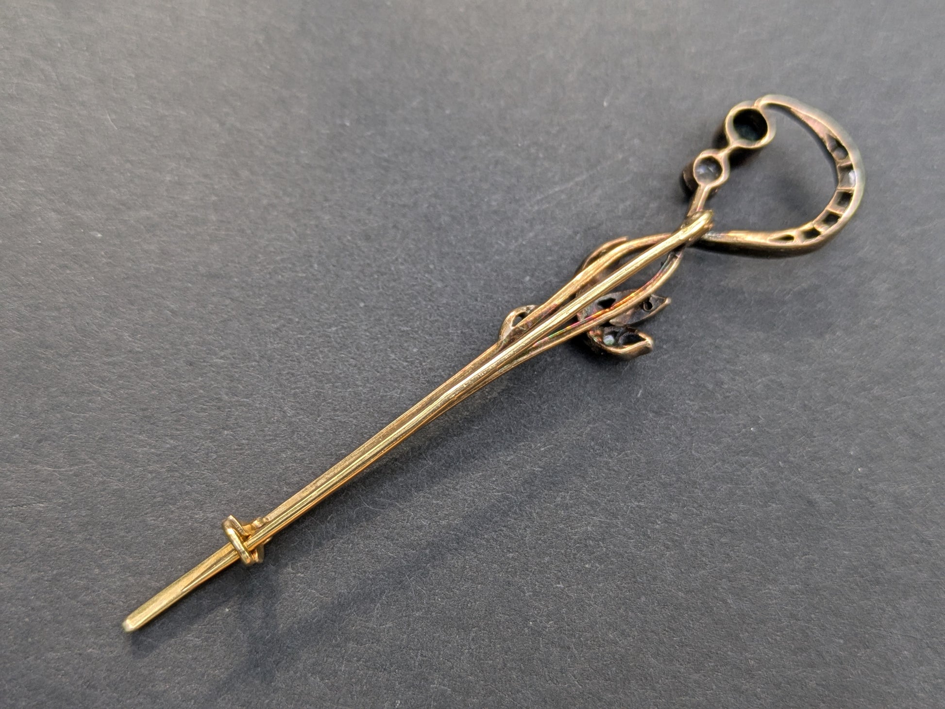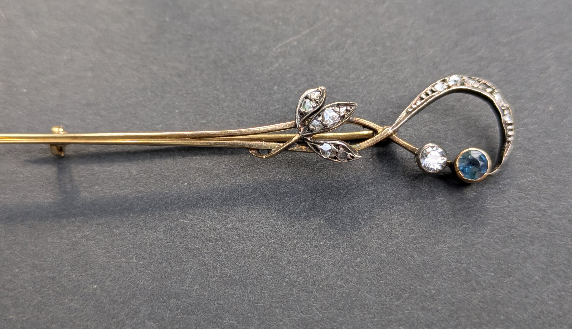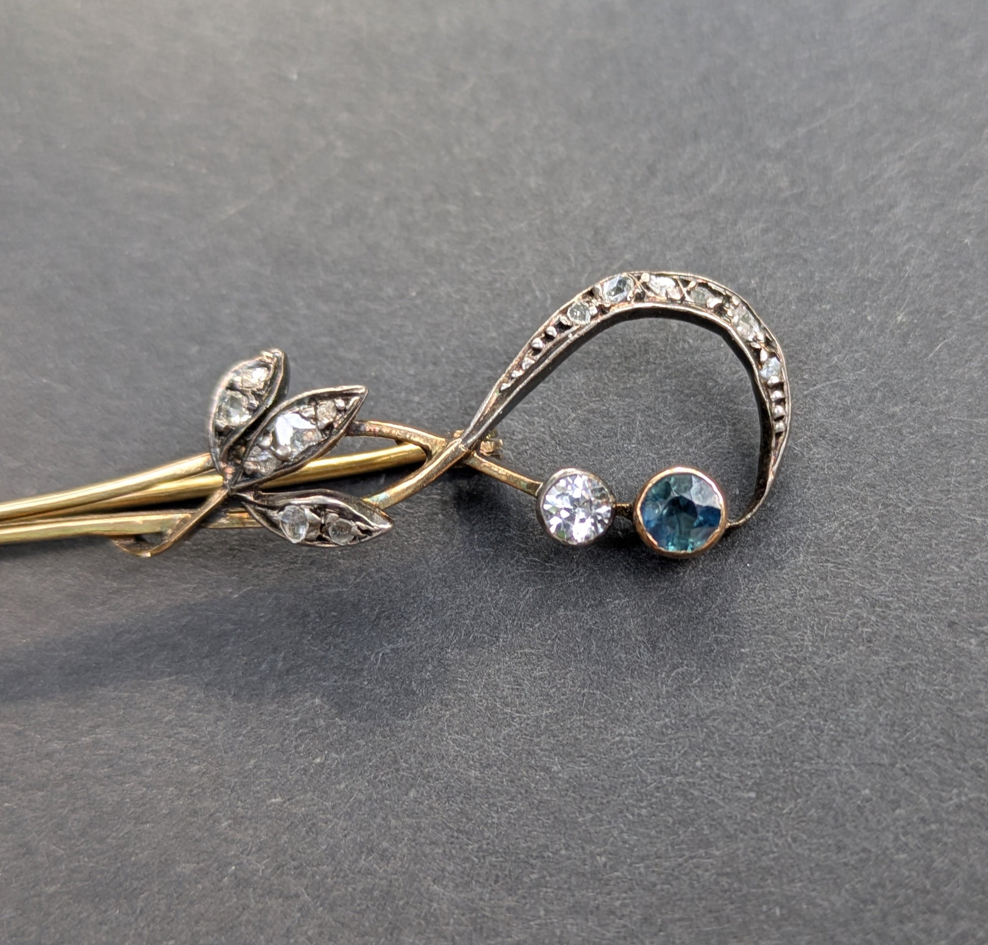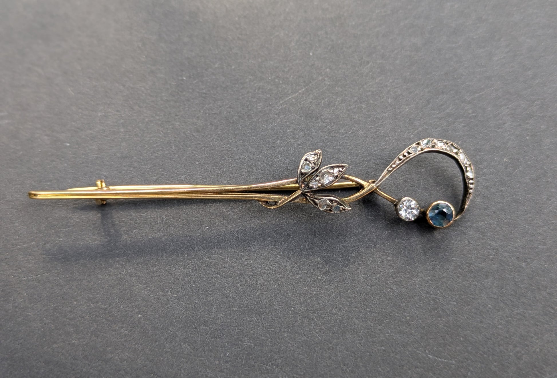 14kt and Silver Jugendstil Brooch Sapphire and Diamond