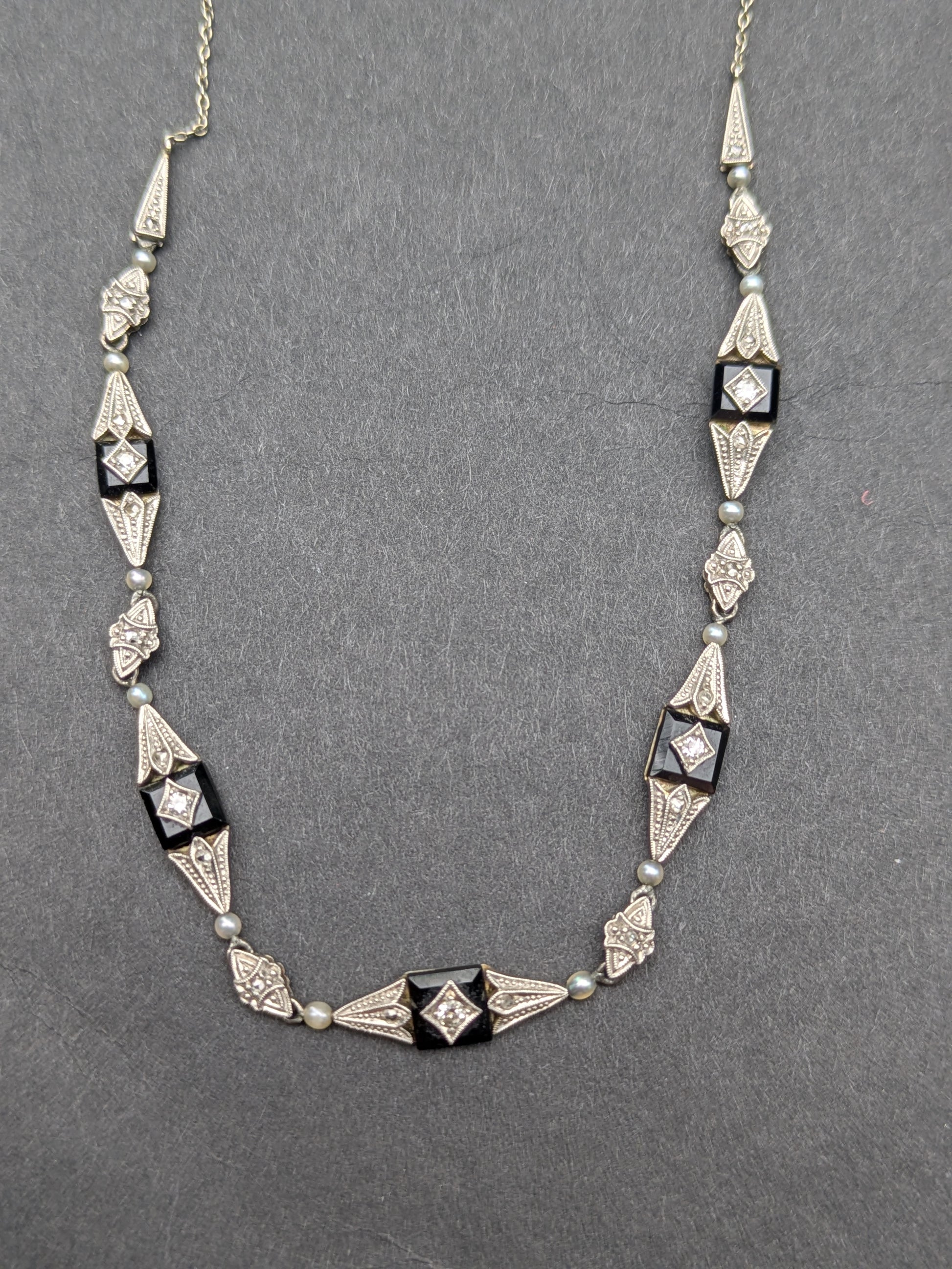 14kt Art Deco Diamond and Onyx Necklace