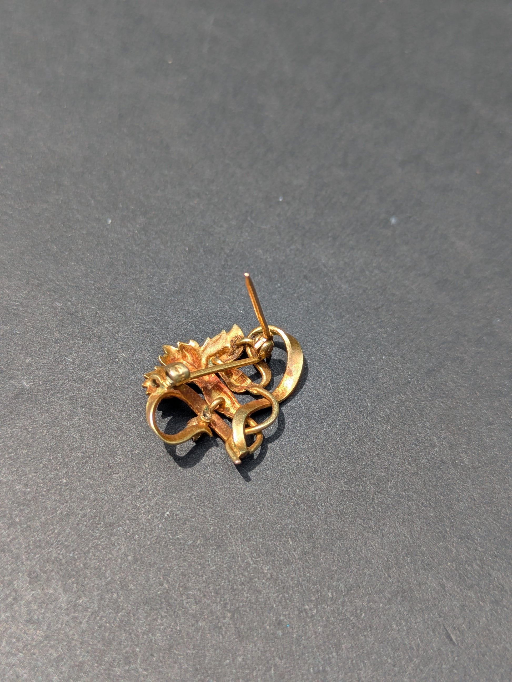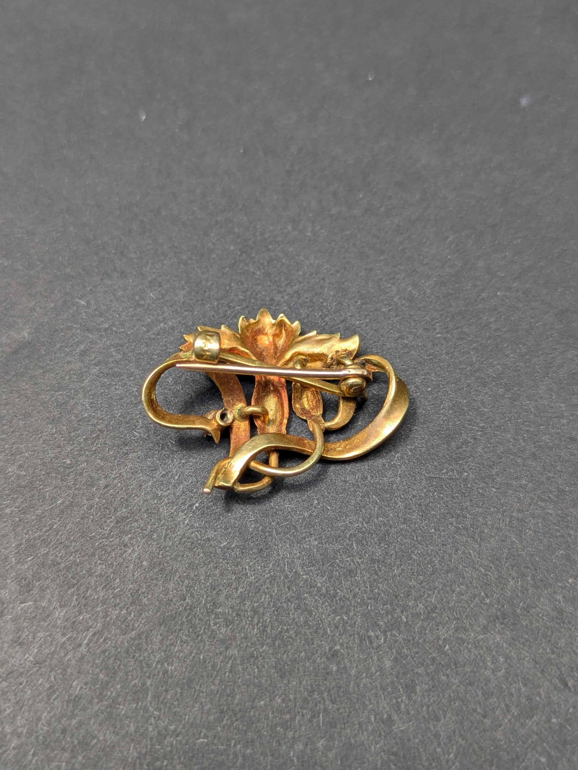 14kt Art Nouveau Enamel Flower Brooch with Diamond