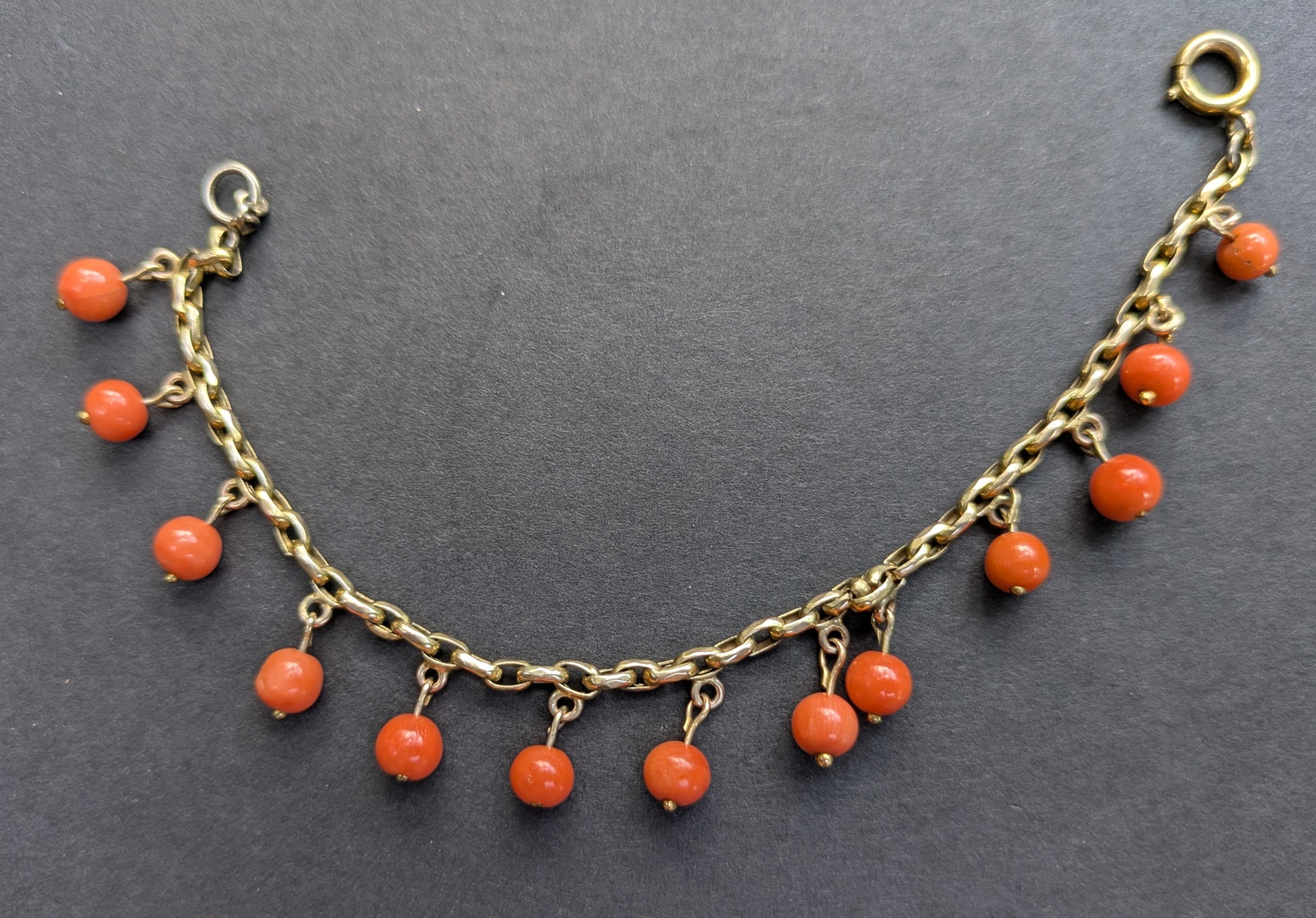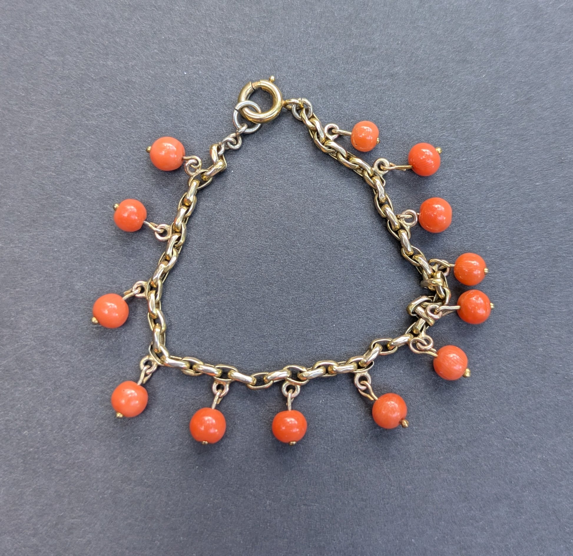 14Kt Coral bead and paperclip link bracelet, German 1920's
