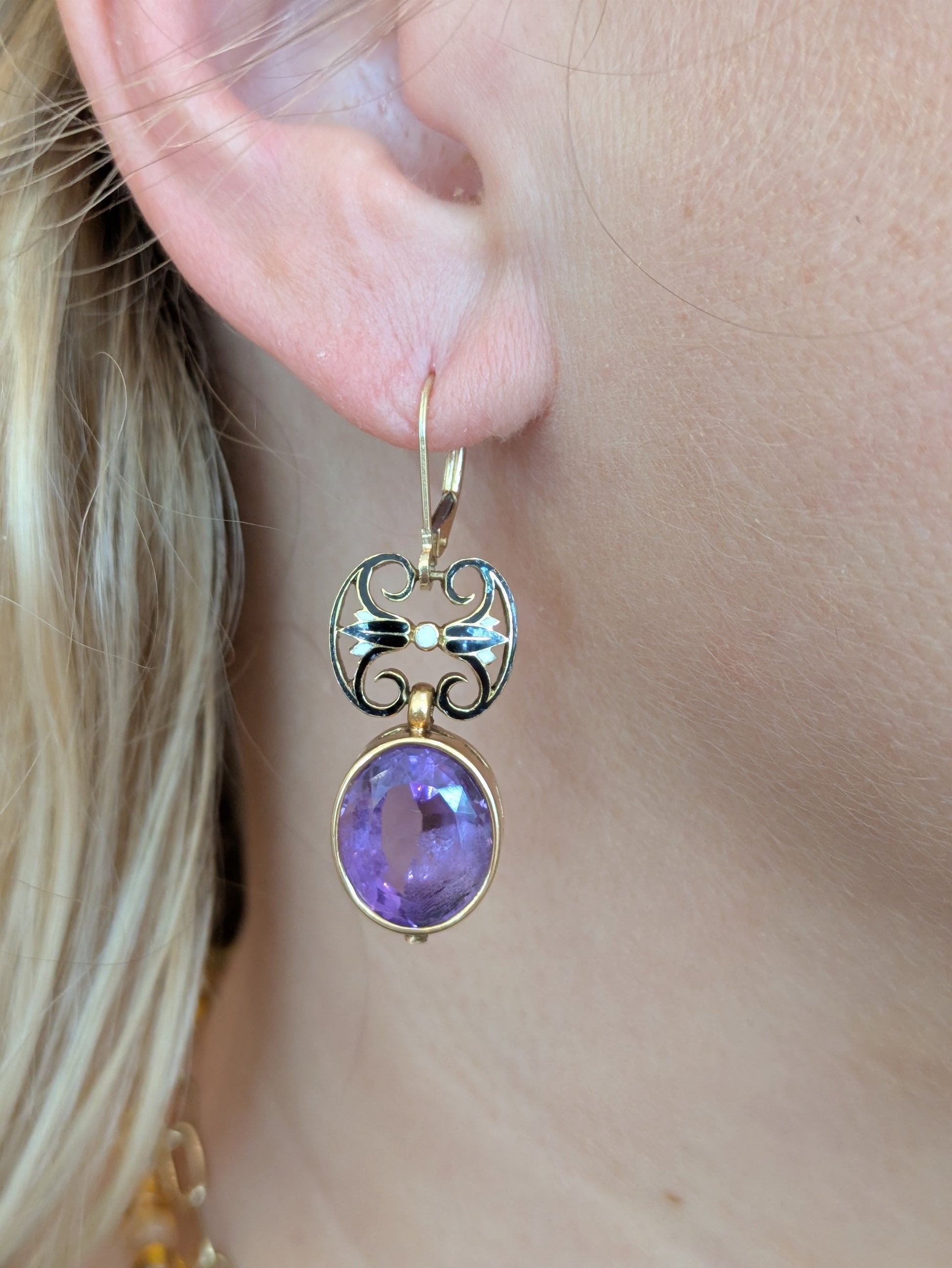 14kt Egyptian Revival Amethyst and Enamel Earrings