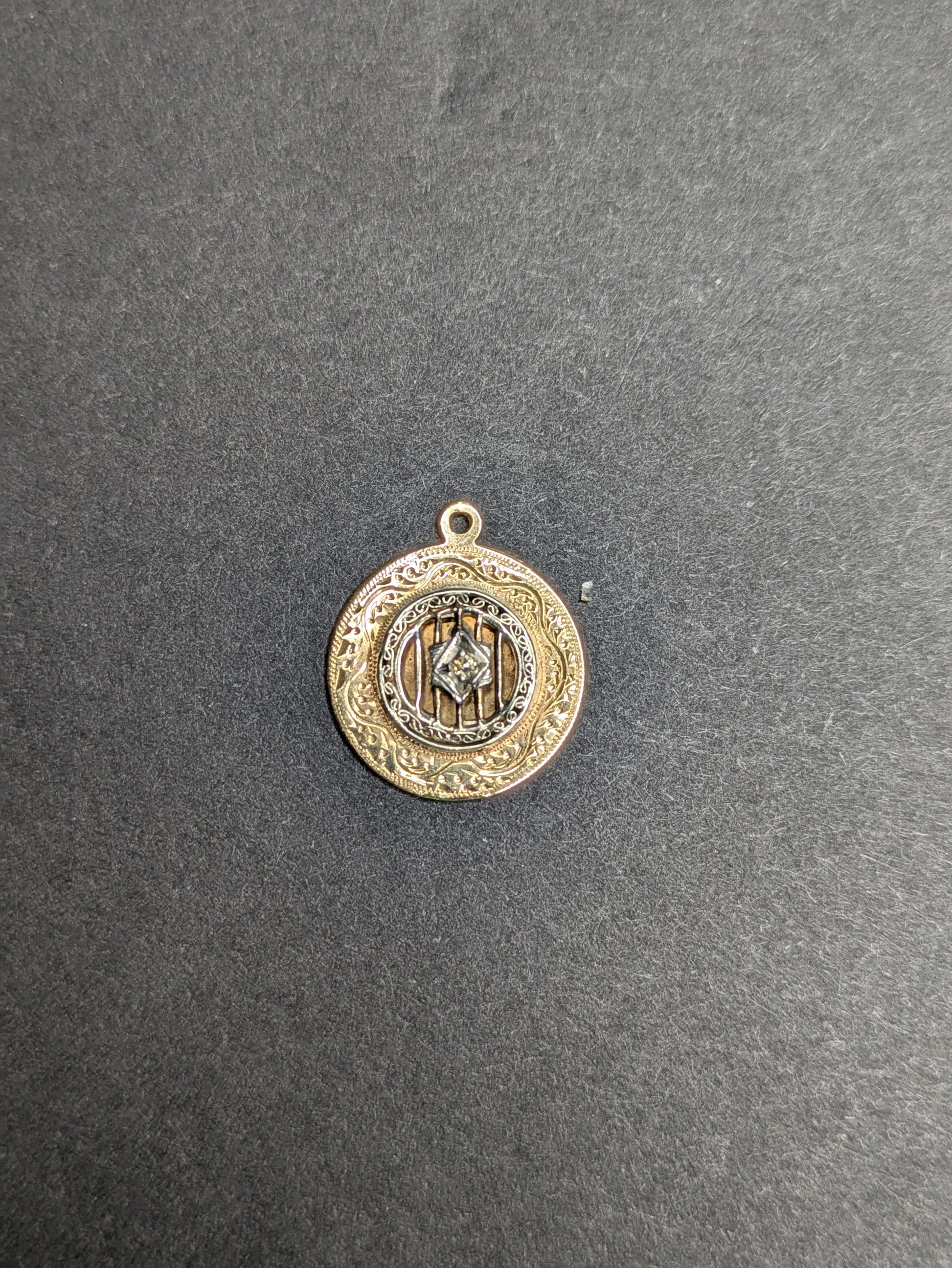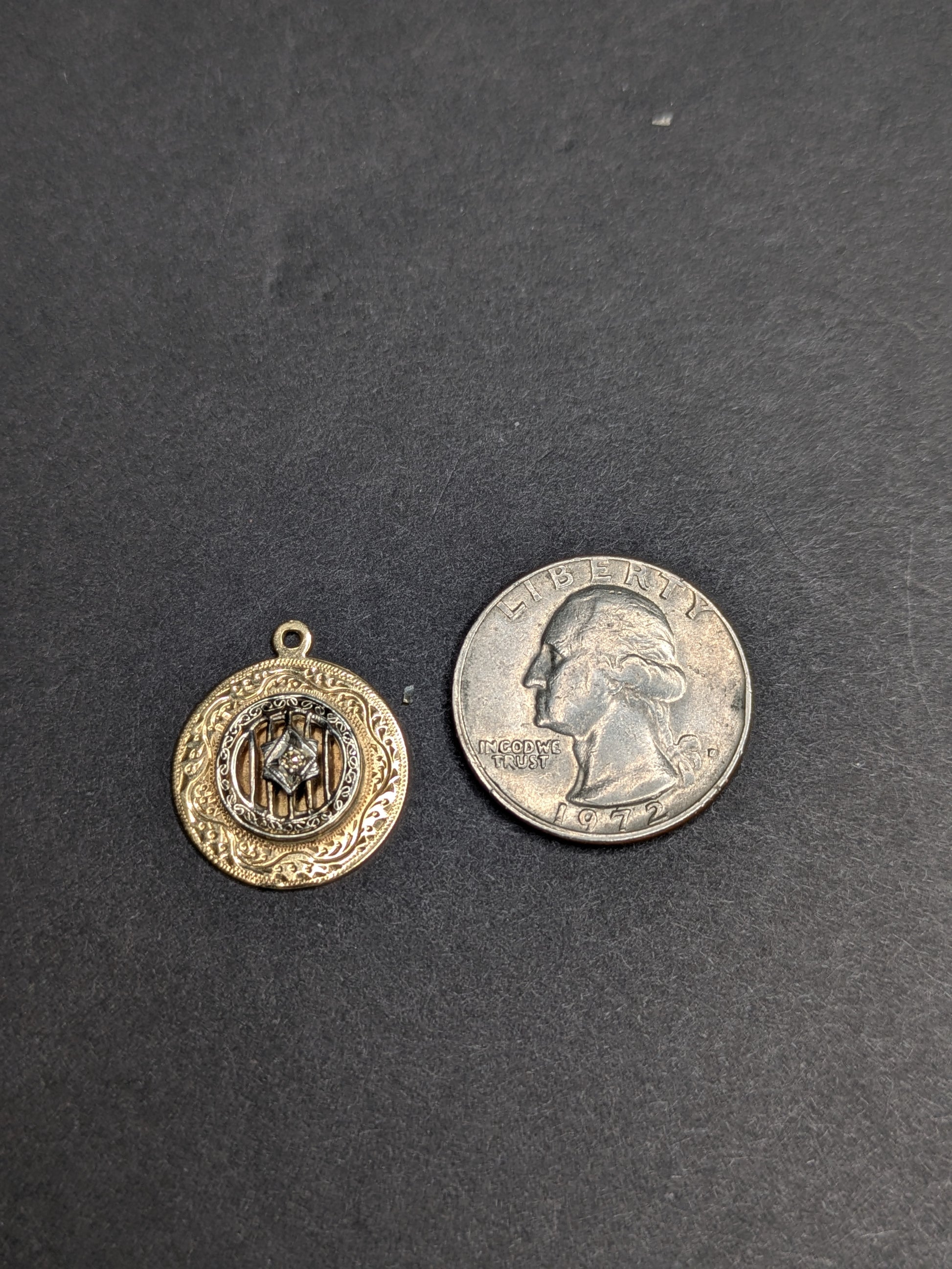 14kt Engraved Disk Charm with added Stick Pin Star and Diamond