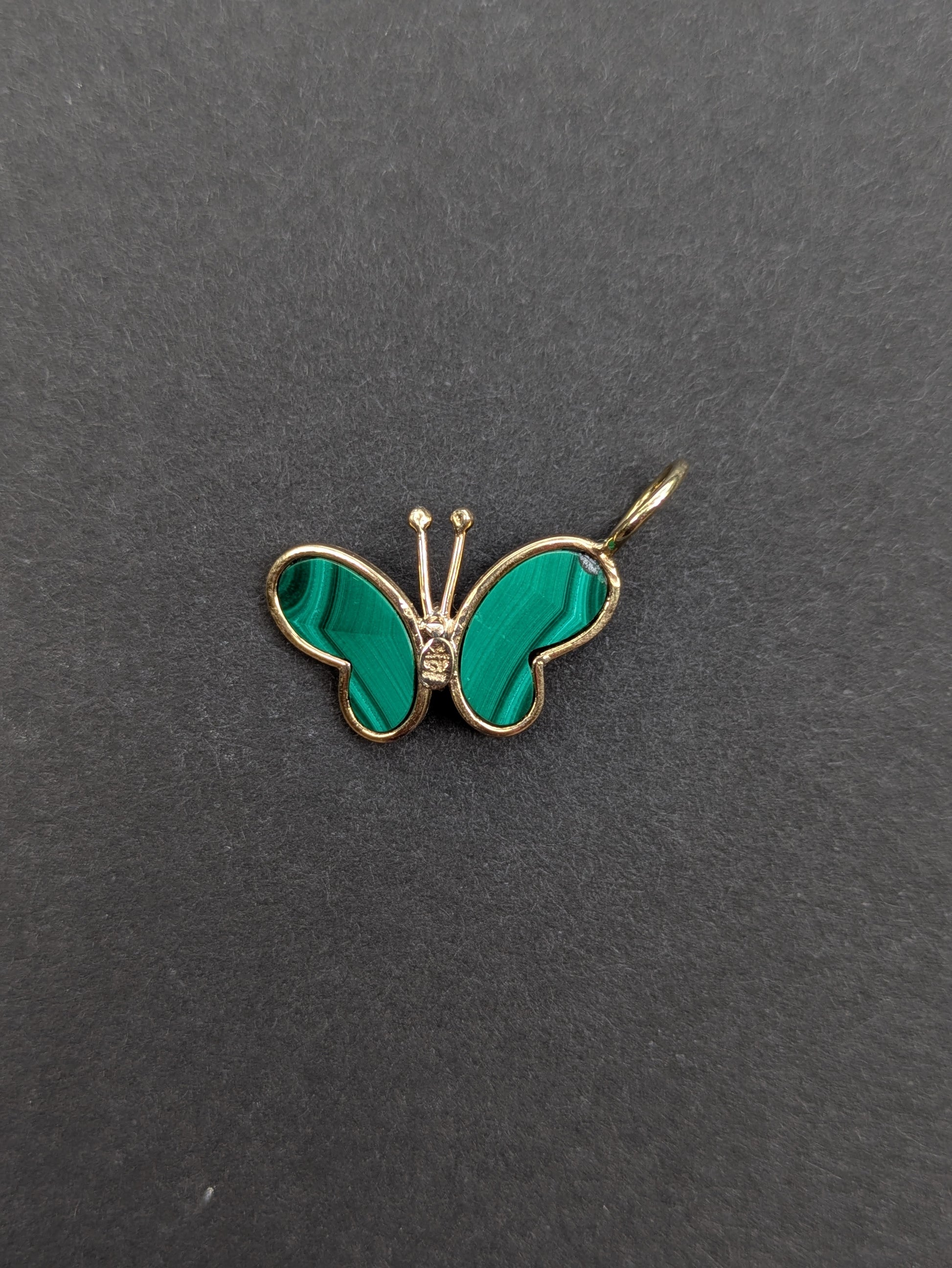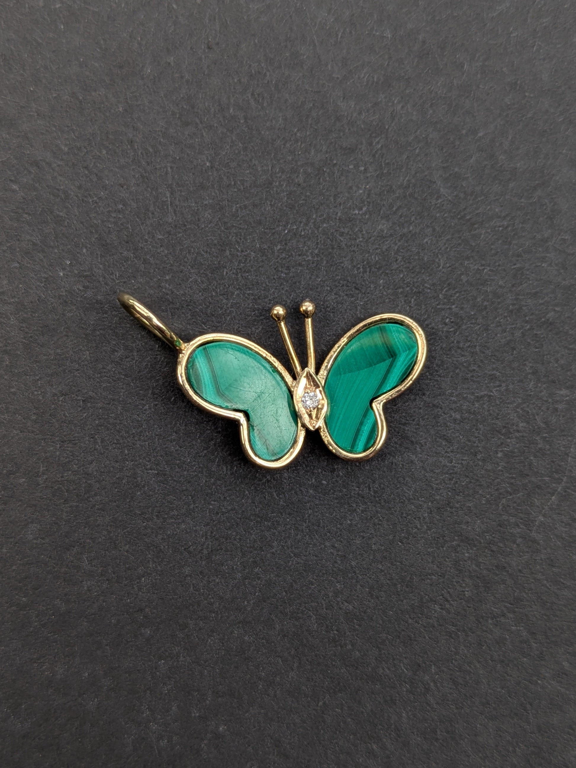 14kt Malachite and Diamond Butterfly Pendant