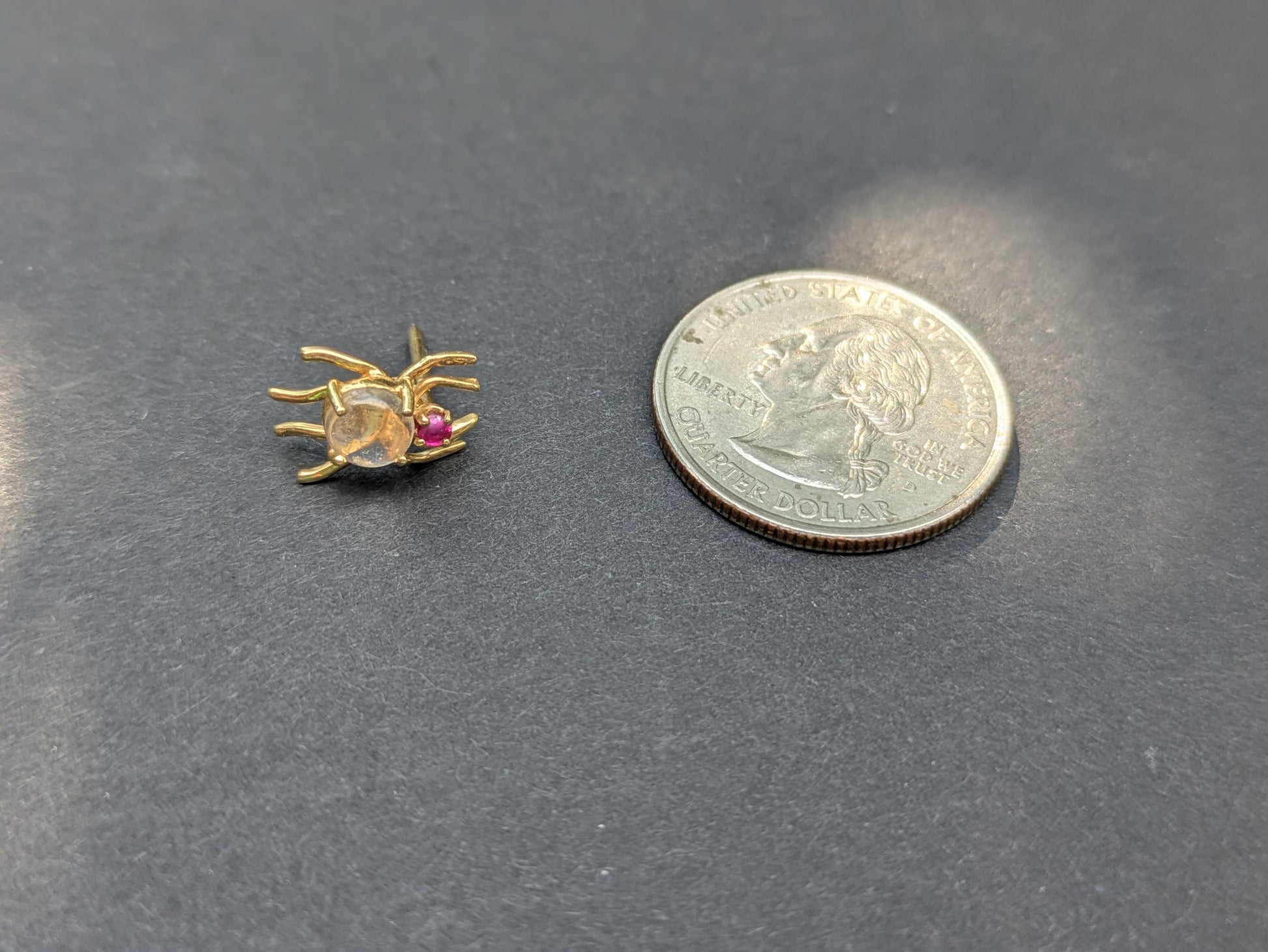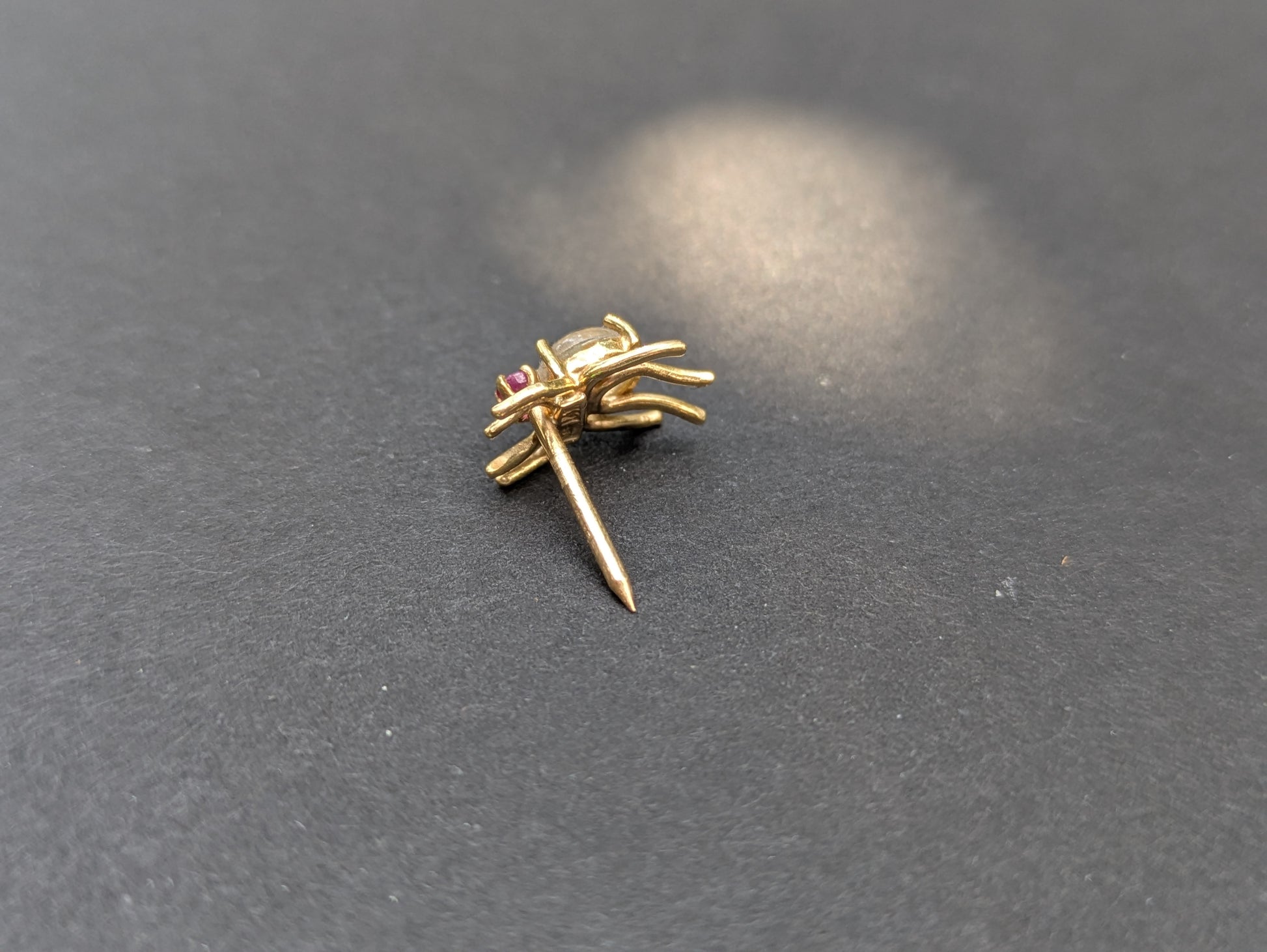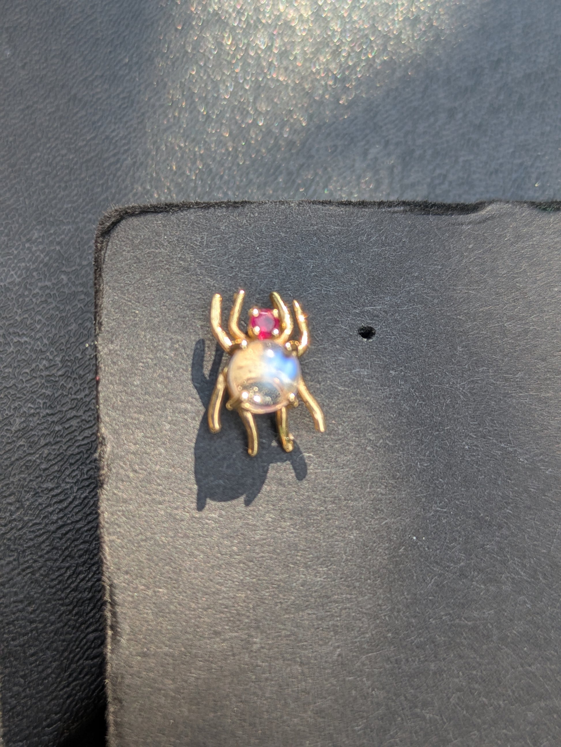 14kt Moonstone and Ruby Spider Pin