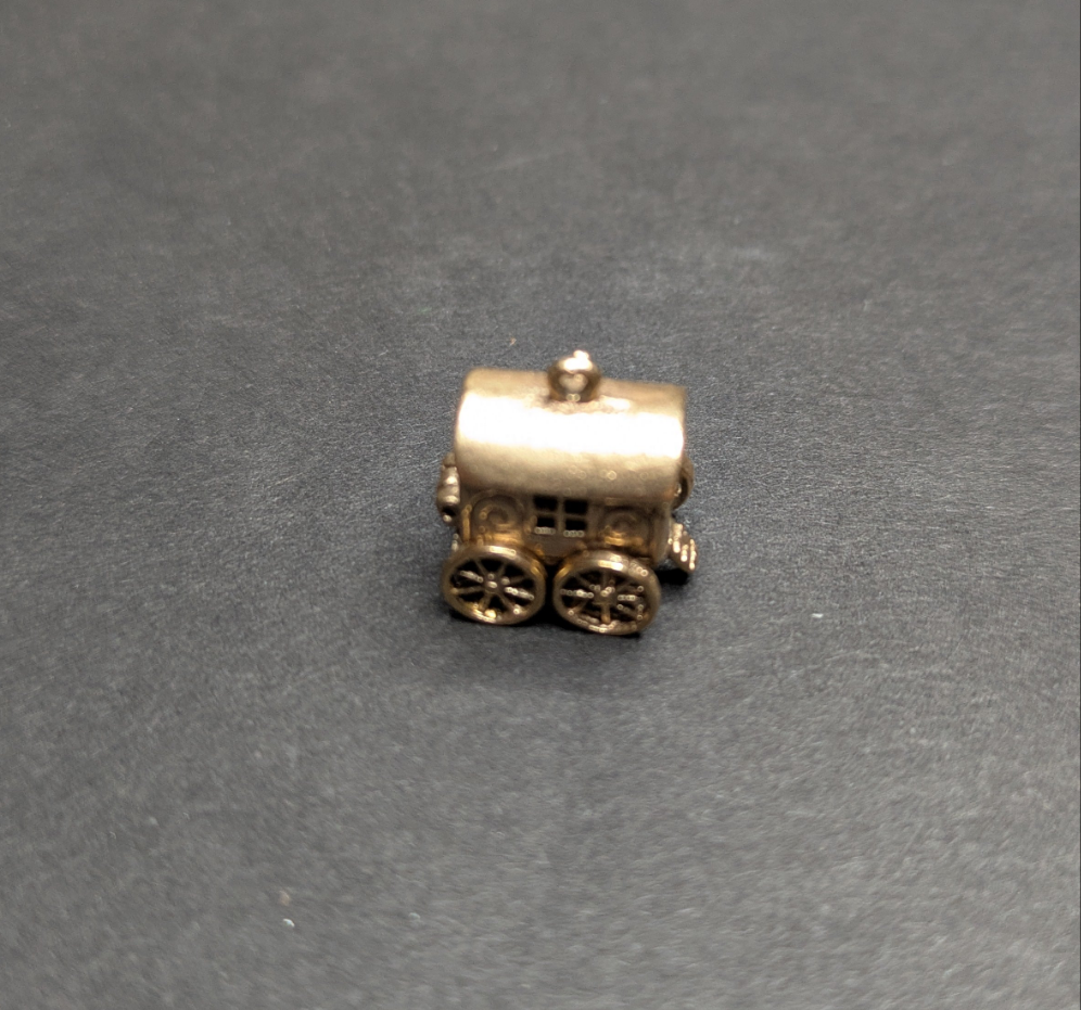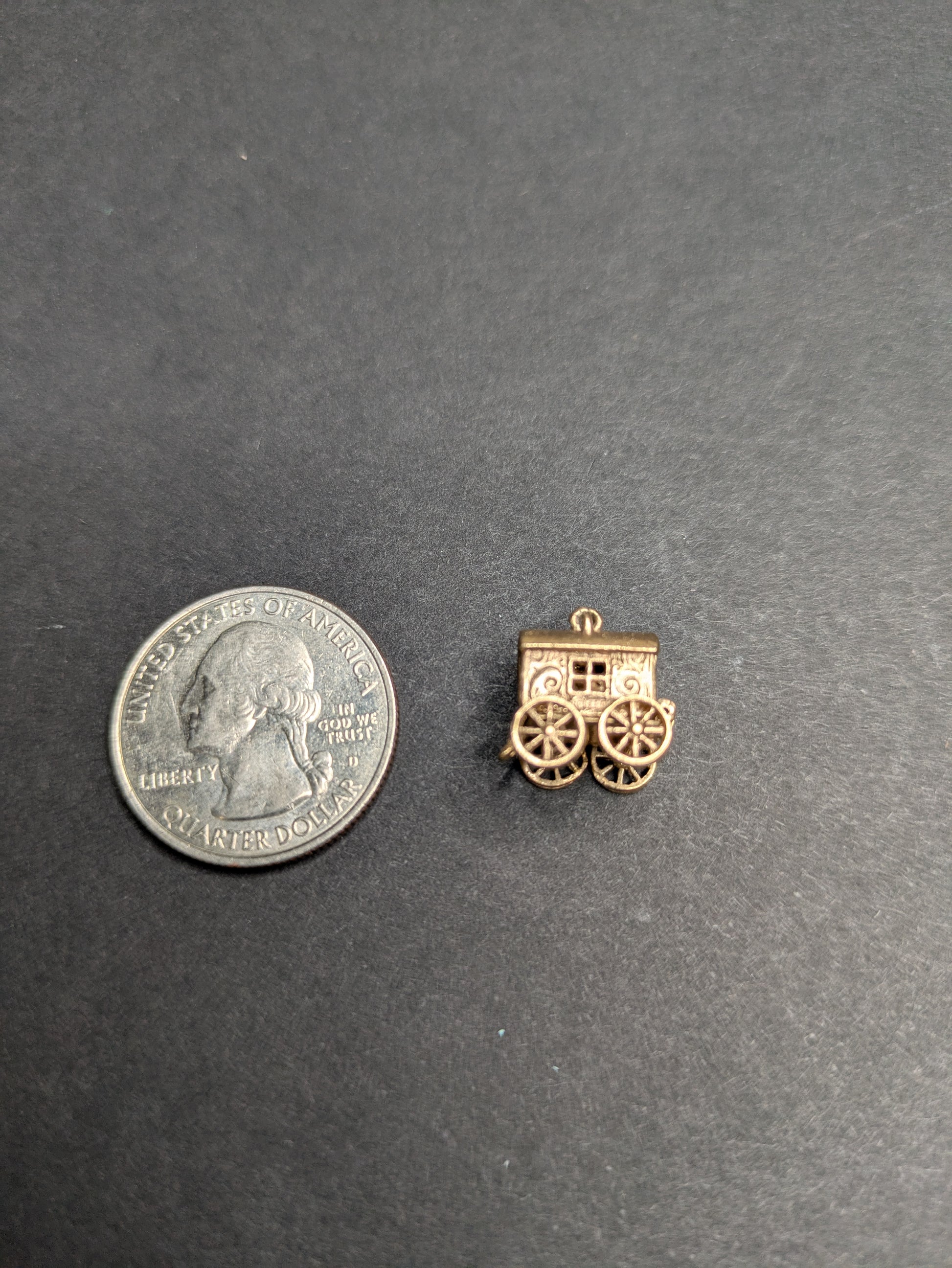 14kt Movable Charm Wagon Which Opens to Women at Table