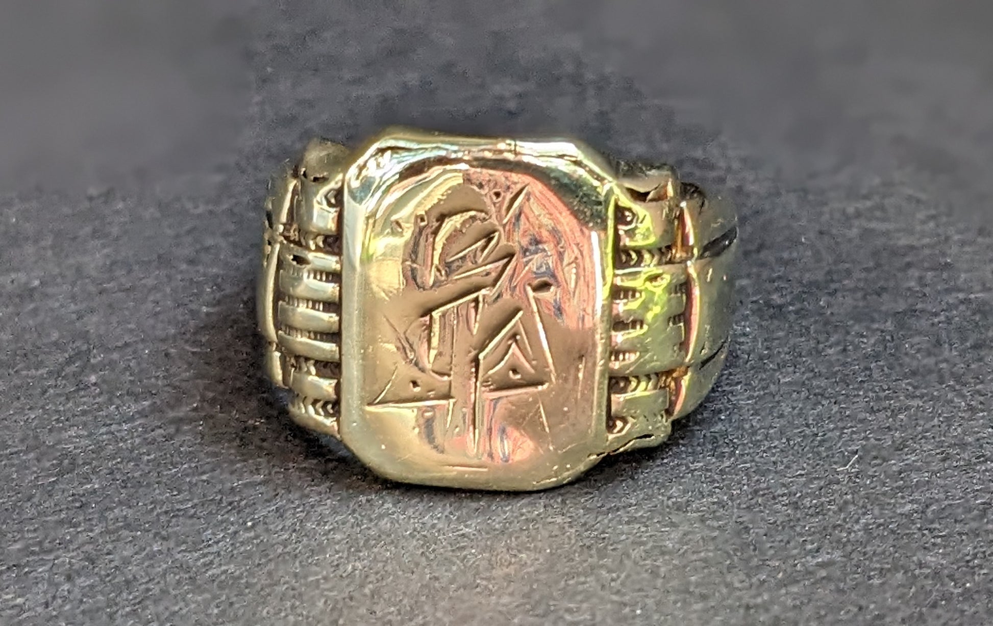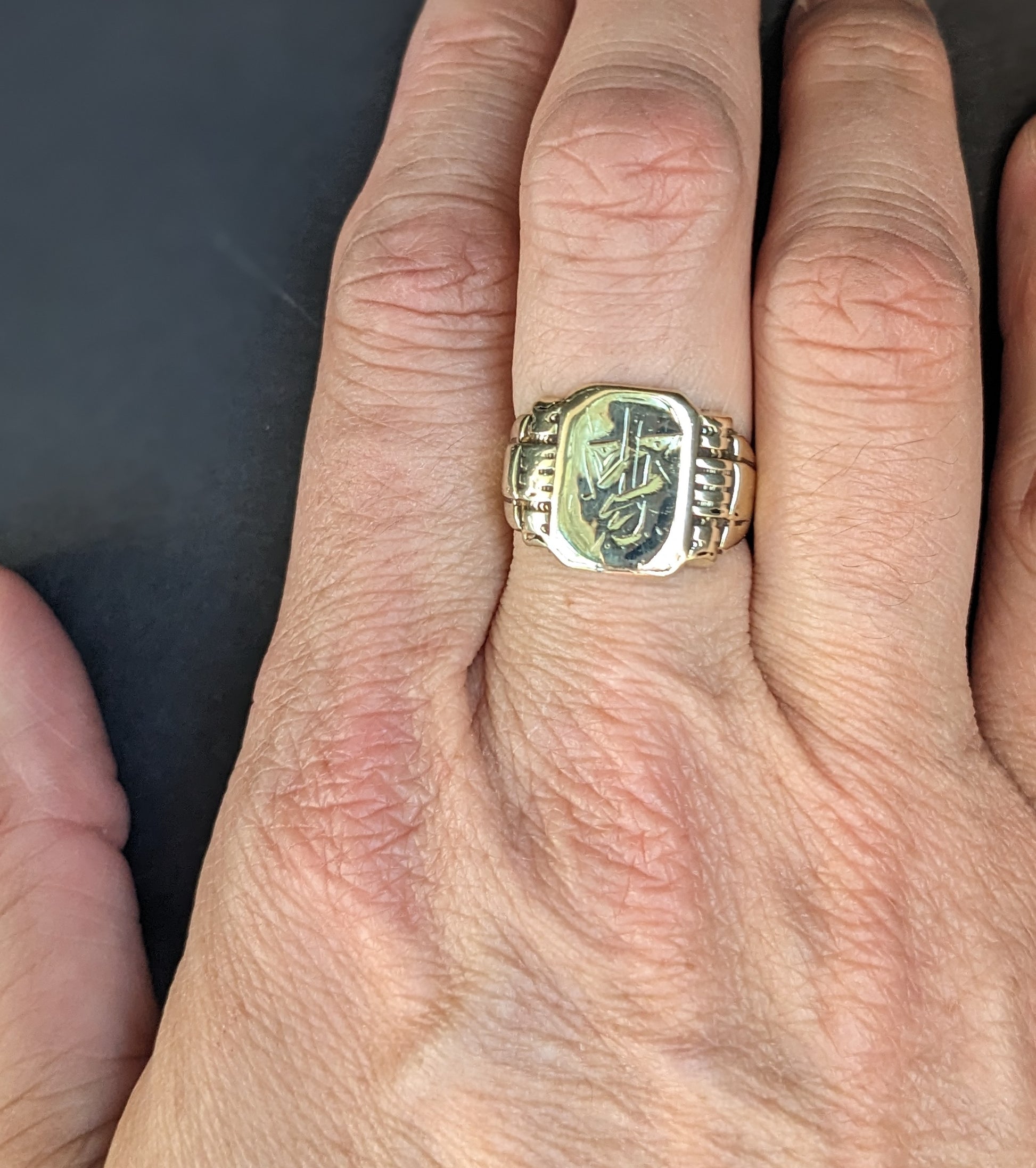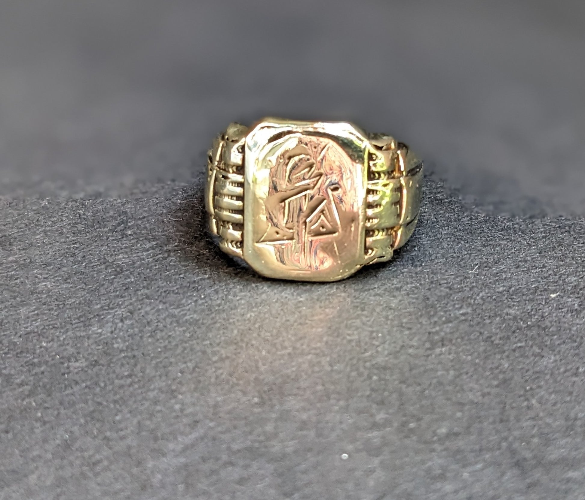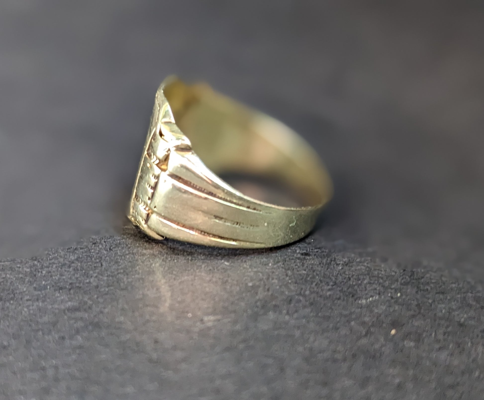 14Kt Signet large signet ring Rectangular with worn markings, rectangular in shape