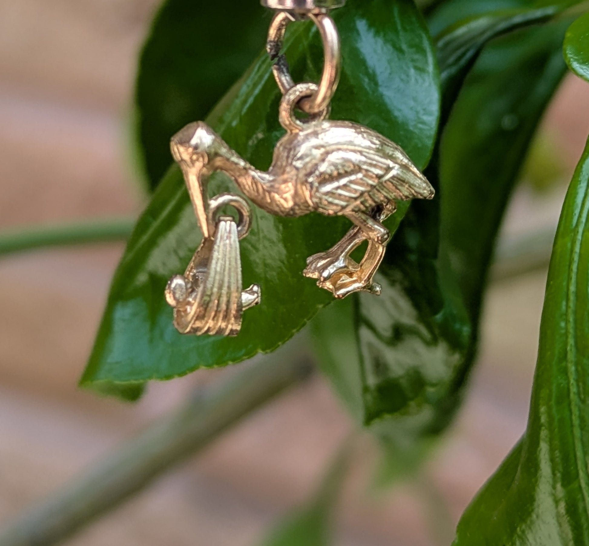 14kt Stork with Baby - Moveable Charm