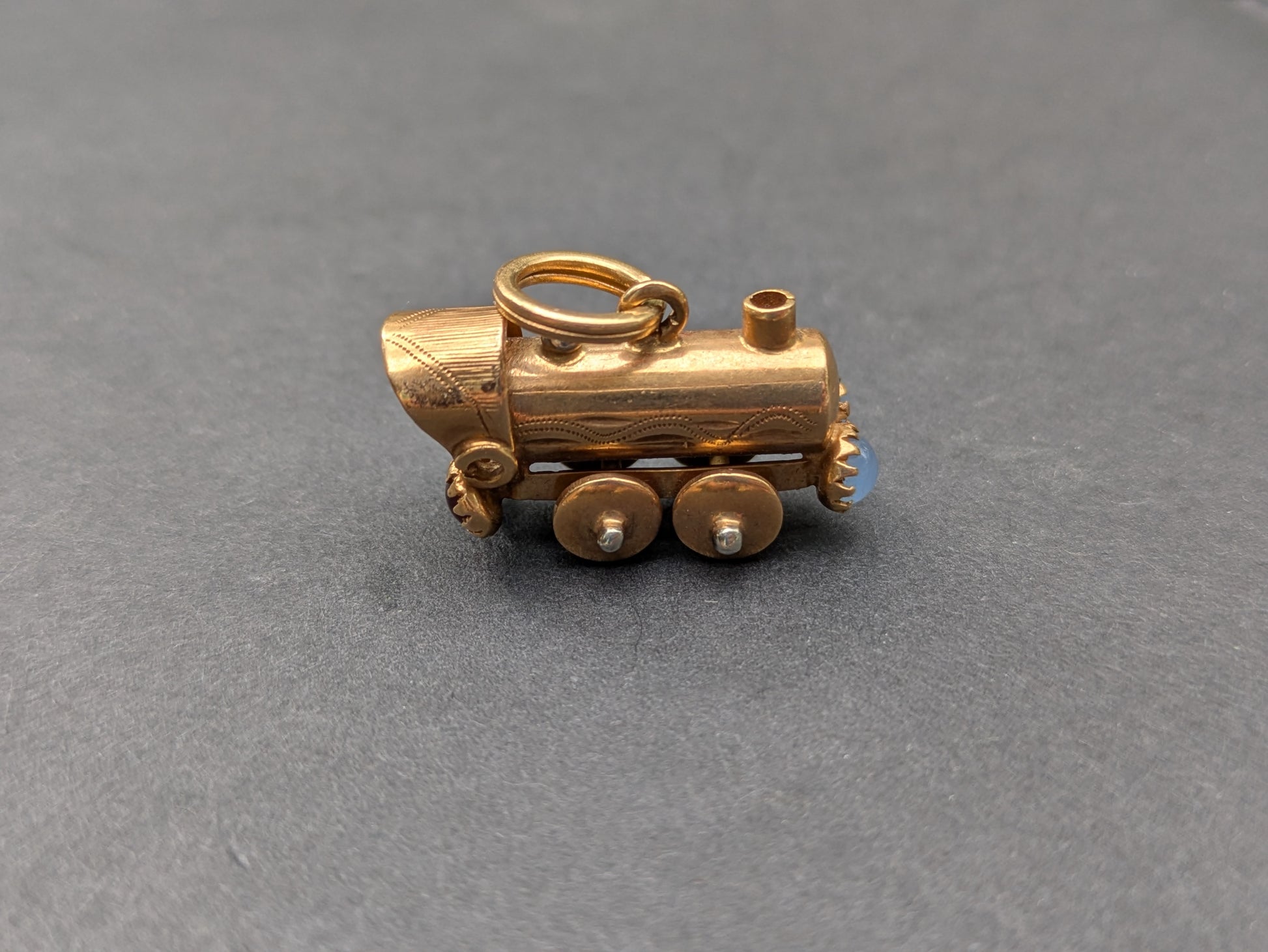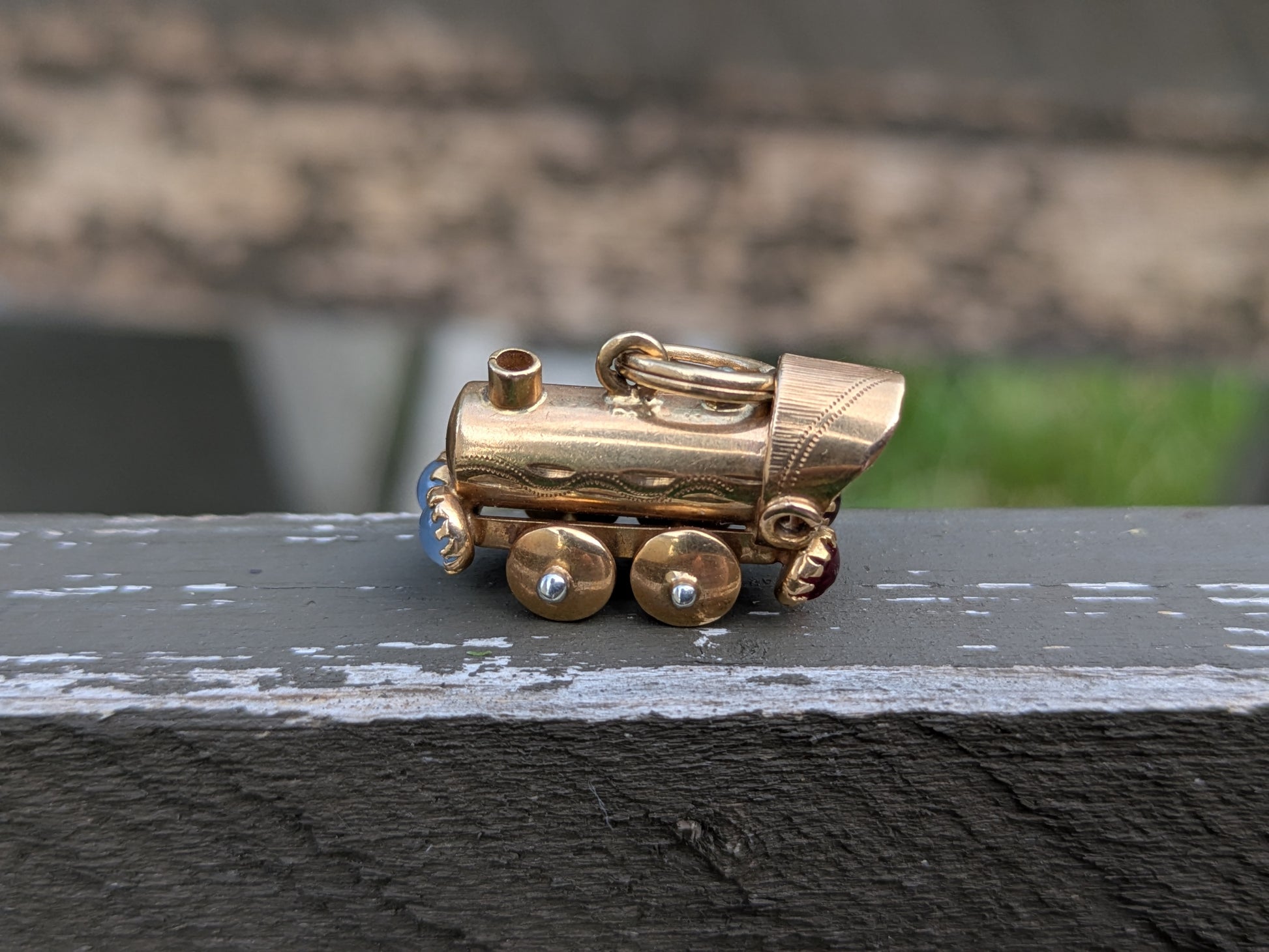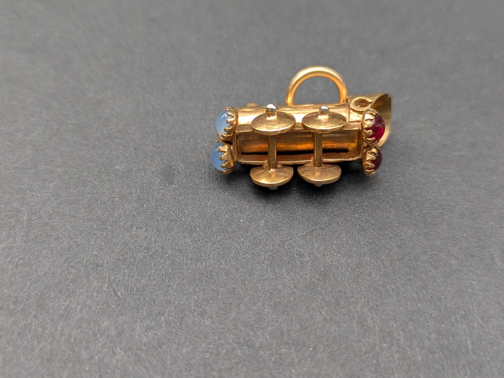14kt Train Car Charm with Moonstone and Garnet