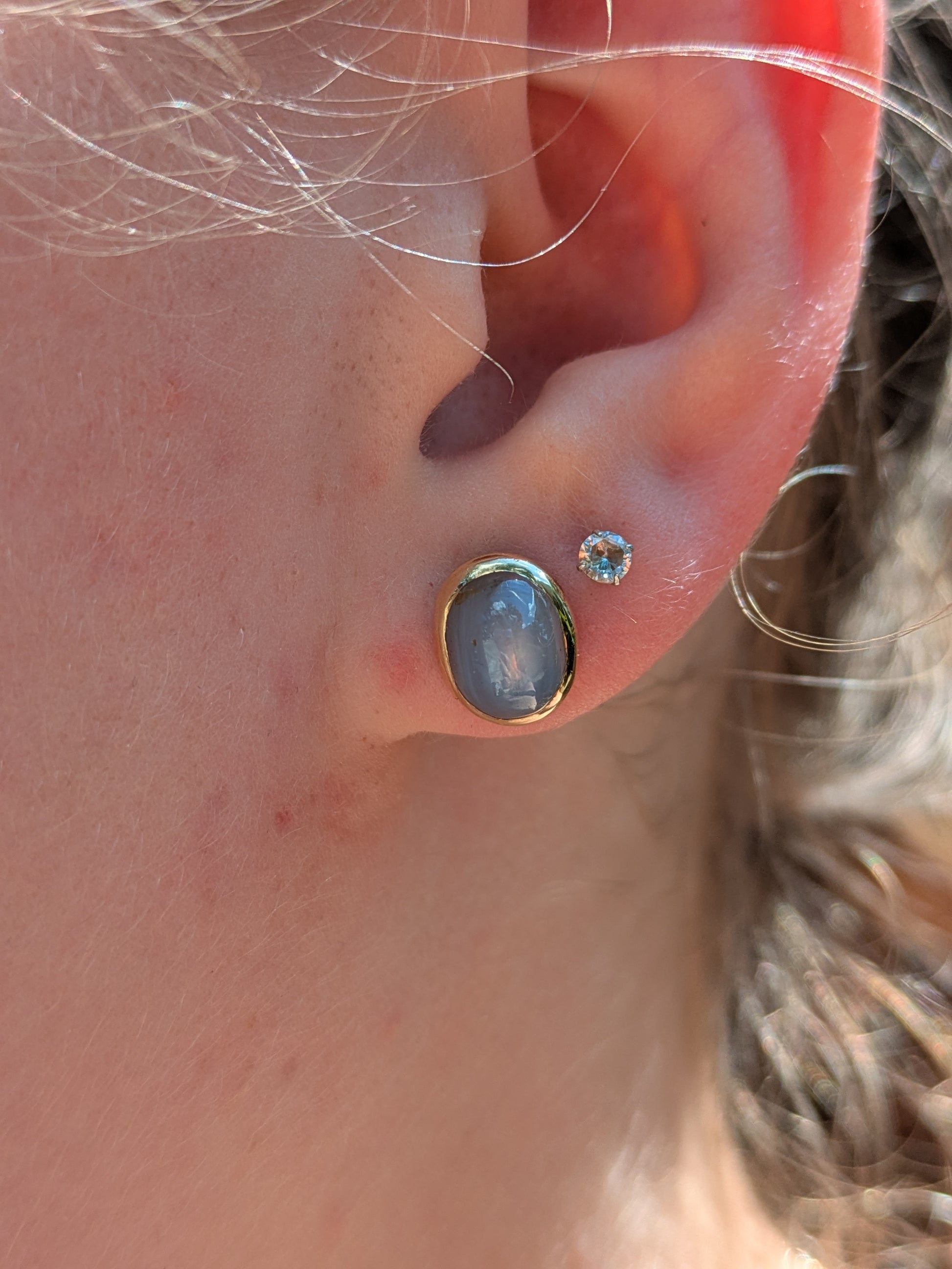 14kt white Gold Sugarloaf Sapphire Stud Earrings