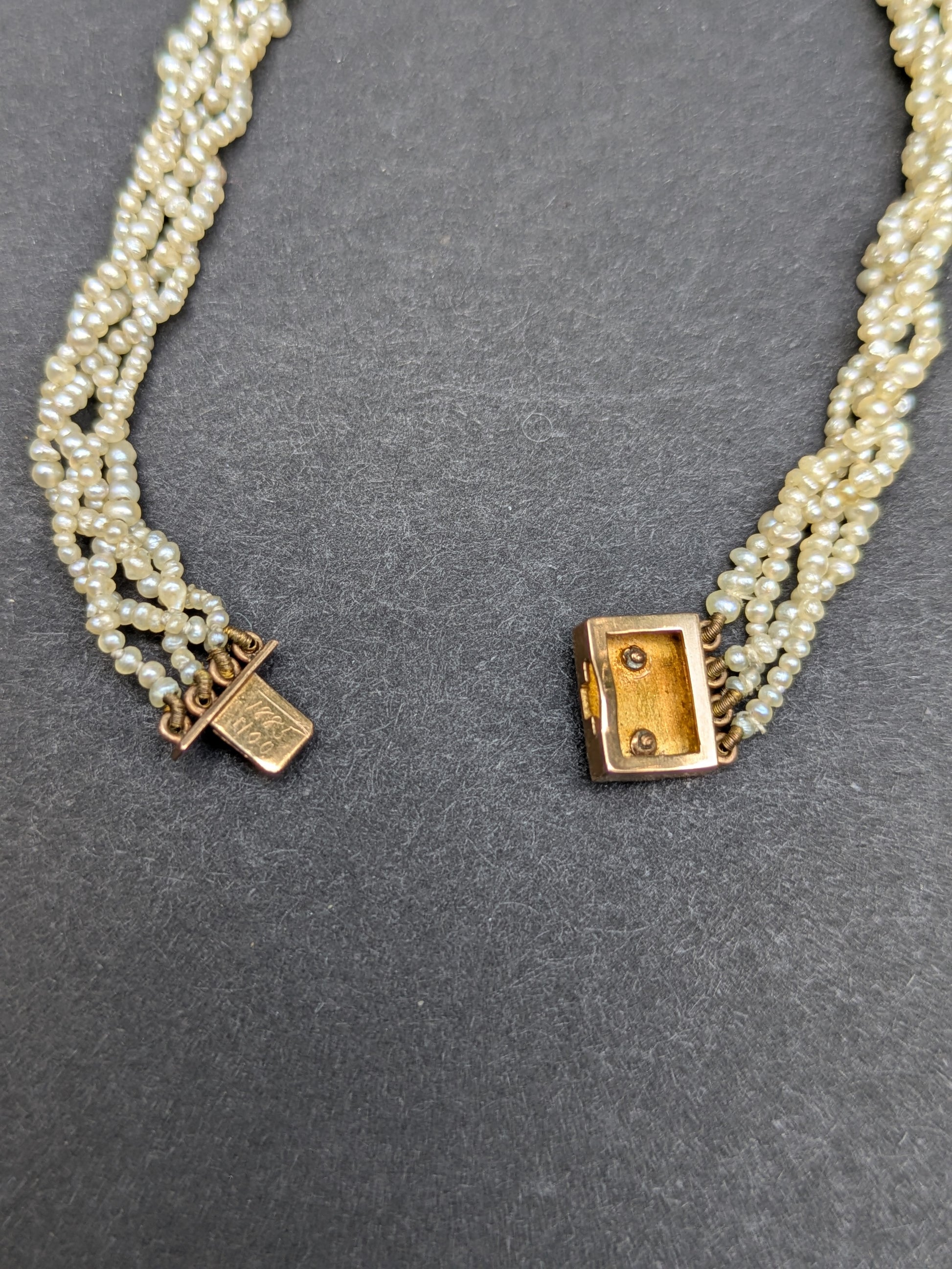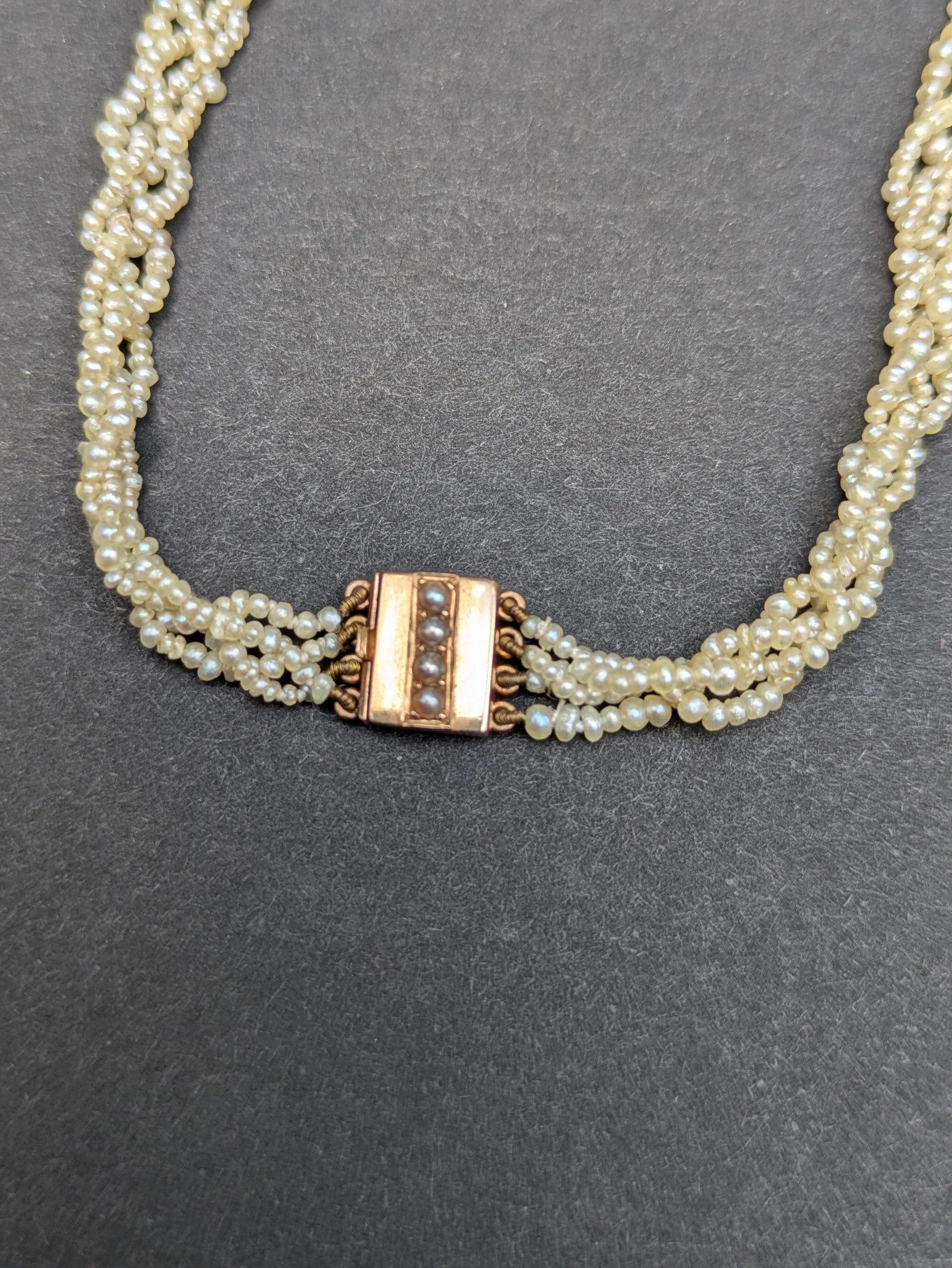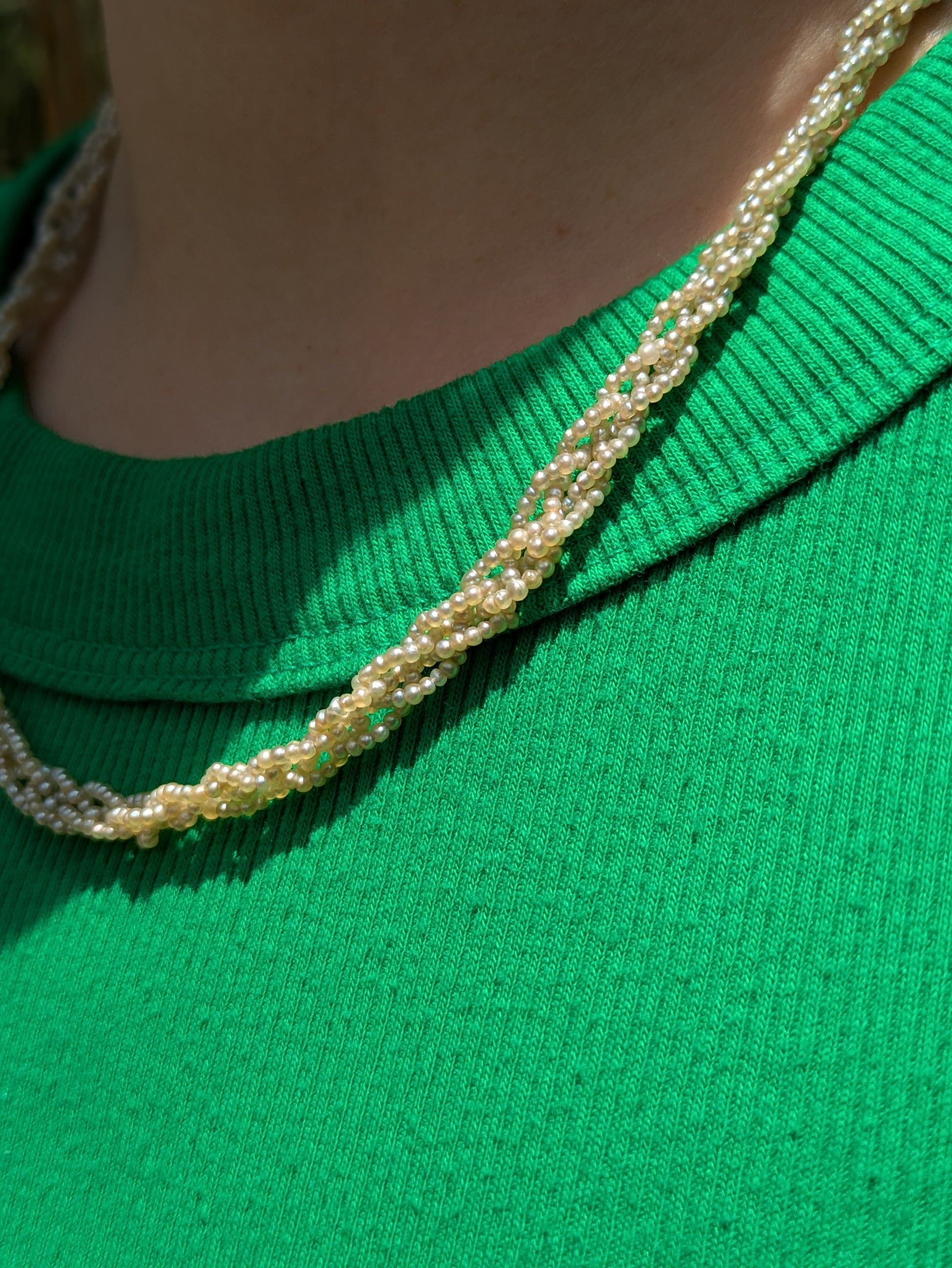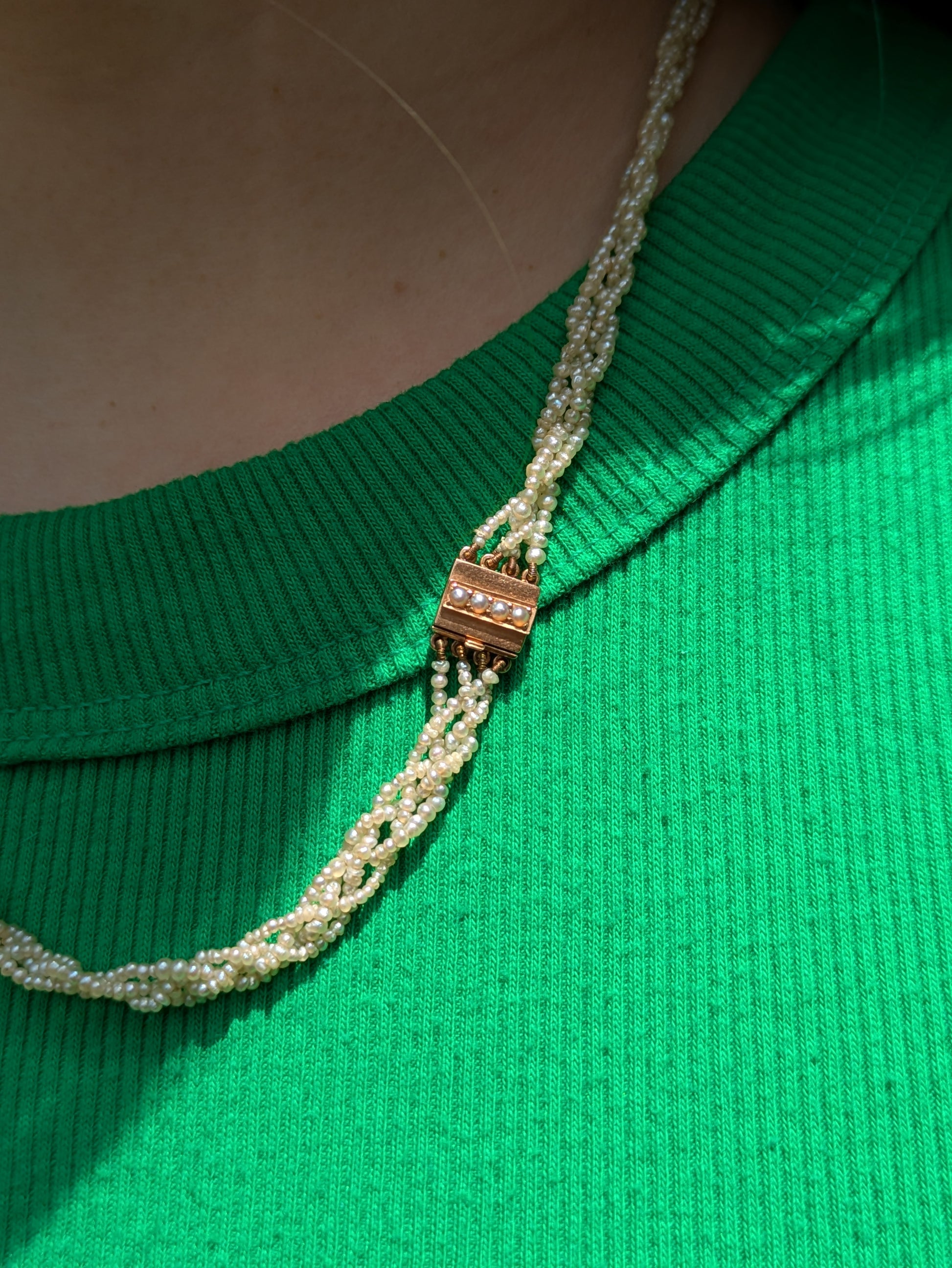 1885 Braided Seed Pearl Necklace with Gold and Pearl Clasp