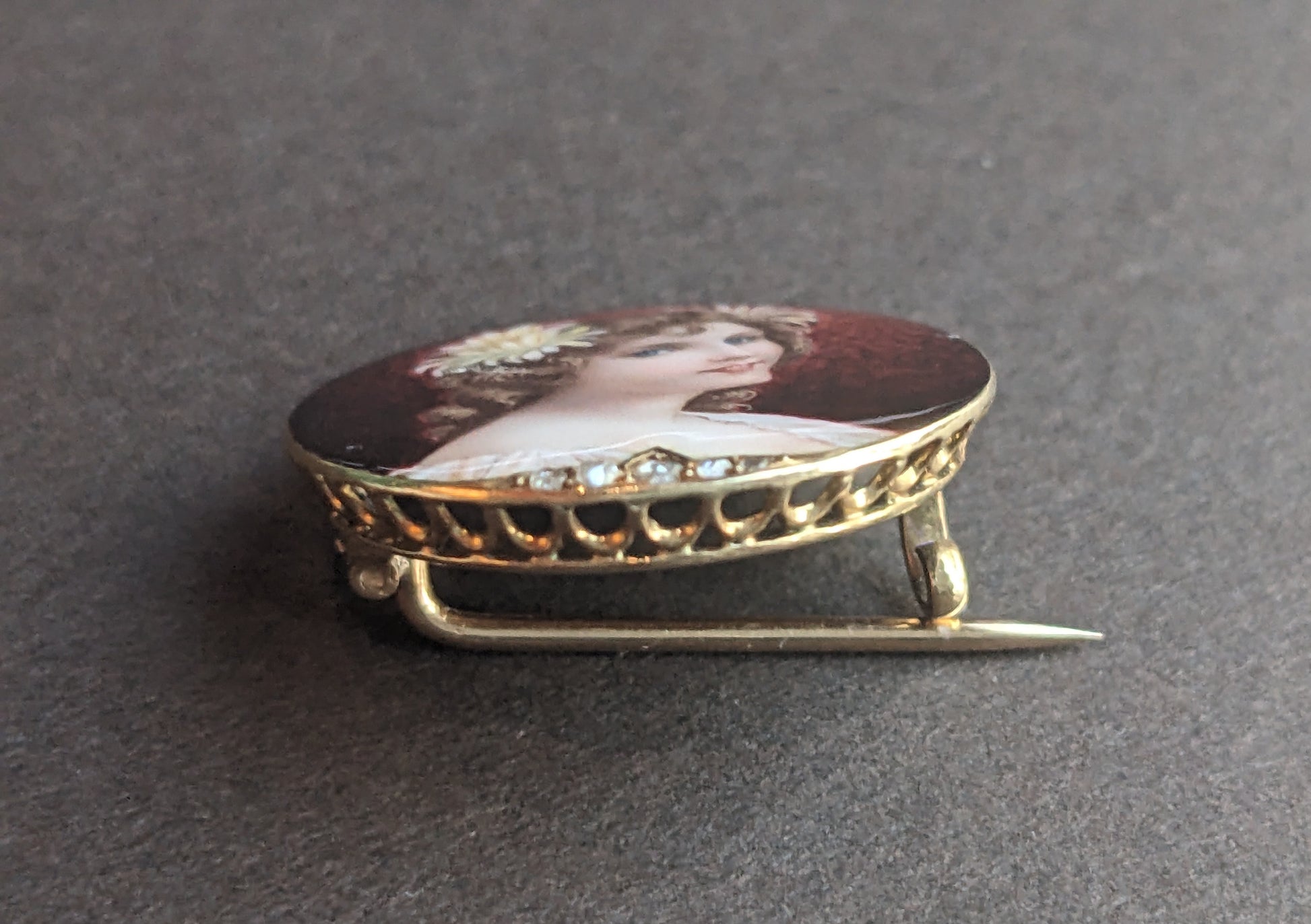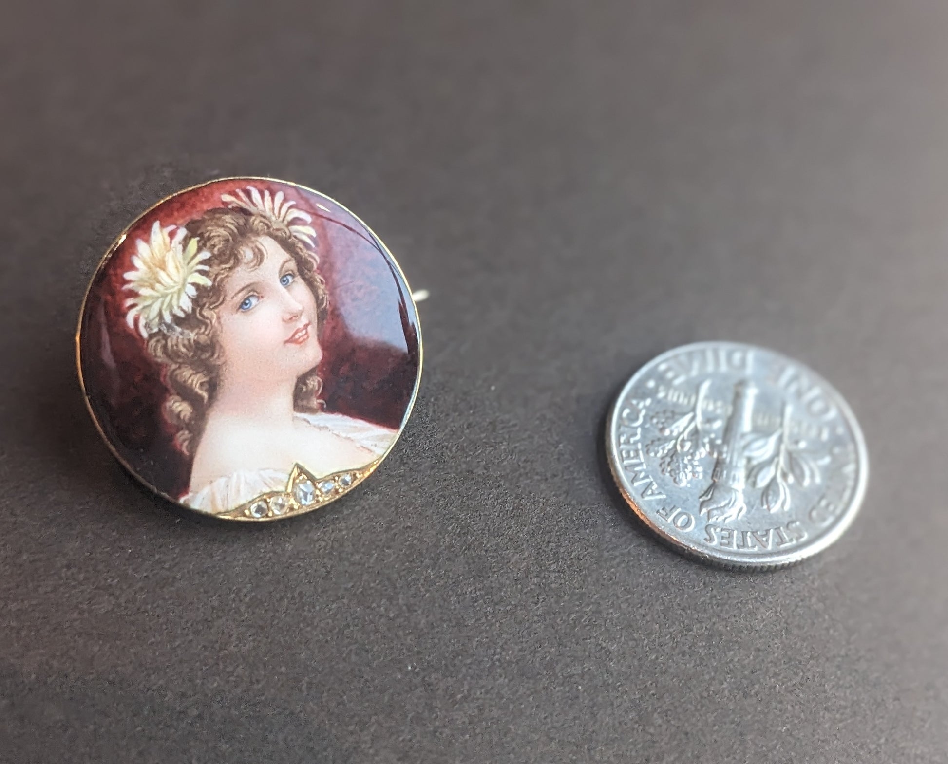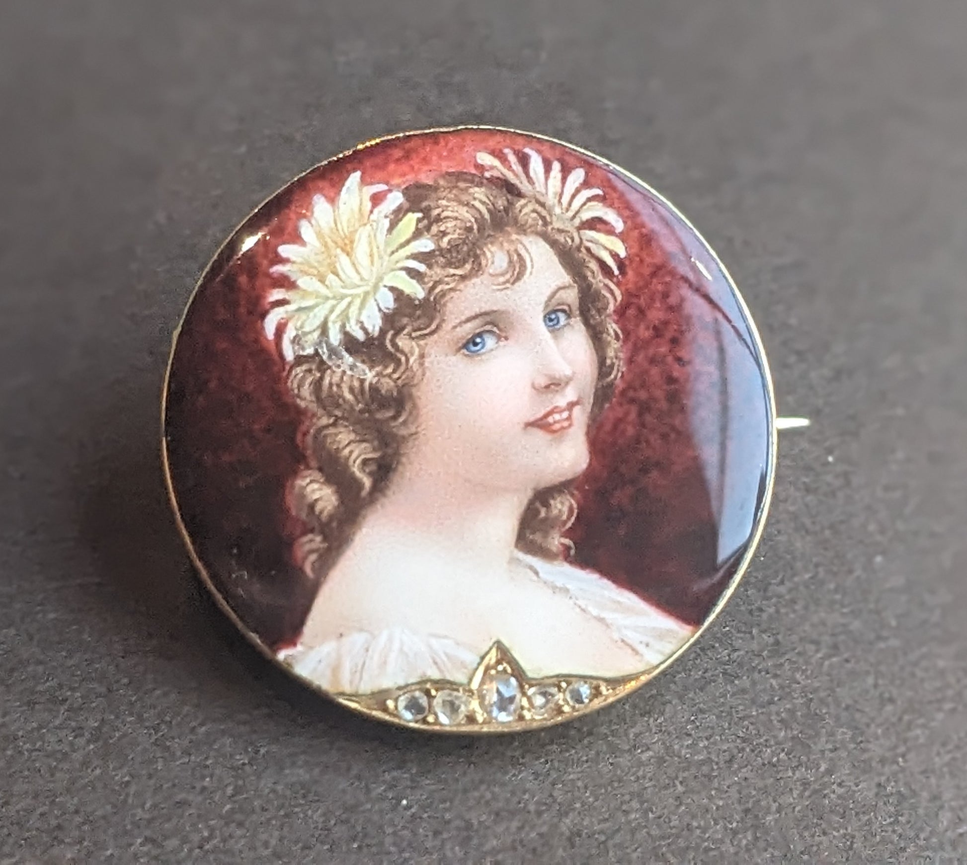 18K Enamel Belle Epoch Portrait Brooch with diamond
