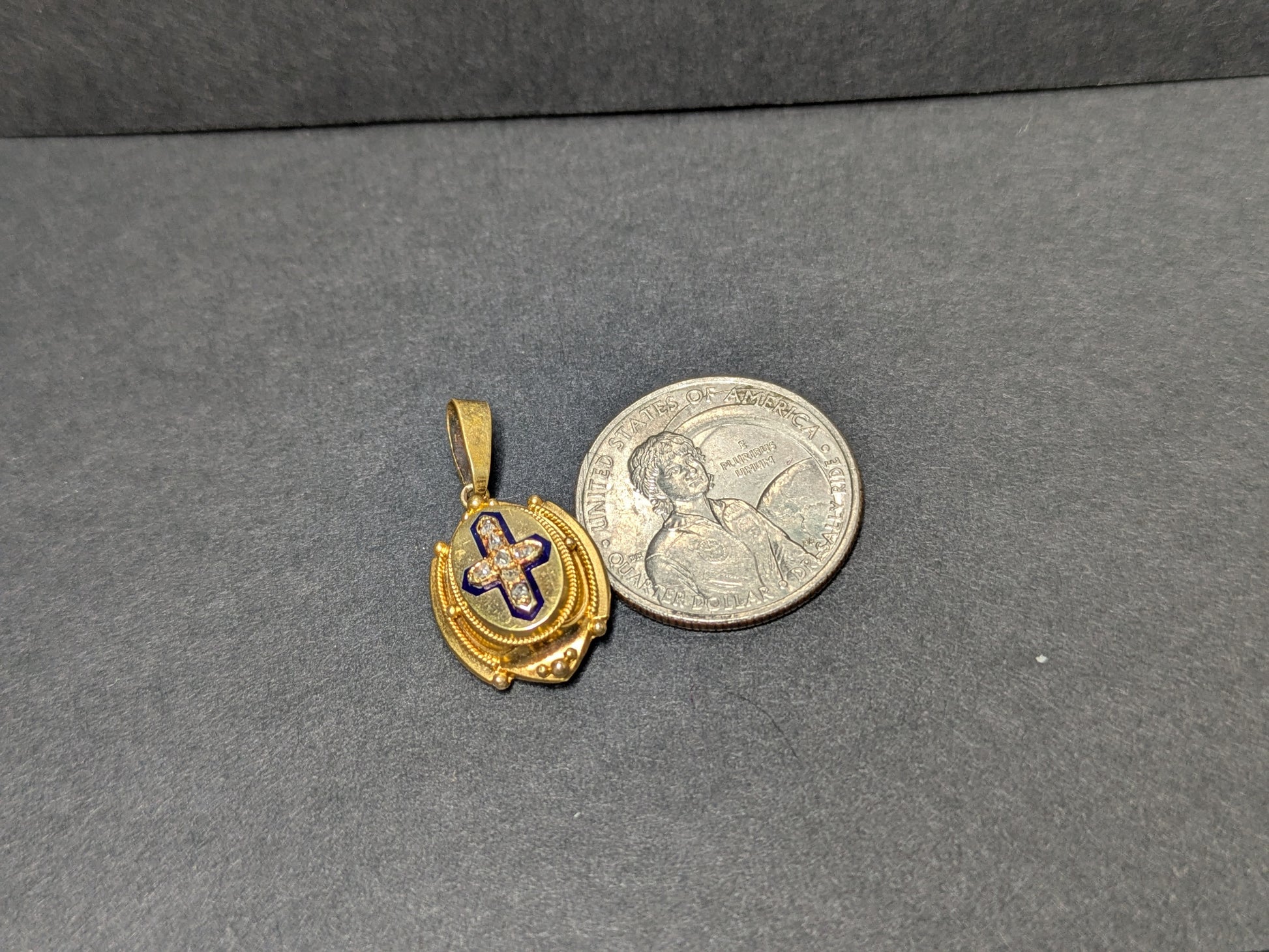 18k French Diamond and Blue Enamel Cross Pendant