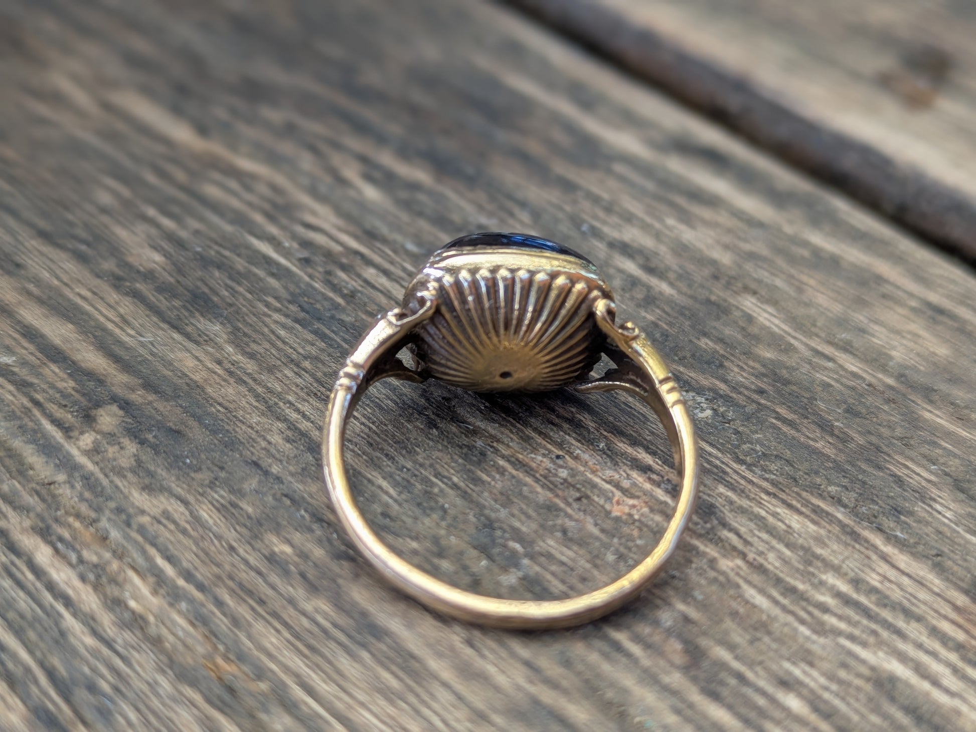 Because of Georgian back, on a ring sizer it is a 4.5, but it fits a 6.5