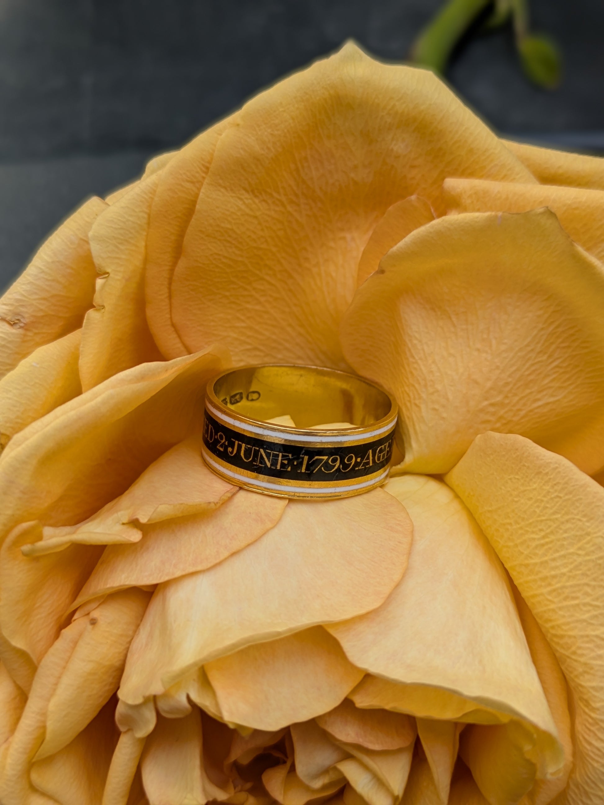 18k Georgian Mourning Band with White and Black Enamel