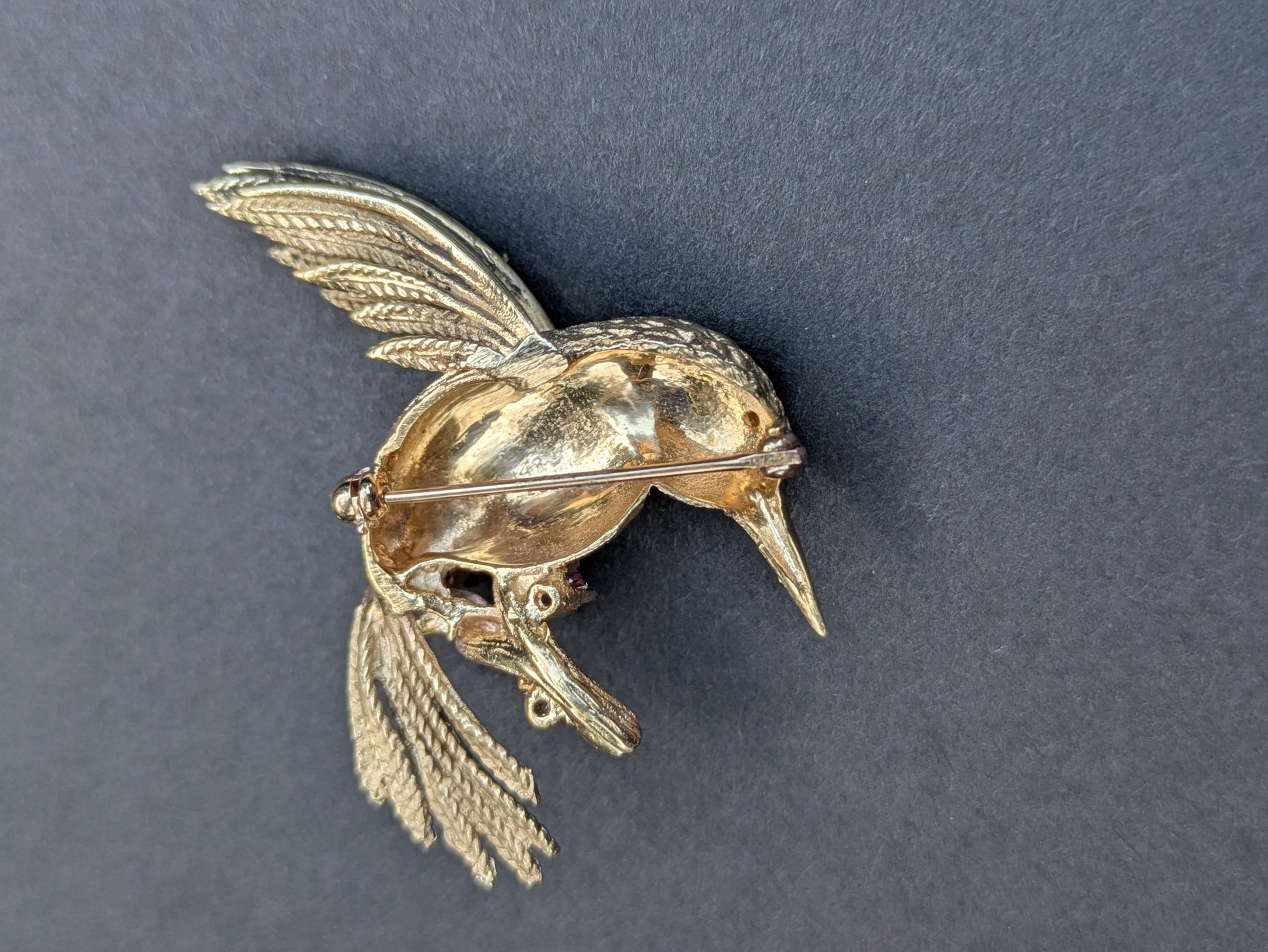18k Hummingbird Brooch with Emerald, Sapphire, and Ruby