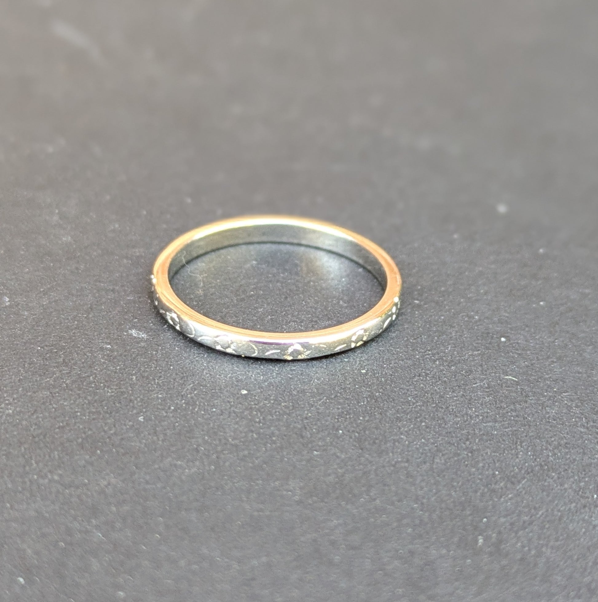 18k Thin White Gold Floral Engraved Band