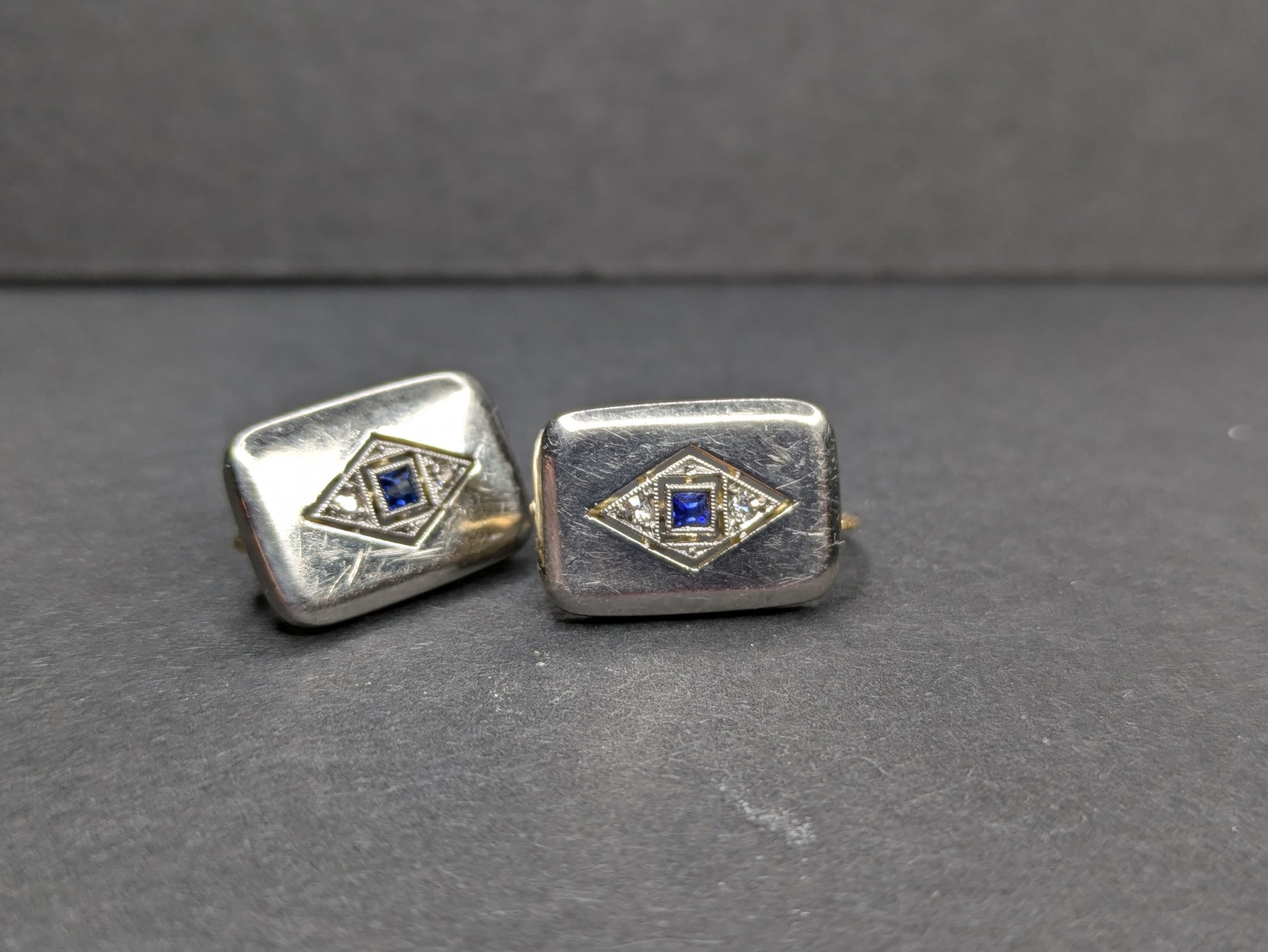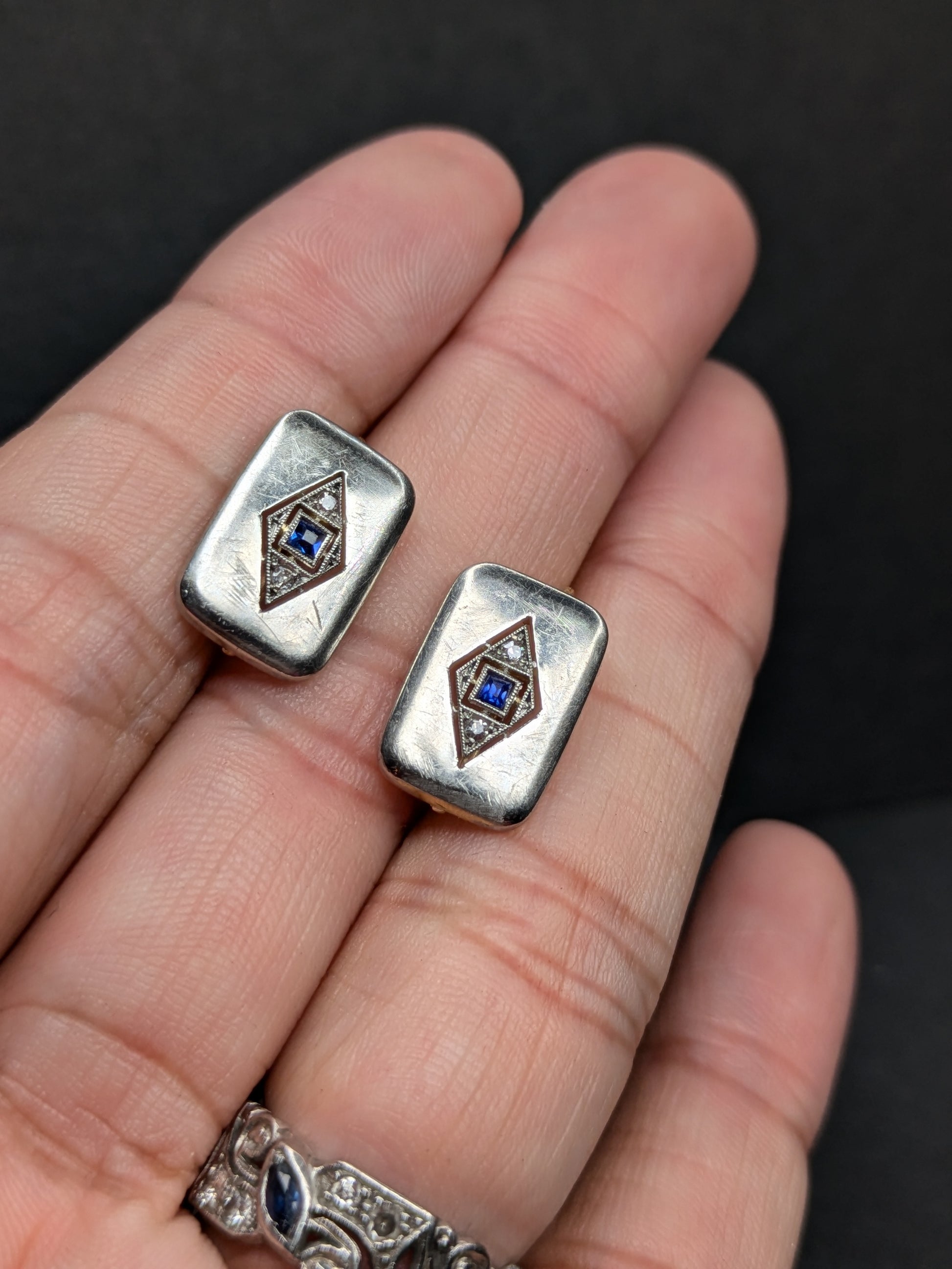 18kt & Platinum Art Deco Sapphire and Diamond Earrings