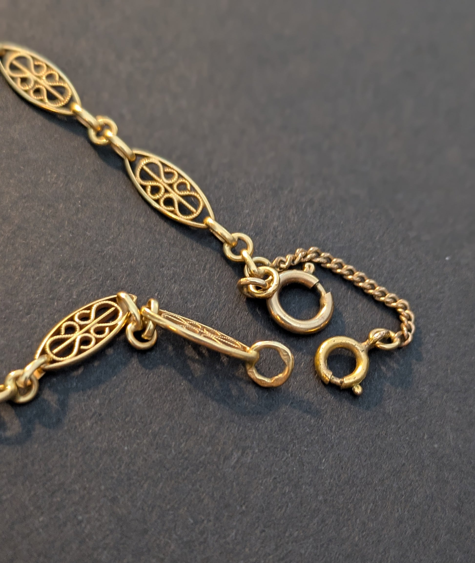 Has original safety chain, French Hallmarks, Length: 23.25 inches 16.67 g