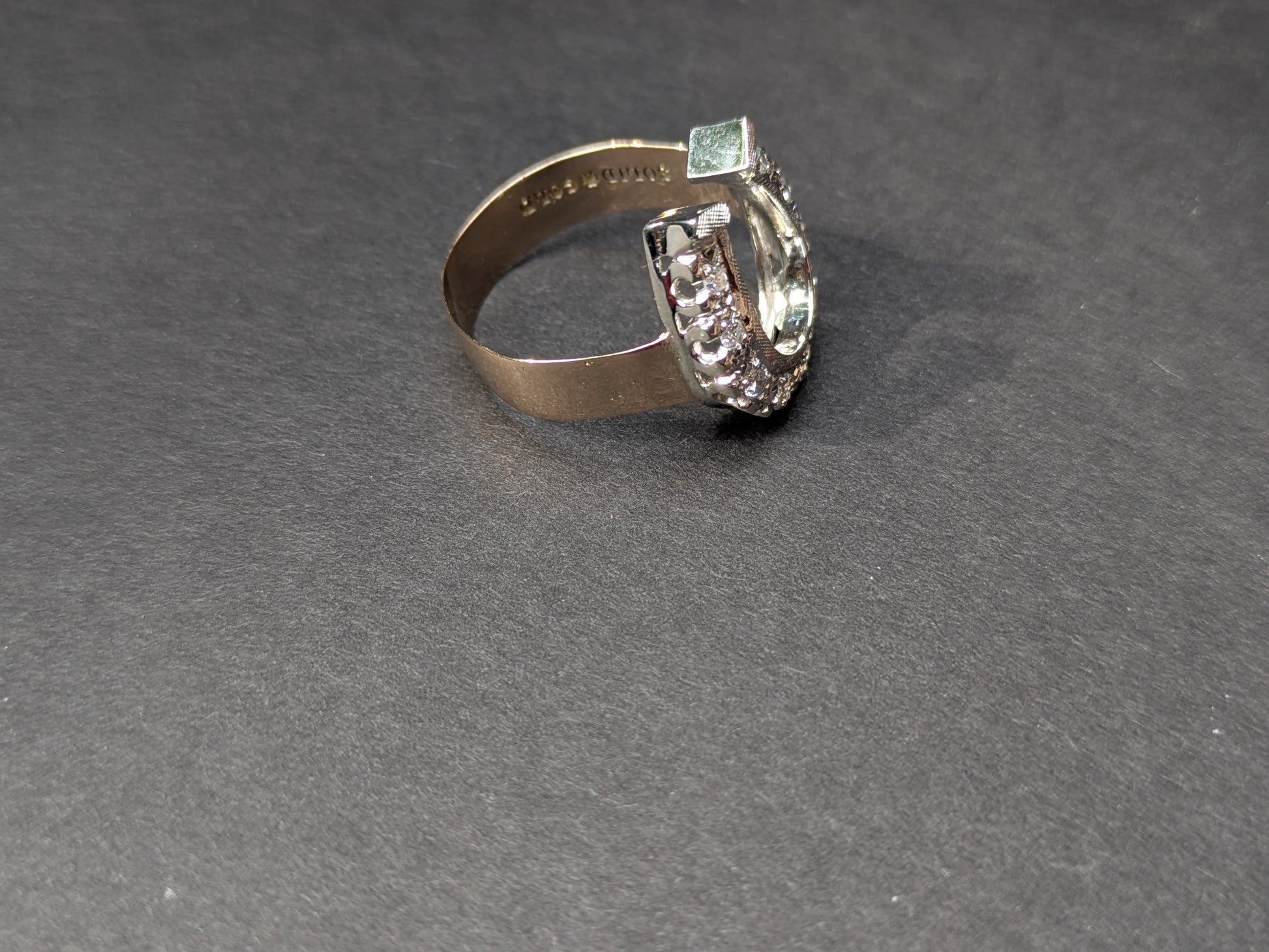 18kt White Gold and OEC Diamond Horseshoe on 14kt Band