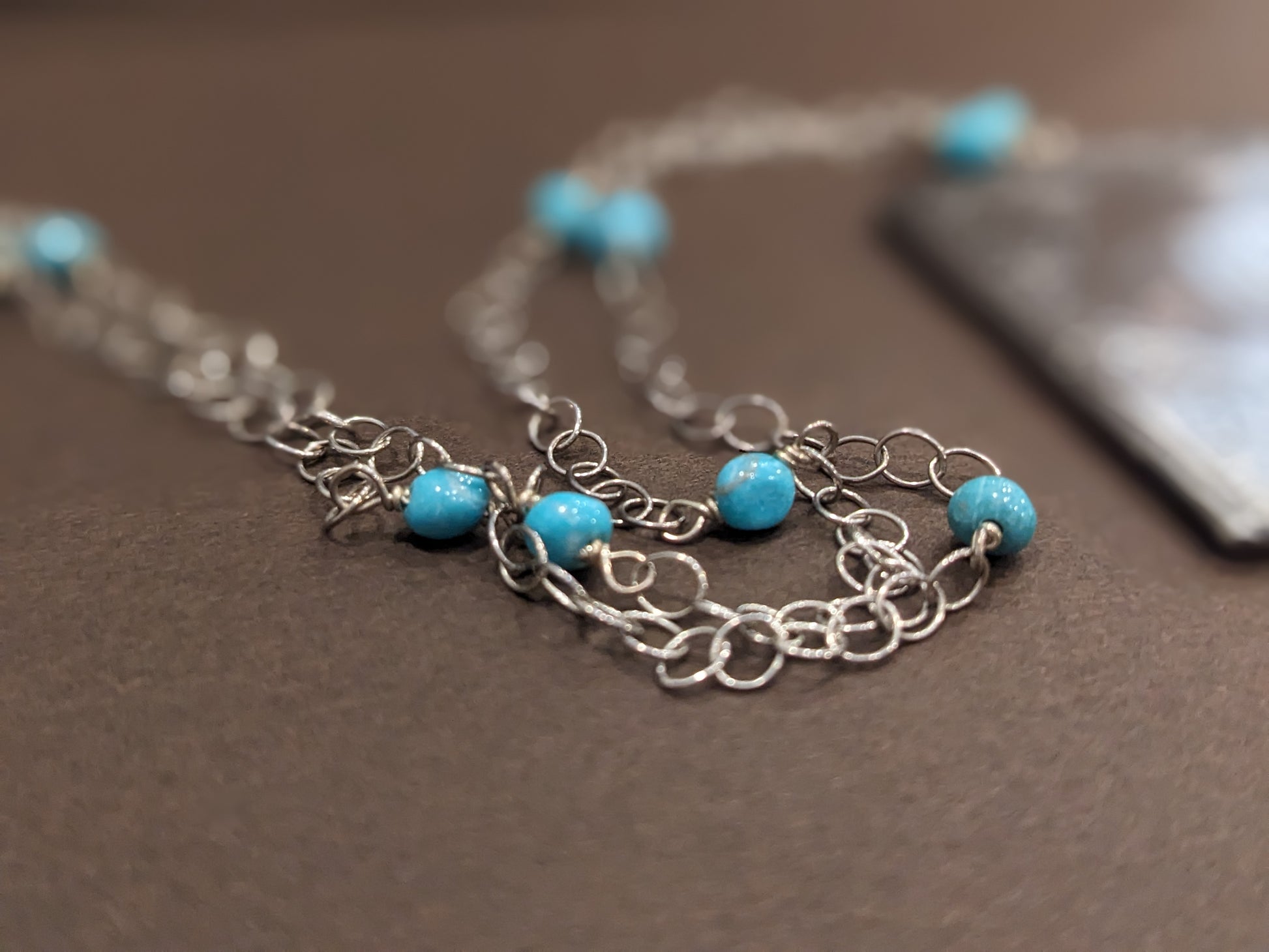 turquoise and sterling 17 inch chain length, 19 inch total length