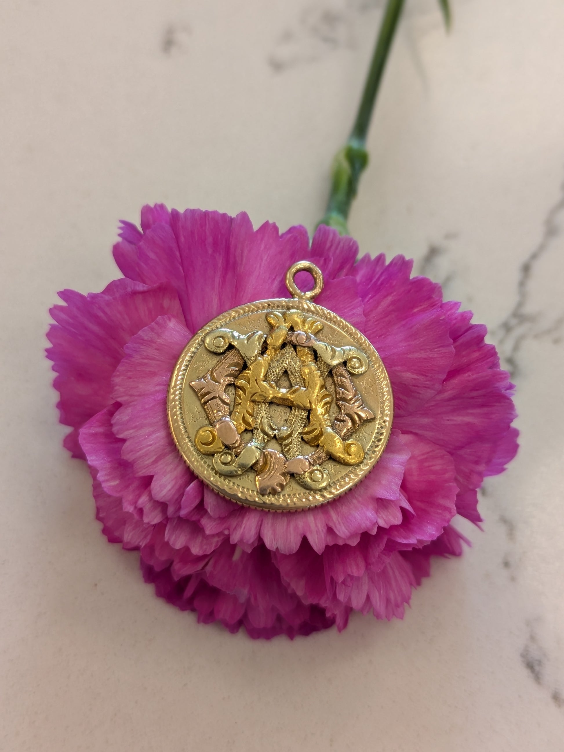 22k Coin and 18k Three Tone Gold Monogram Love Token