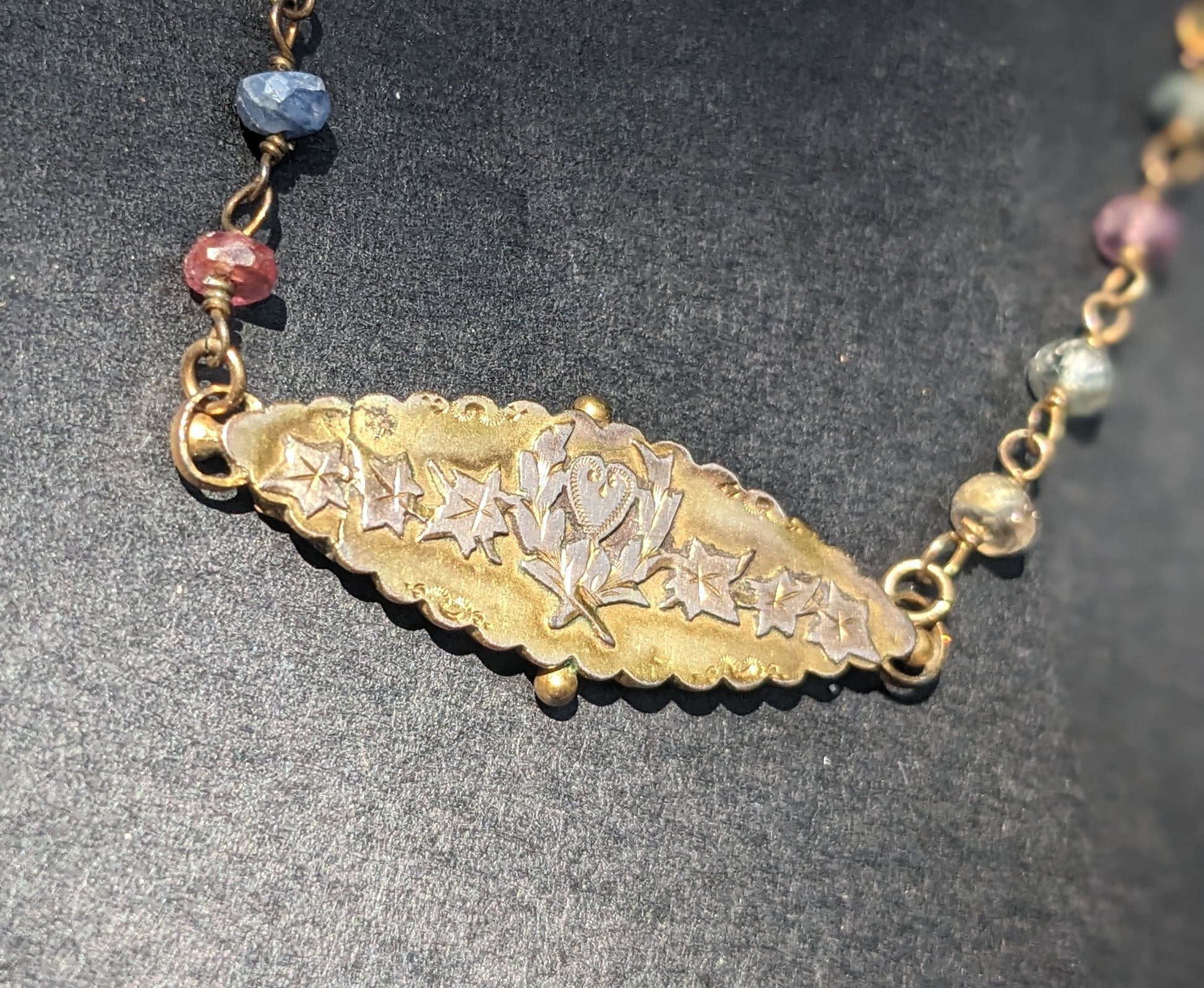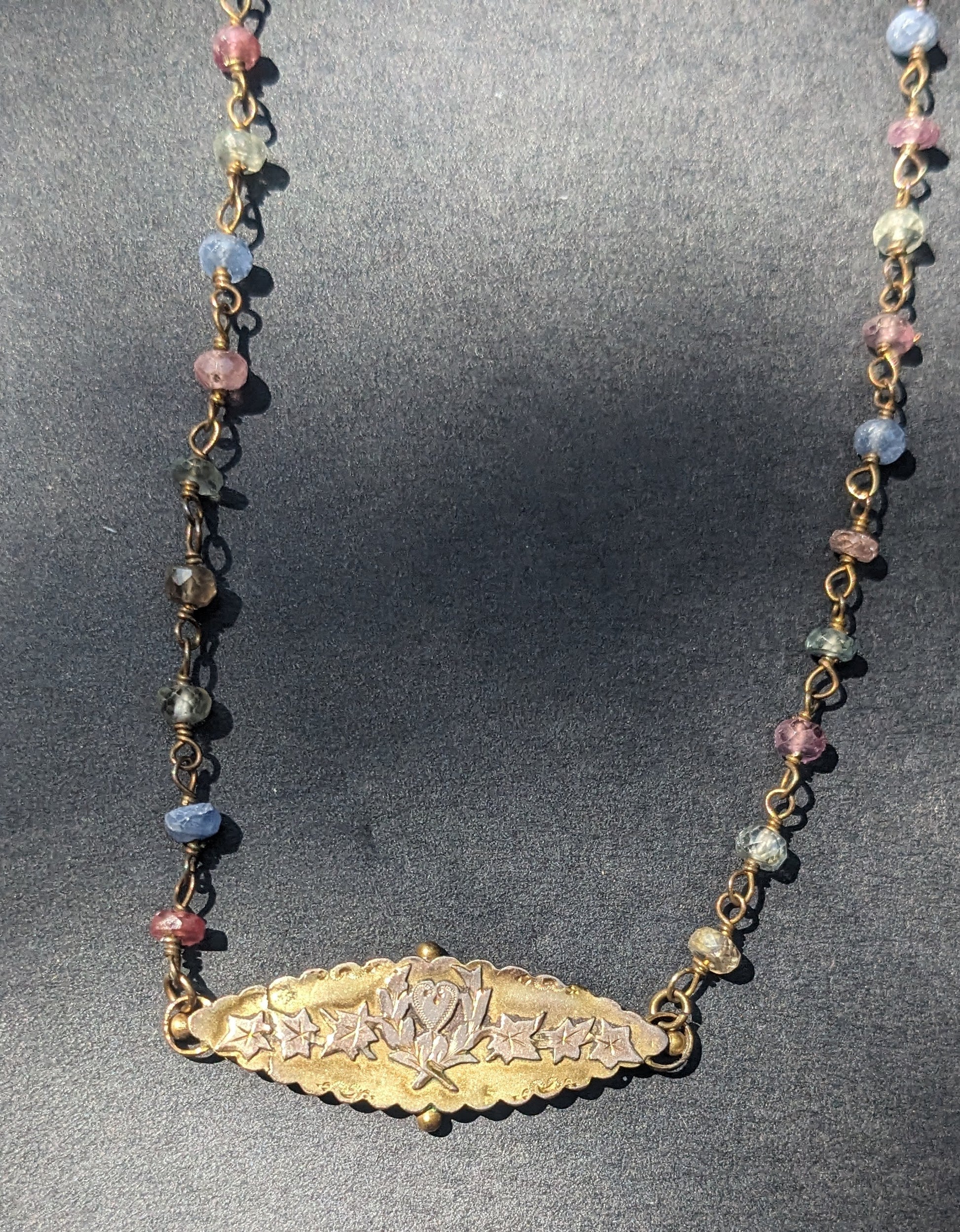 9ct Victorian Sweetheart Brooch on Multi-color Sapphire Chain