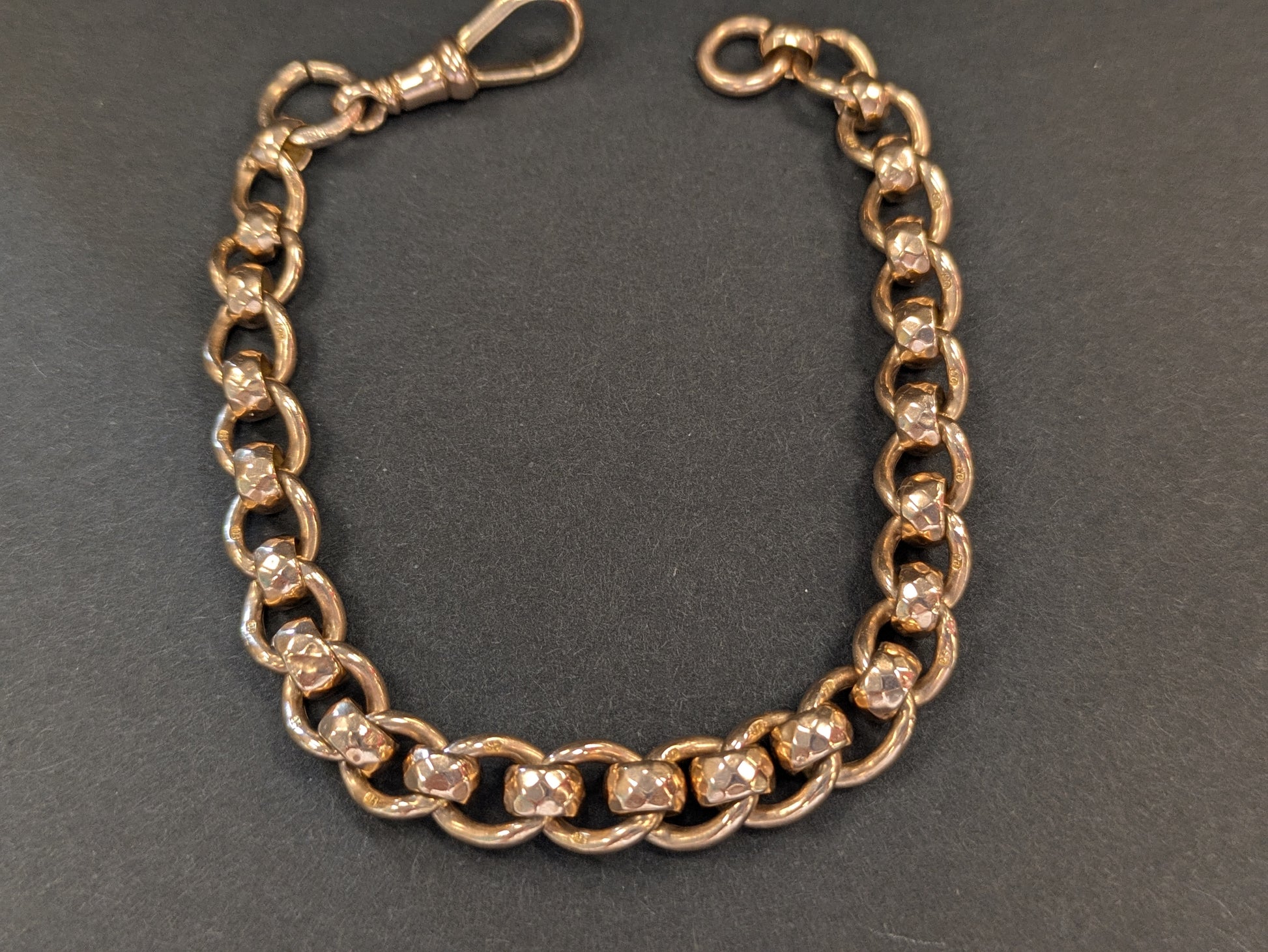 9k English Beveled Link Bracelet with Dog Clip