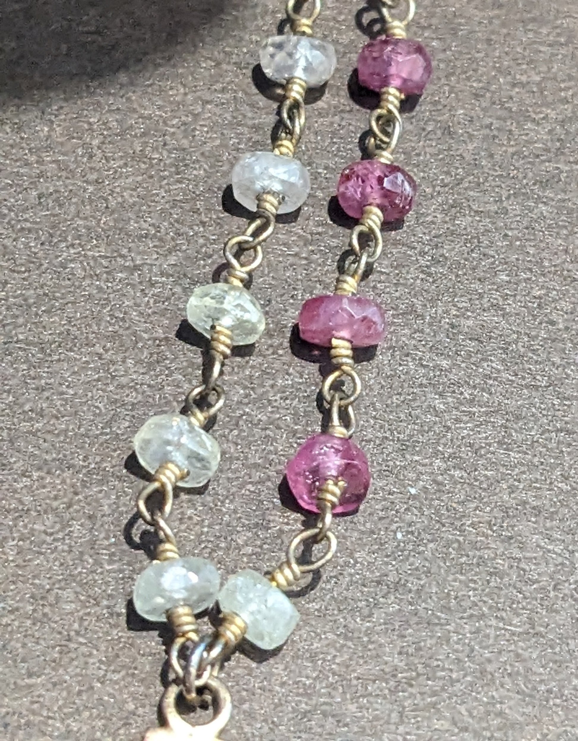 9k Hand Engraved 1900s Cross on Multi Colored Sapphire Chain