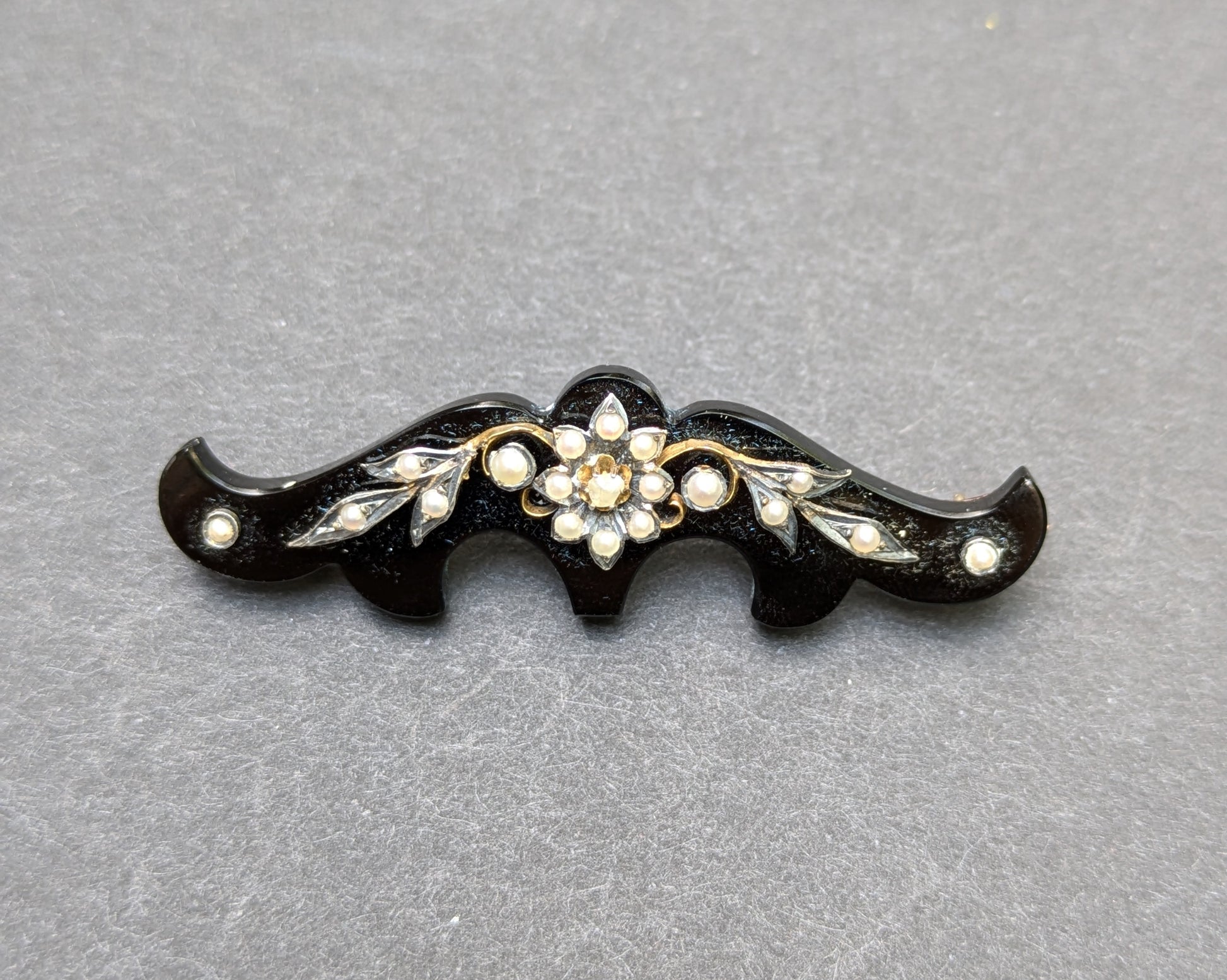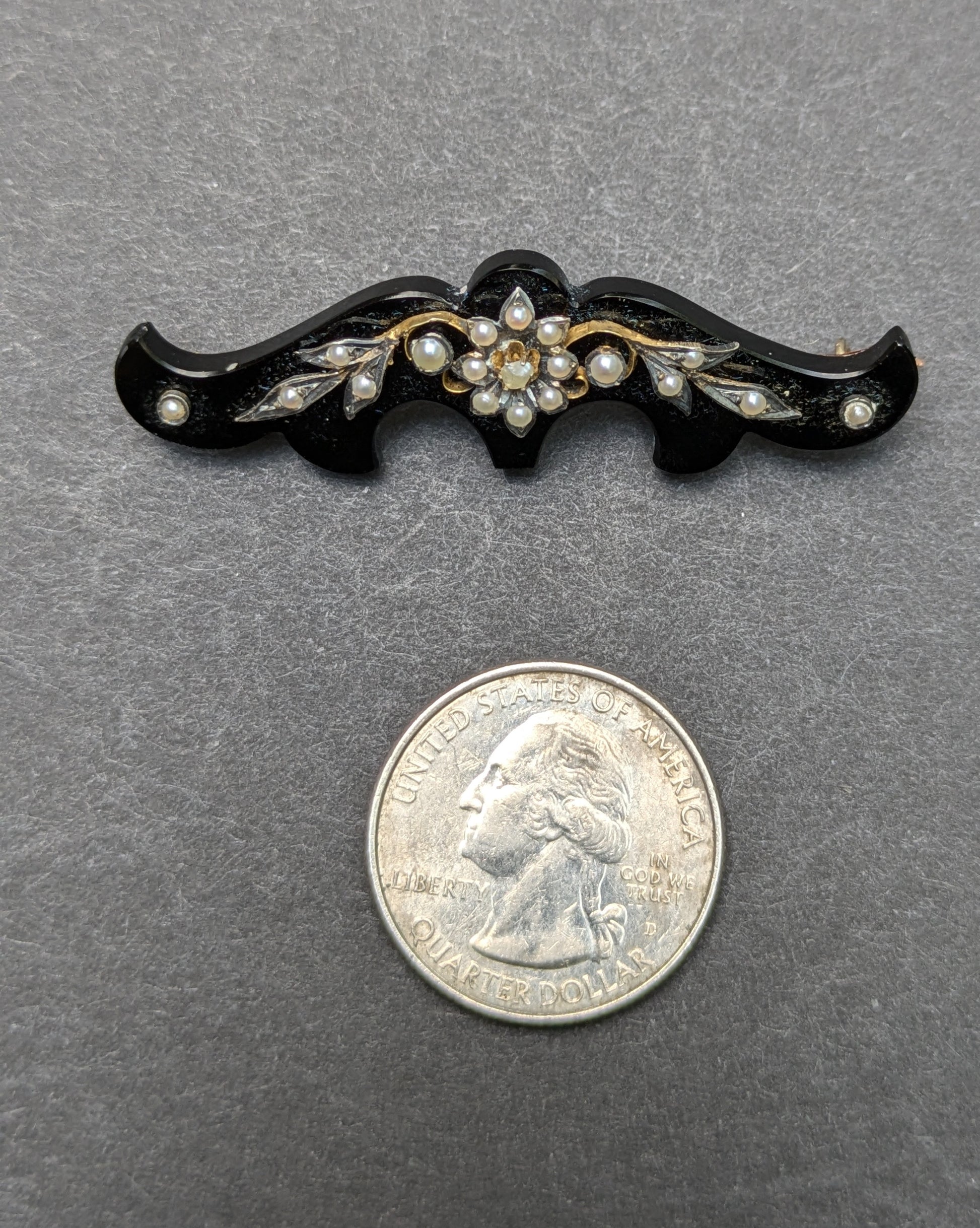American Mourning Brooch 14k Jet Seed Pearl