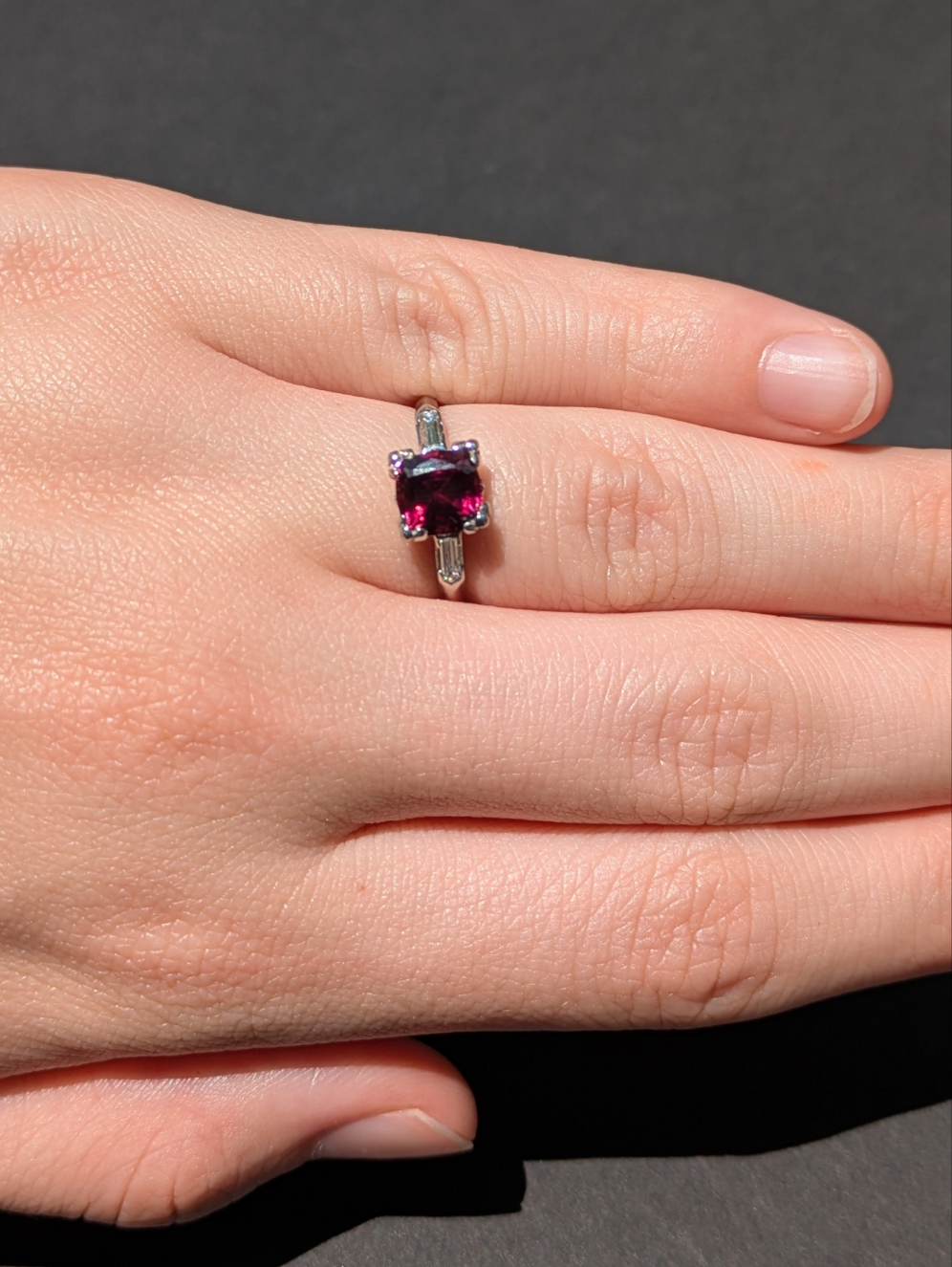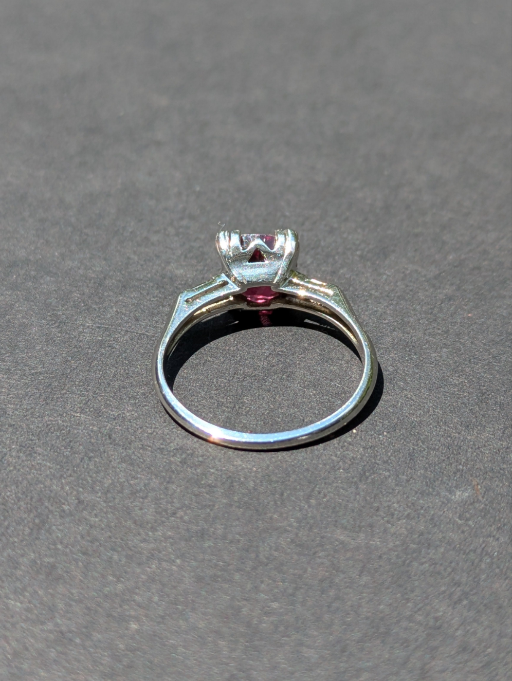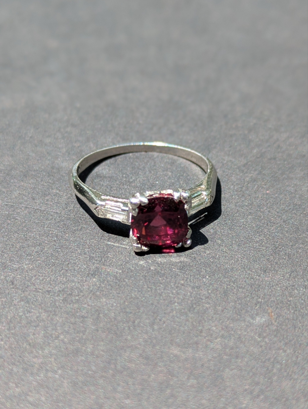 Art Deco Platinum split prong mounting with Rhodolite Garnet ring