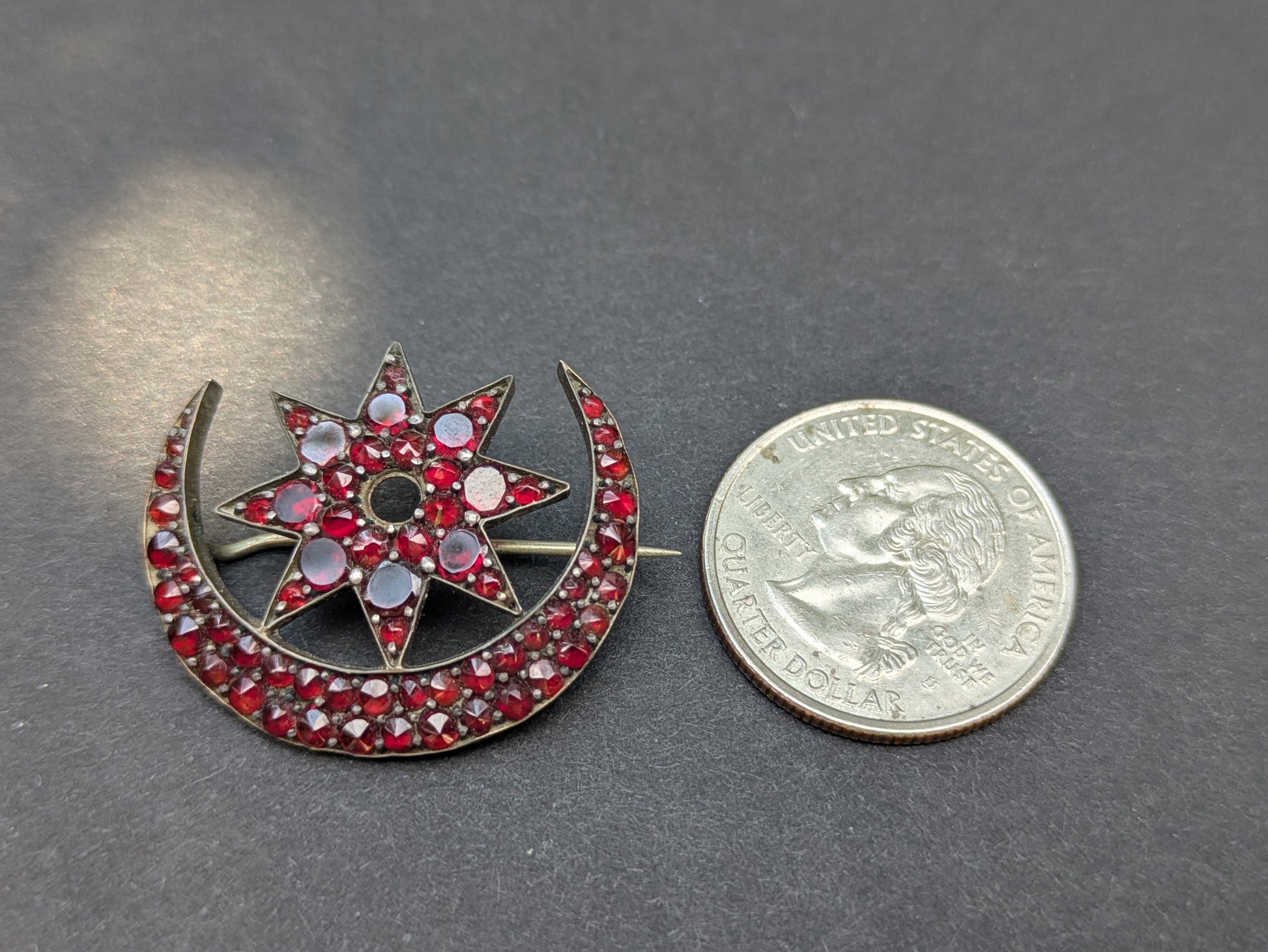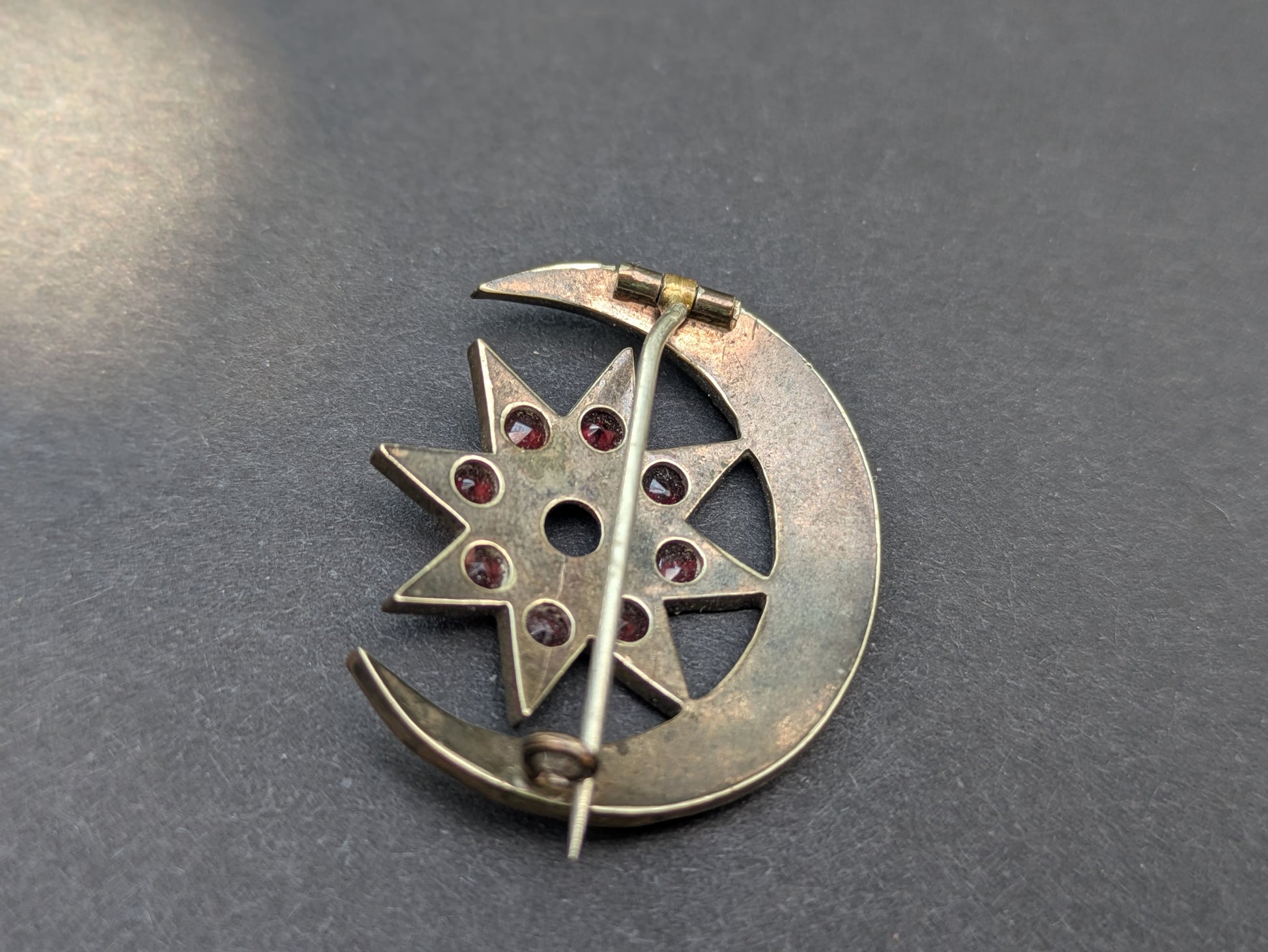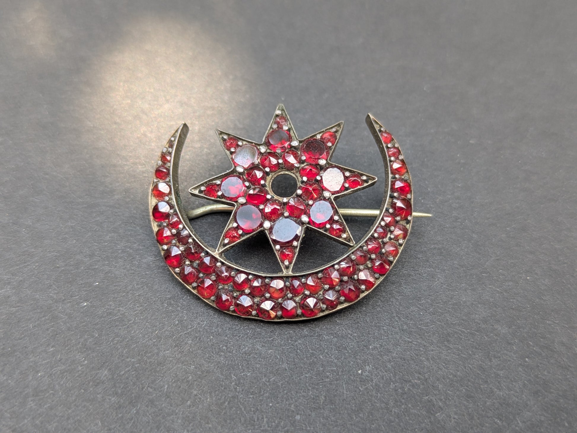 Bohemian Garnet Crescent and Star Brooch