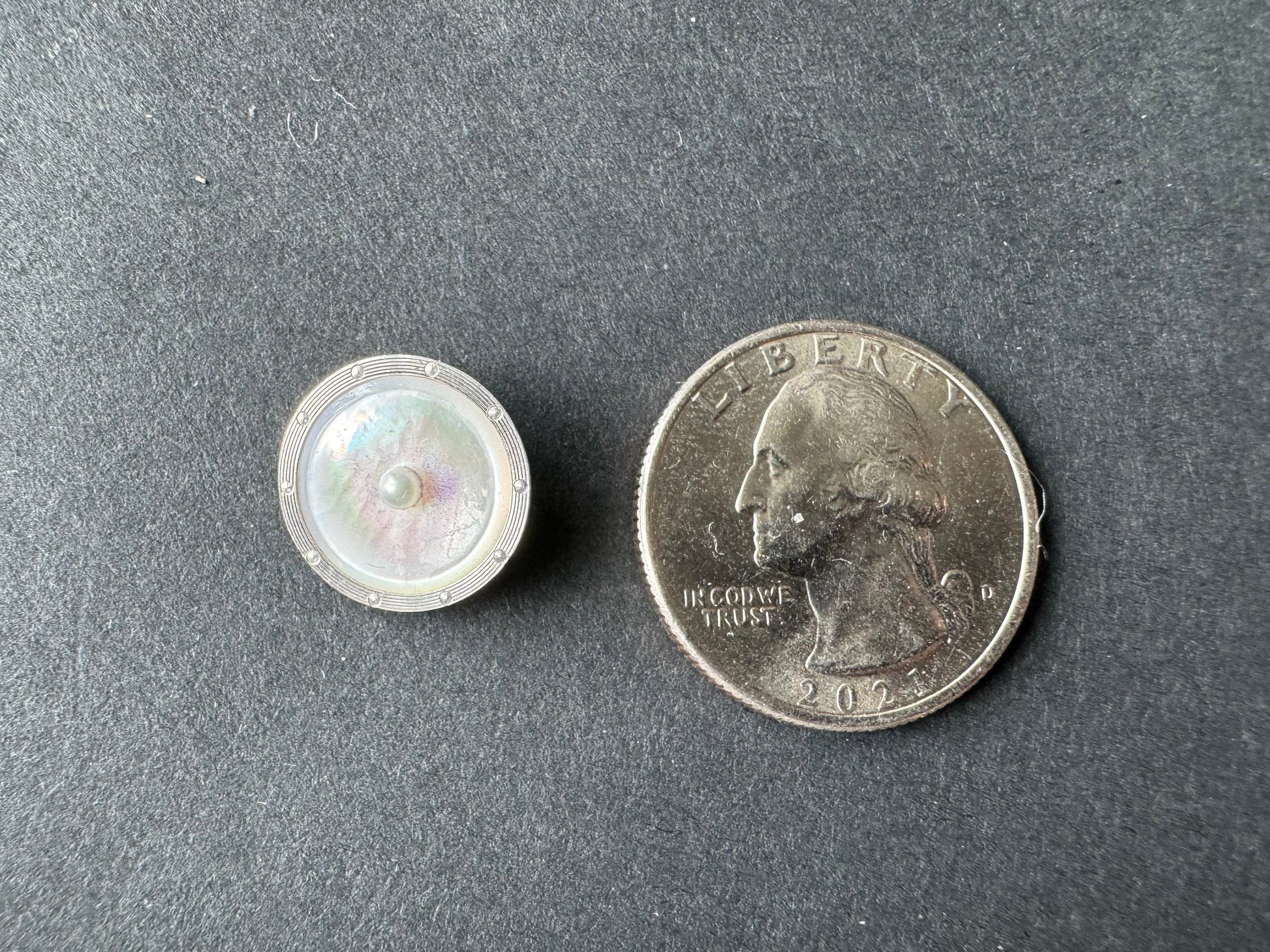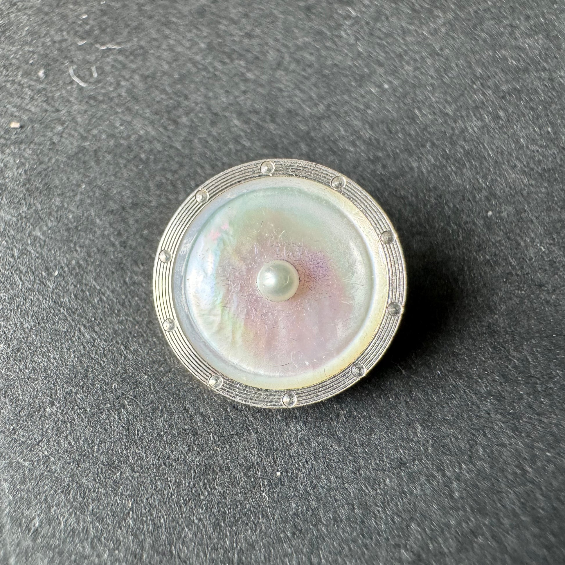 Button Size Mother of Pearl Charm with Pearl 14k