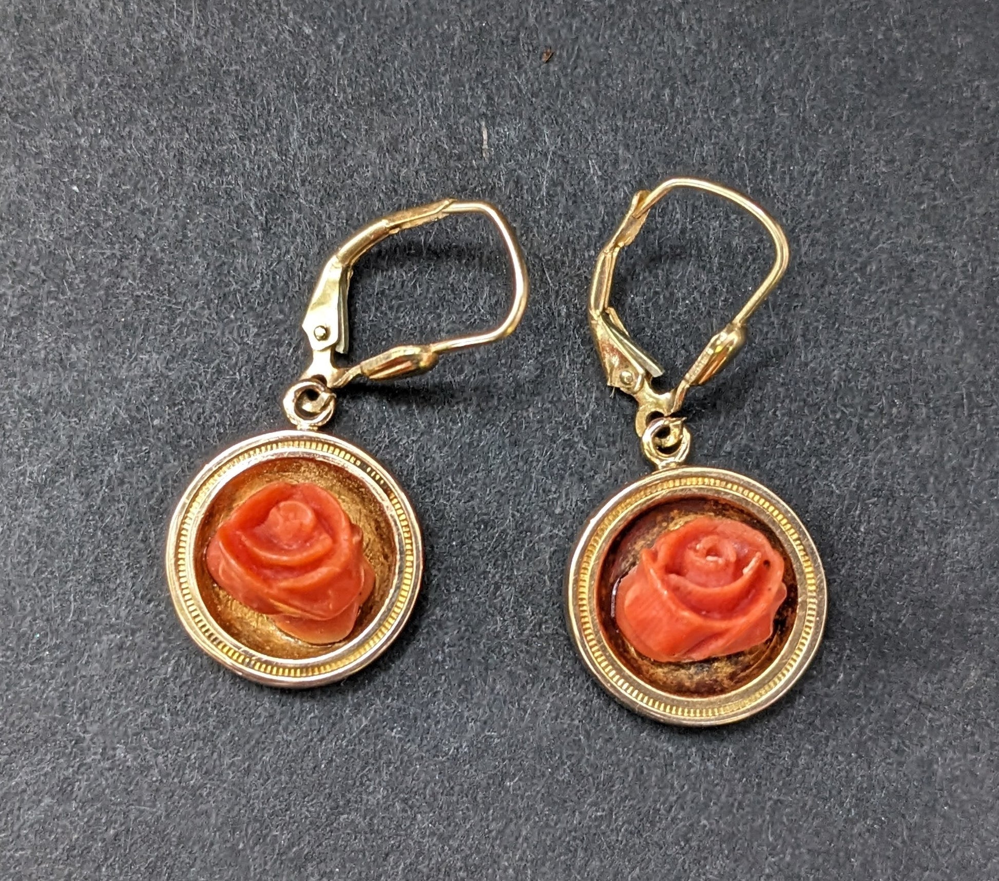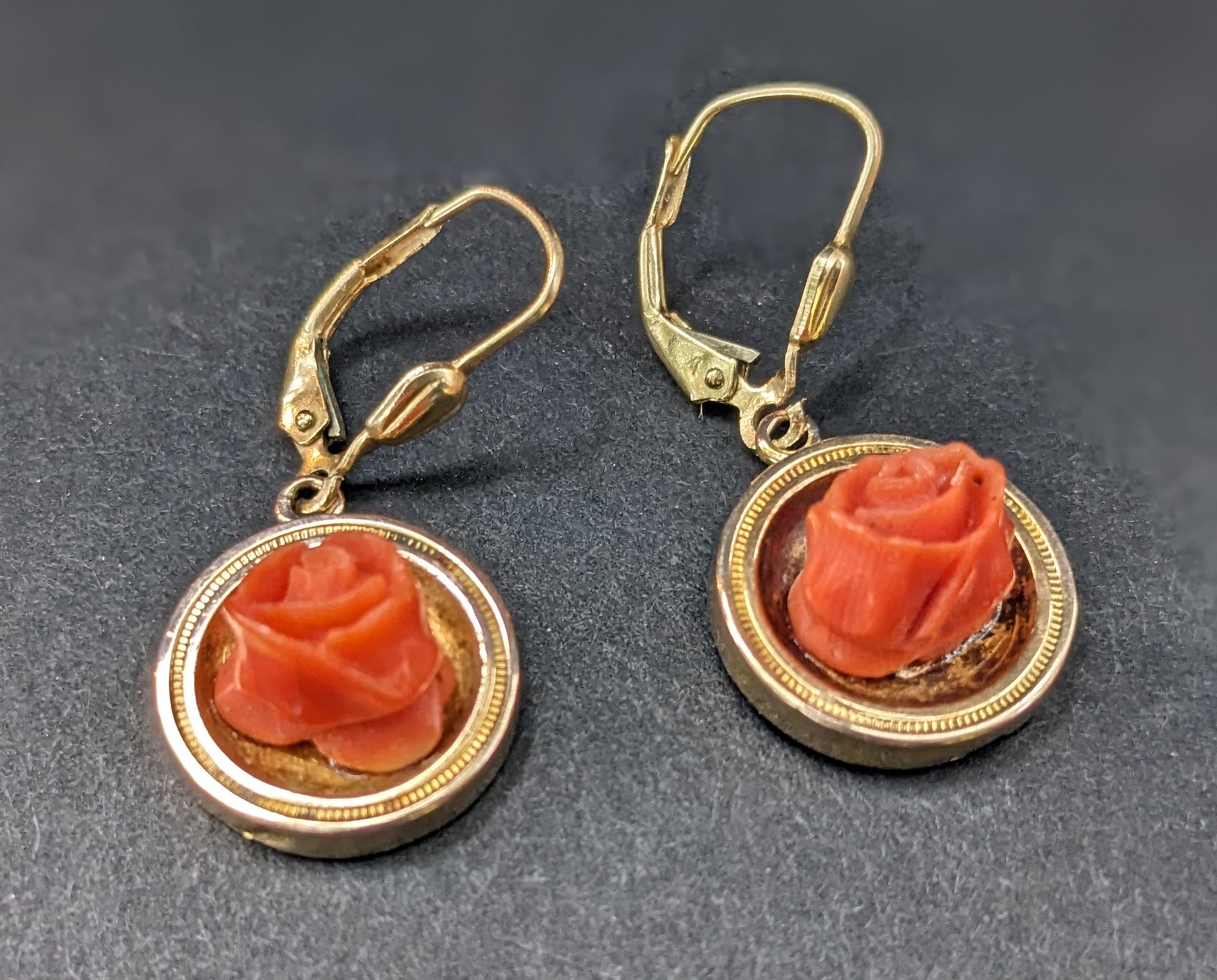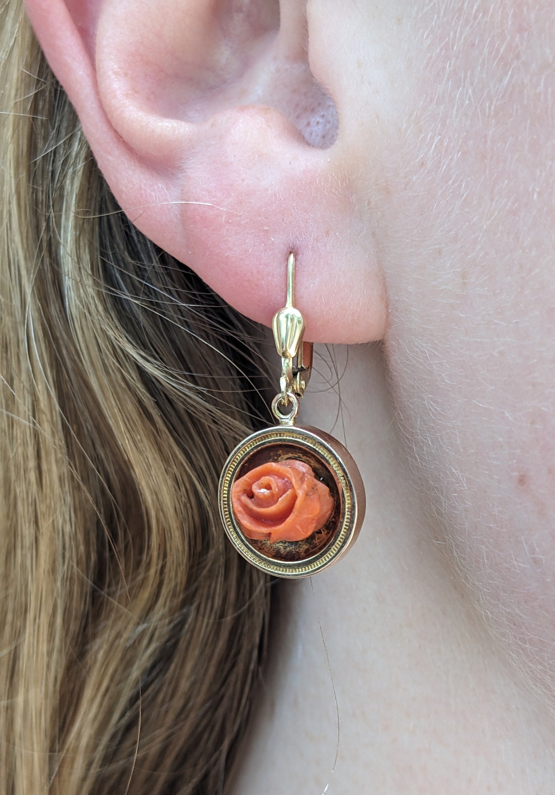 Carved Coral Rose Victorian Earrings