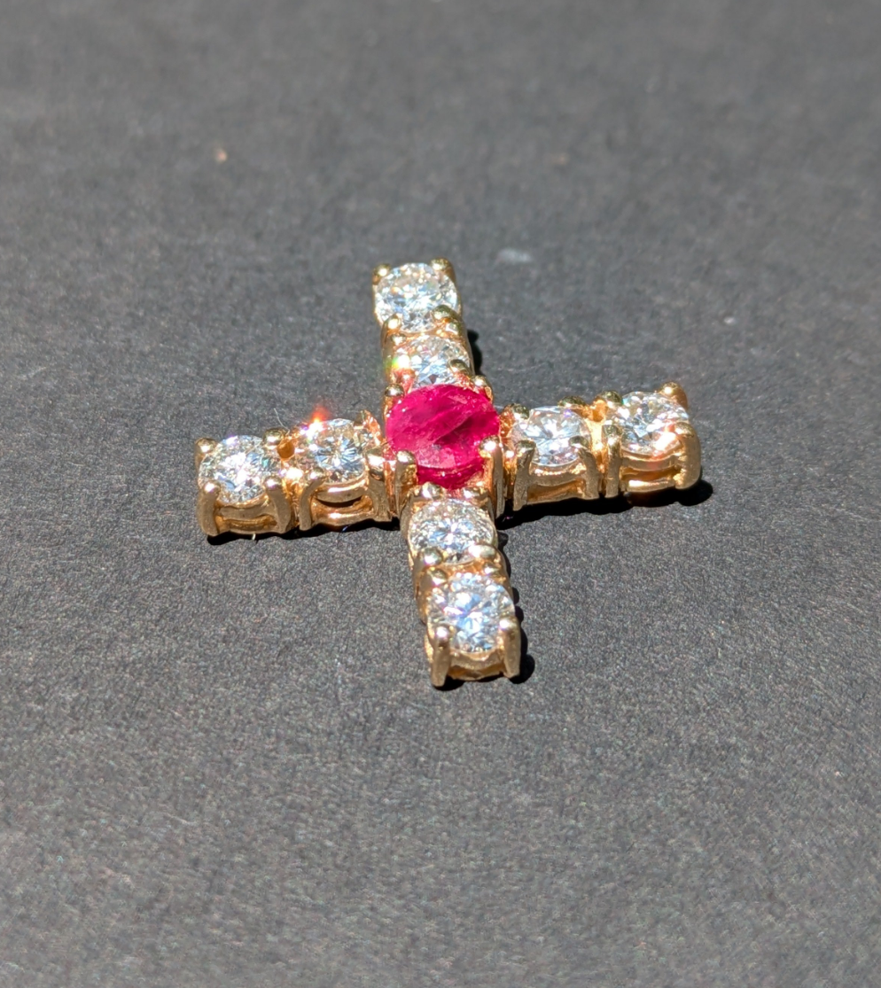 Diamond and Ruby 14kt Cross or Plus Symbol
