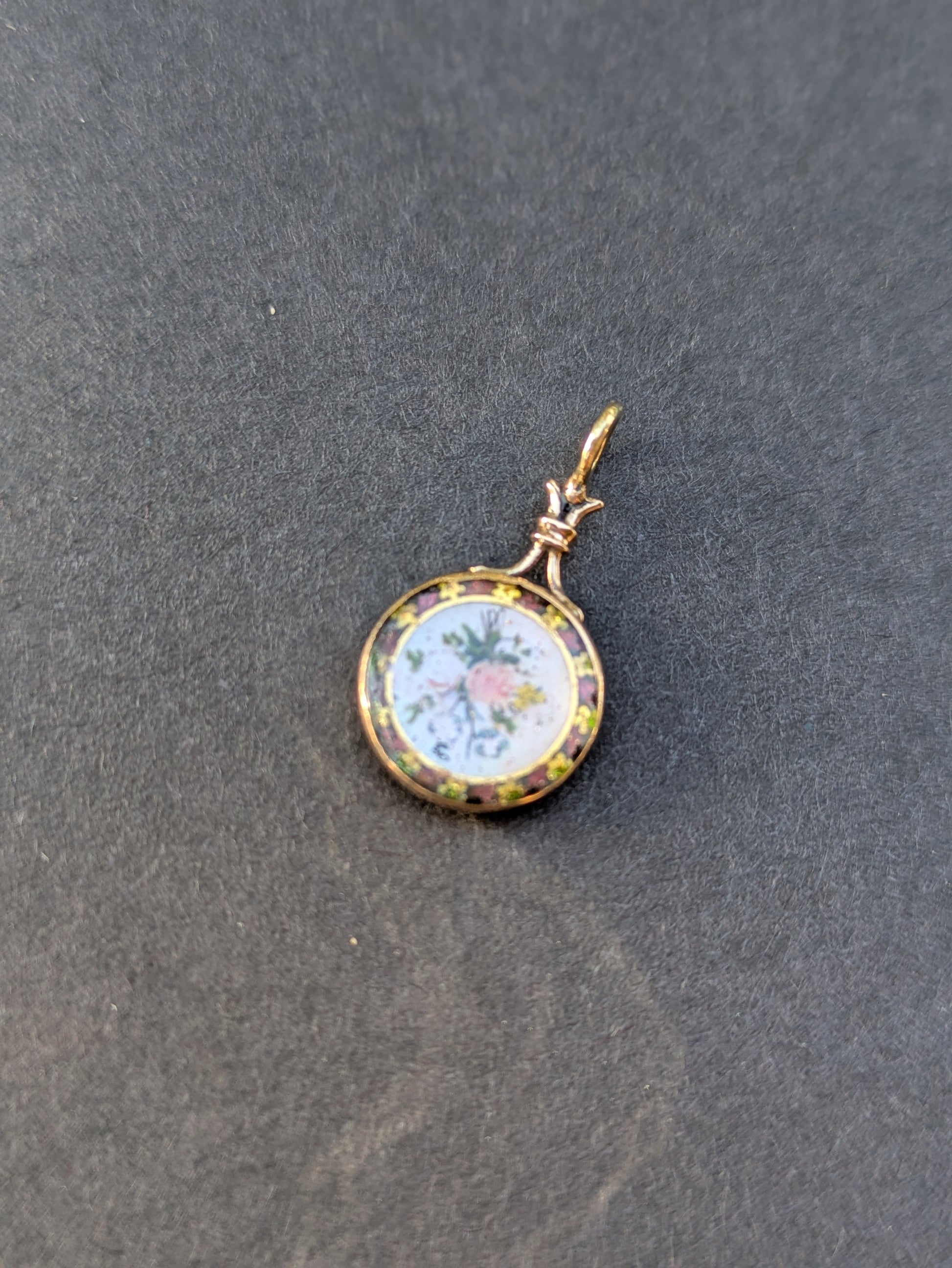 Early Victorian/Late Georgian Enamel and Stuart Crystal Rose Pendant