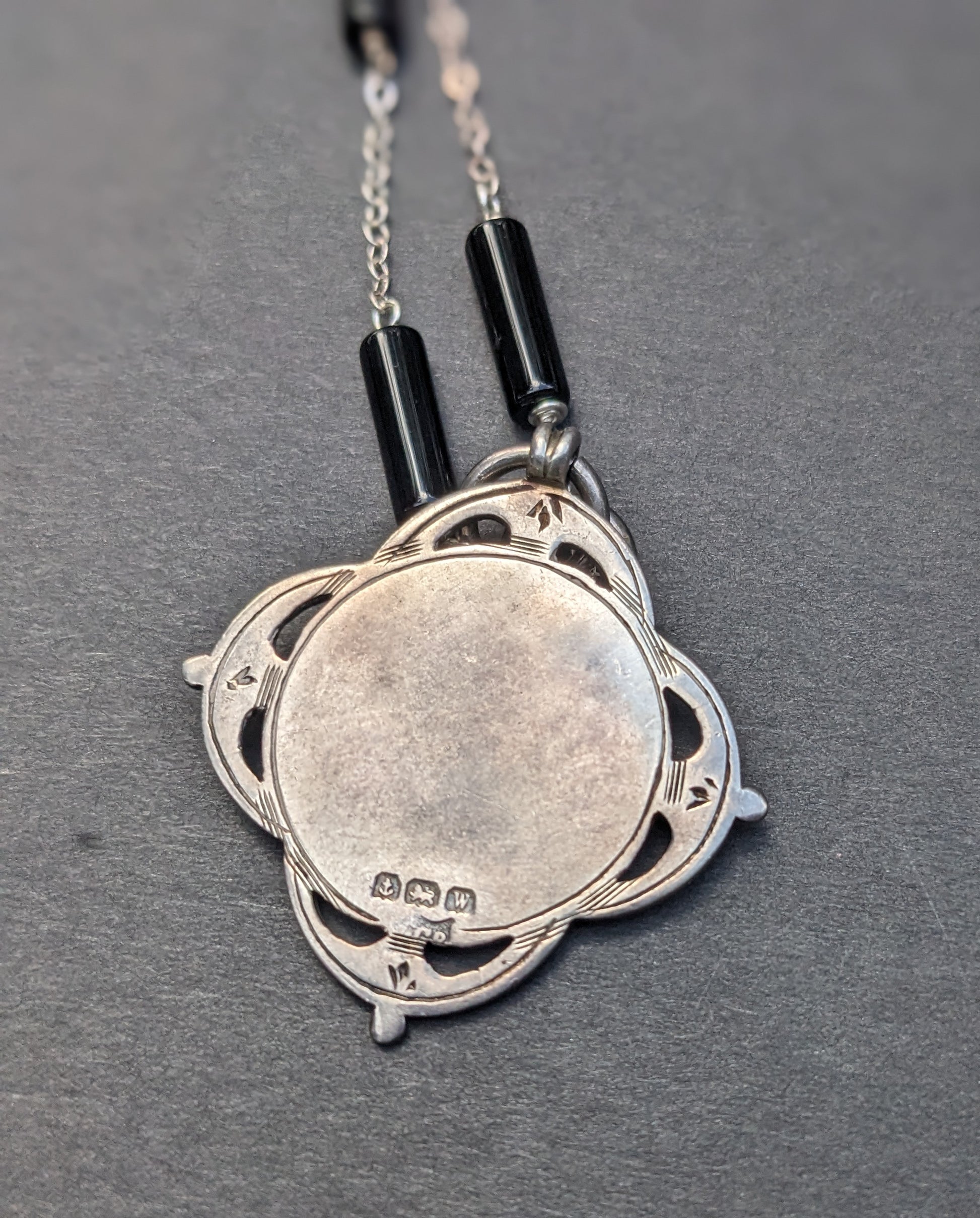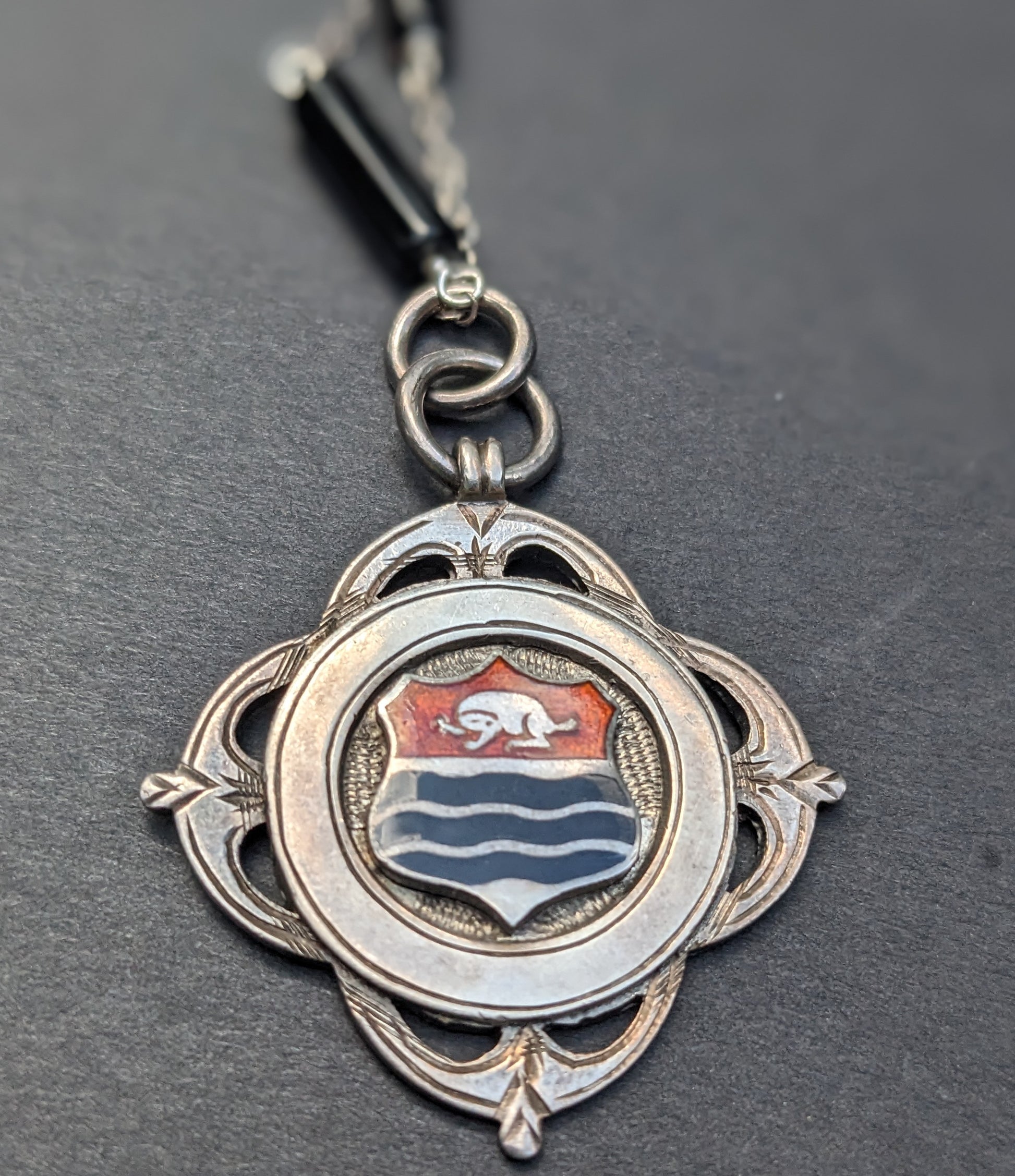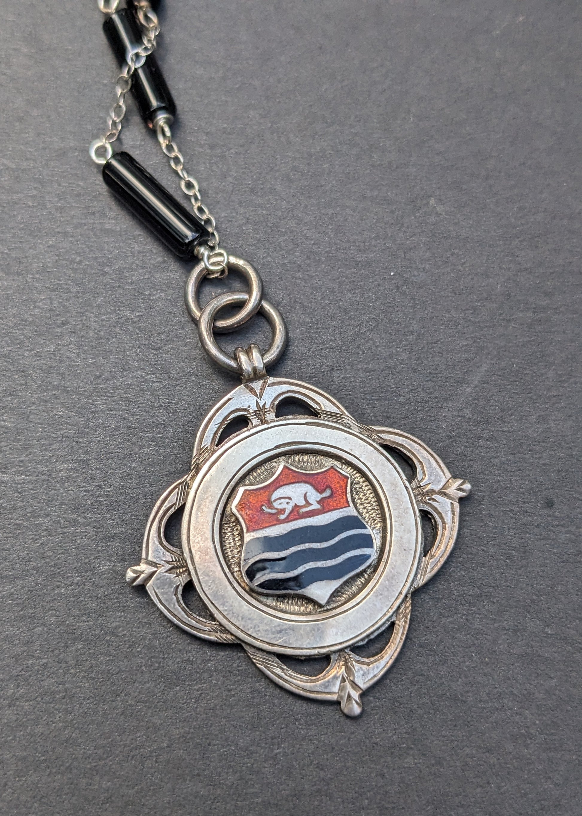 English Award Fob Enamel on Sterling and onyx chain