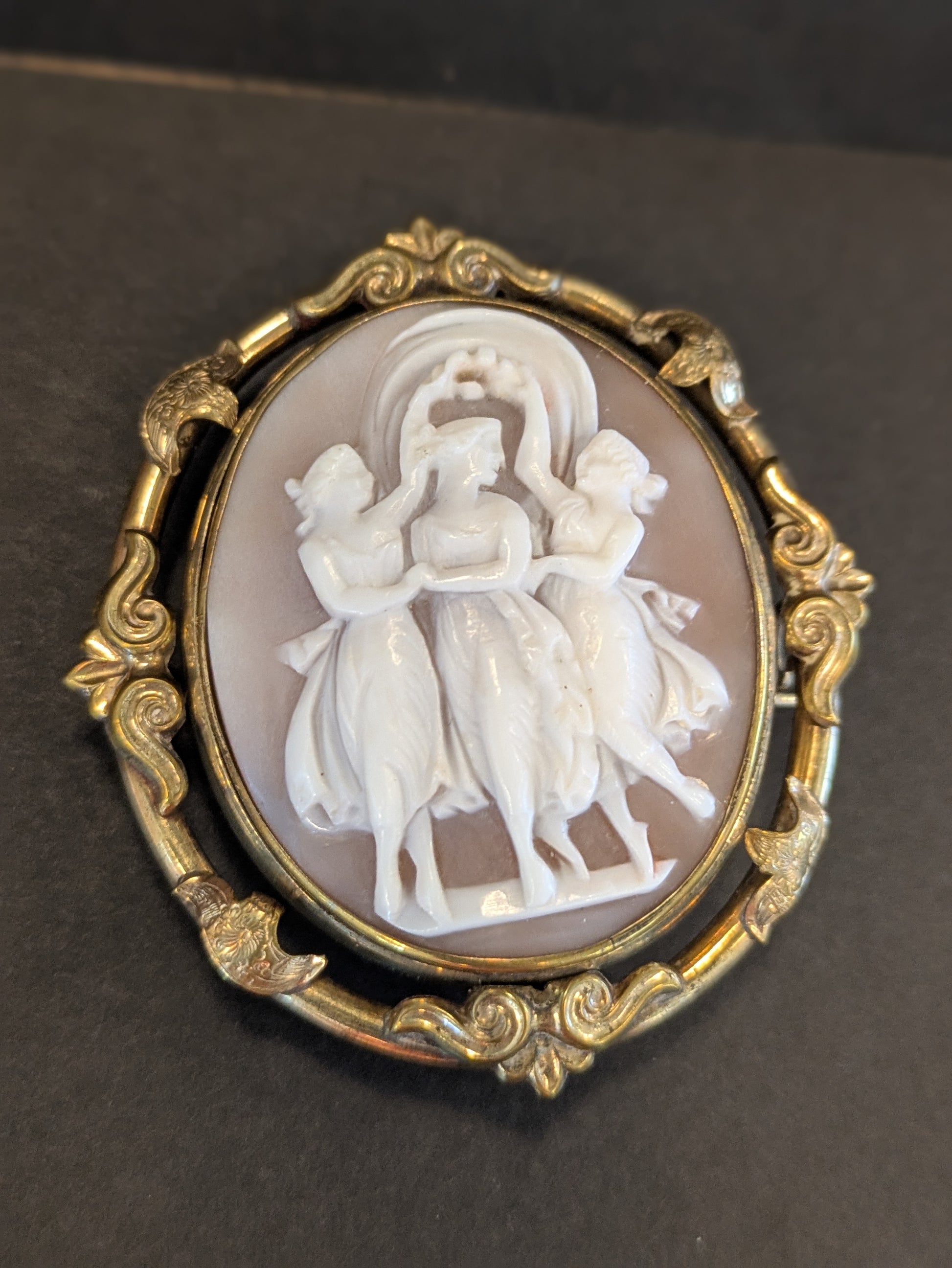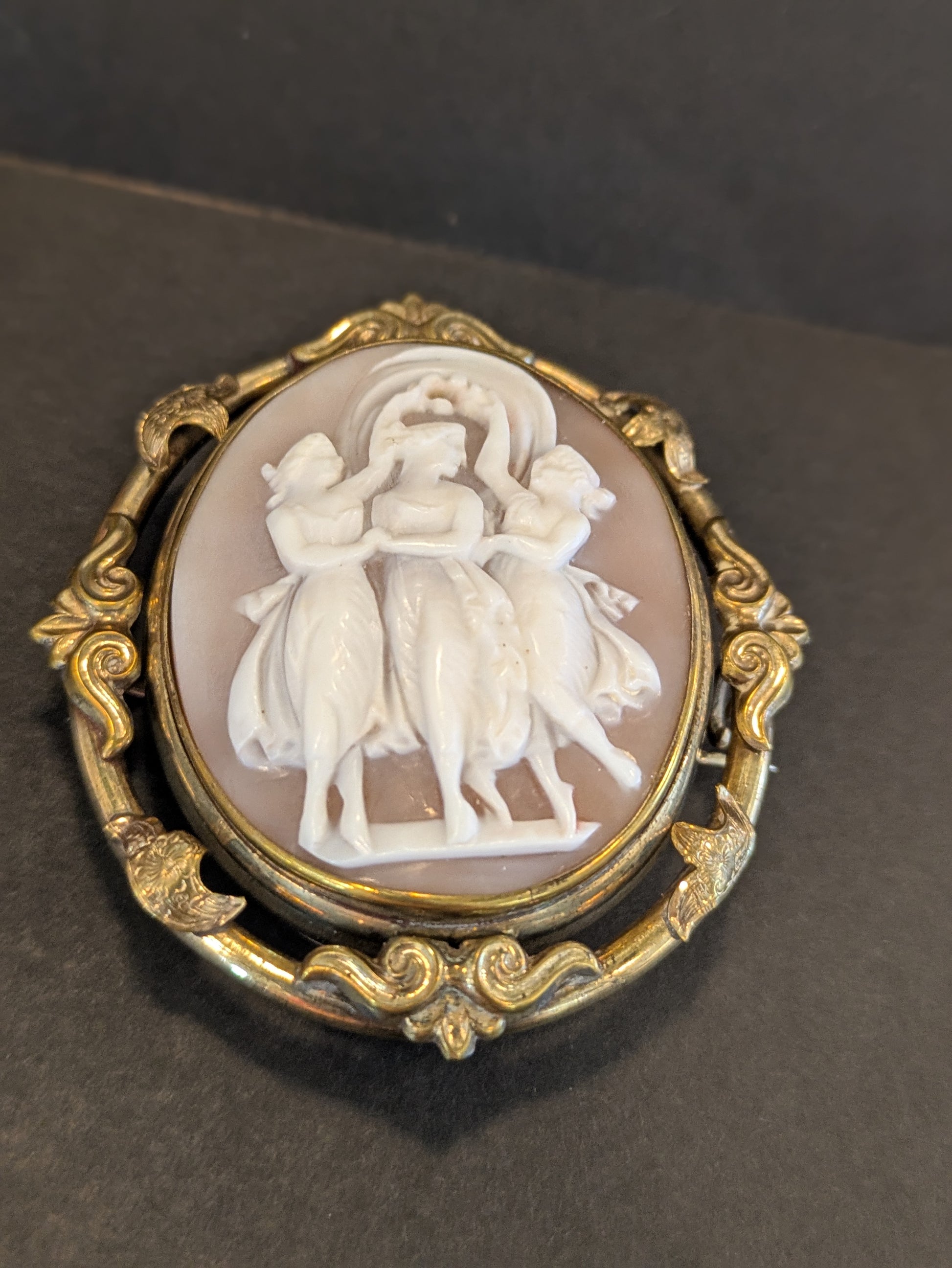 English Three Muses Shell Cameo Flipping Brooch/ Pendant